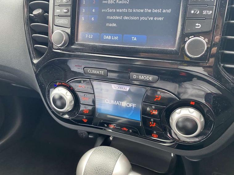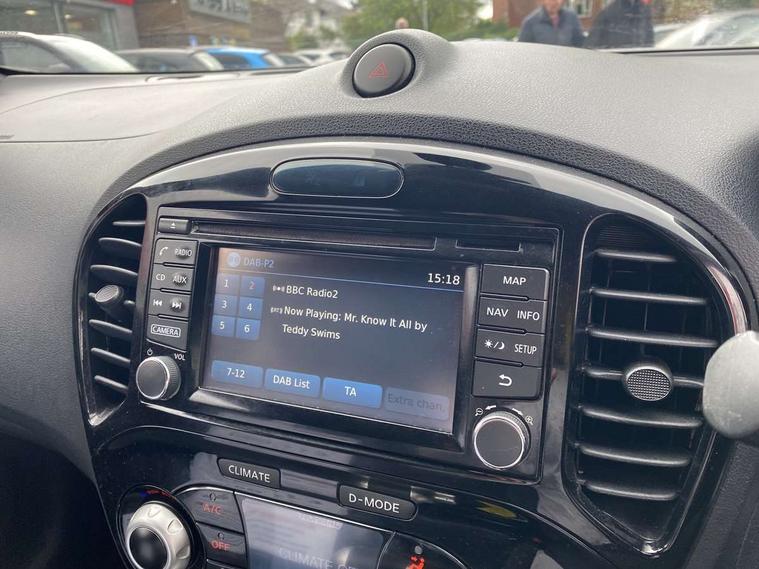 Around View Monitor, Blind spot monitoring, Bluetooth system, Colour rear view camera, Cruise control + speed limiter, Door/boot open warning light, Dusk sensor, Electric speed sensitive power steering, Exterior temperature gauge, Lane departure warning system, Low fuel level warning light, Moving object detection, Nissan connect sat nav system, Push button starter, Service interval indicator, Trip computer, 6 speakers, Aux input, Bose personal sound system, DAB Digital radio, Steering wheel mounted audio controls, Stereo radio/CD player and MP3 facility, USB port, Automatic headlights, Body colour bumpers, Body colour door handles, Body colour door mirrors, Dark chrome grille, Electric door mirrors, Electric folding door mirrors, Electric front/rear windows, Heated door mirrors, Heated rear windscreen, LED daytime running lights, LED front fog lights, LED indicators in door mirrors, Privacy glass, Rain sensor windscreen wipers, Rear wiper, 12V socket, 3 height adjustable rear headrests, 60/40 split folding rear seat, Climate control, Driver/passenger reading lights, Driver/passenger sunvisors and vanity mirrors, Front armrest, Front cupholders x 2, Front door pockets with bottle holders, Front head restraints, Front seat belt pre-tensioners with load limiters, Gear shift indicator, Glovebox, Heated front seats, Height adjustable driver's seat, Interior courtesy lights, Internal chrome door handles, Isofix child seat preparation, Leather steering wheel and gear knob, Leather upholstery, Luggage area under floor storage box, Map reading lamp, Passenger seat back pocket, Pollen filter, Rear tonneau cover integrated into tailgate, Sports seats, Steering wheel rake adjustment, ABS + EBD + EBA, Child locks on rear doors, Driver and passenger airbags, Driver and passenger side airbags, ESP + traction control, Front and rear curtain airbags, Height adjustable front seatbelts, Passenger airbag deactivate switch, Three 3 point rear seatbelts, Tyre pressure monitoring system, VDC Dynamic Vehicle Control, Warning triangle and first aid kit, Alarm, Immobiliser, Intelligent Key, Remote central locking, 17" Urban alloy wheels, Tyre repair kit,