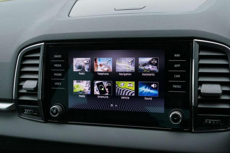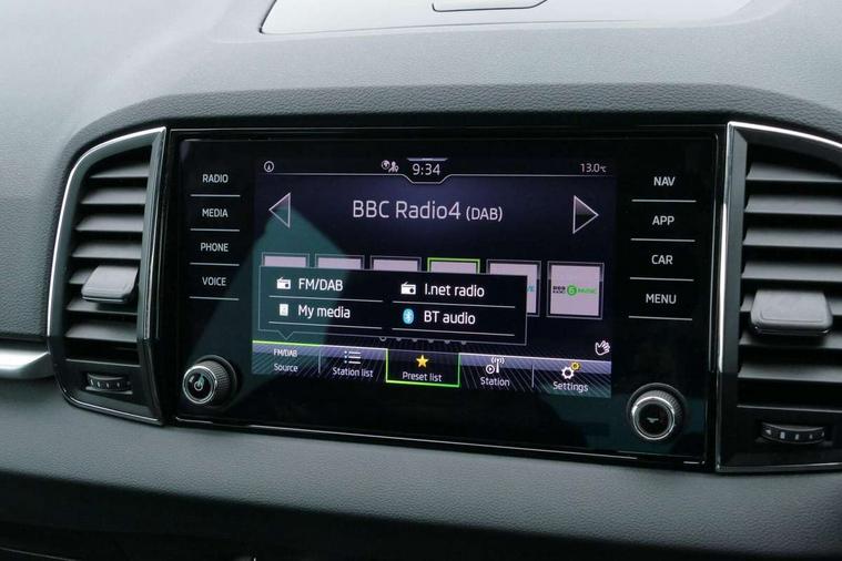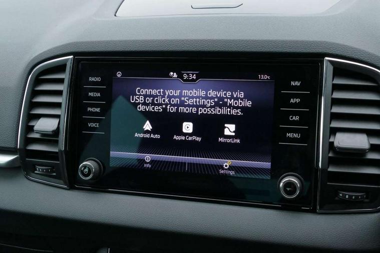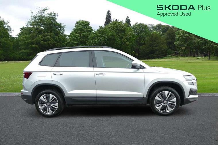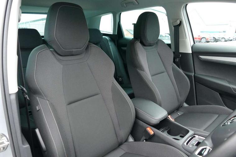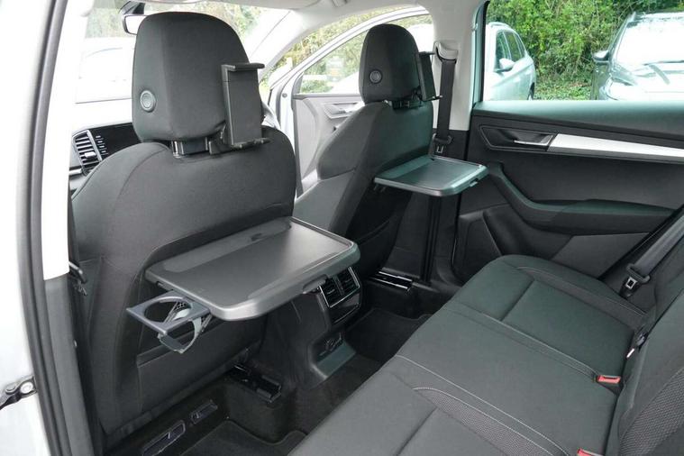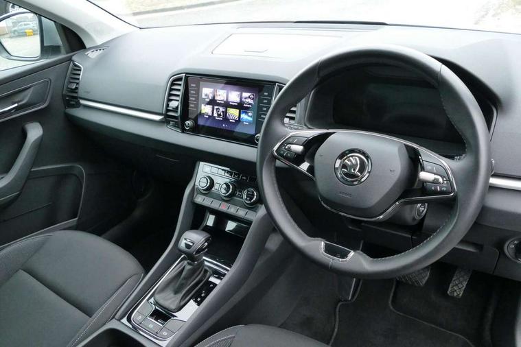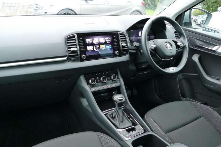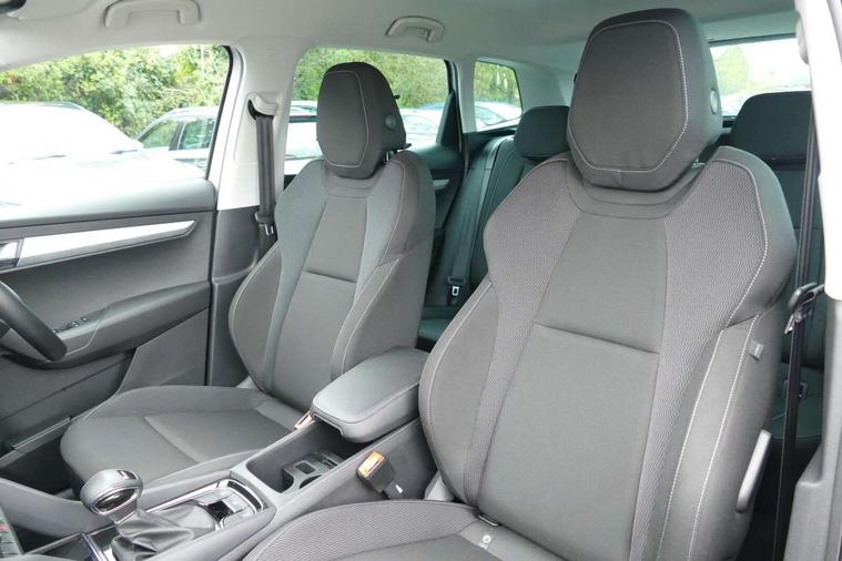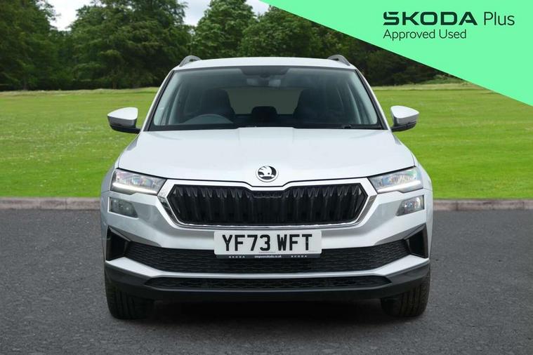 8" Digital display, Amundsen satellite navigation with 8" touchscreen display with maps Europe, WLAN and web radio, Care connect, Driver fatigue sensor, Electro-mechanical PAS, Emergency services call system, Outside temperature gauge, Service interval indicator, SmartLink wireless for Apple and wired for Android, Start/stop system with regenerative braking, USB C Port x 2 in front centre console, Diesel particulate filter, 8 speakers, DAB radio with Bluetooth, USB connection, Acoustic glass, Aero front windscreen wipers with intermittent function, Auto dimming rear view mirror with light and rain sensors, Black electric window control buttons, Body colour door mirrors and handles, Dynamic headlight range control with cornering light function, Electric front and rear windows with child proof lock, Electrically adjustable heated folding and auto dimming door mirrors, Front fog lights, Heated rear windscreen, LED daytime running lights, LED Headlights, LED rear lights with high functionality welcome effect and dynamic indicators, Light assistant (coming/leaving home/tunnel light), Plastic scuff plates, Privacy glass, Rear side wing doors, Rear window wiper with washer system and intermittent control, Safety reflectors on front doors, Third brake light, 1.5 litre bottle holders in driver and front passenger door panels, 12V socket in boot, 12v socket in front centre armrest with storage compartment and rear air vents, 2 x Tablet holder, 3 rear height adjustable headrests, 3 seat bench in 2nd row, 4 foldable roof handles with rear coat hooks, Black floor carpet, Chrome inner door handles, Double sided boot floor, Driver/front passenger reading lights, Foldable hooks in the boot, Folding tables on the front seat backrests, Front head restraints, Height adjustable driver and passenger seat, Height adjustable front three point seats belts with tensioners, Height/reach adjust steering wheel, Ice scraper, Illuminated glovebox, Illuminated luggage compartment, Interior noise suppression, Isofix child seat preparation for front passenger seat, Isofix child seat preparation outer rear, Manual lumbar support for front seats, Pearl grey interior ceiling, Pen holder, Pollen filter, Rear boot cover, Rear reading lights, Rubbish bin door, Safety vest holder, Single front passenger seat, Storage box in upper central dashboard closed, Sunvisors with illuminated vanity mirrors, Textile floor mats, Ticket holder, Tool kit, Umbrella under passenger seat, Boot pack - Karoq, Automatic door unlocking in case of crash, Automatic fuel cut off in case of crash, Child locks on rear doors, Driver airbag, Electronic parking brake with auto hold function, Emergency rear braking signal, ESC including ABS, MSR, ASR, EDS, HBA, DSR, RBS, MKB and traction control, Front side airbags, Hill hold control, Knee airbags, Passenger airbag with switch-off function, Pedestrian monitor, Seatbelt reminder signalisation and pretensioner for all seats, Three point seatbelts rear, Two tone horn, Tyre pressure display, Tyre pressure monitor, Alarm with interior monitoring, back up horn and tilt sensor with safe function, Electronic engine immobiliser, Remote central locking with 2 remote folding keys, Black centre console, Chrome framed air vents, Satin black dashboard, Satin black door trim, Anti-theft wheel bolts protection, Storage on wheel cover,