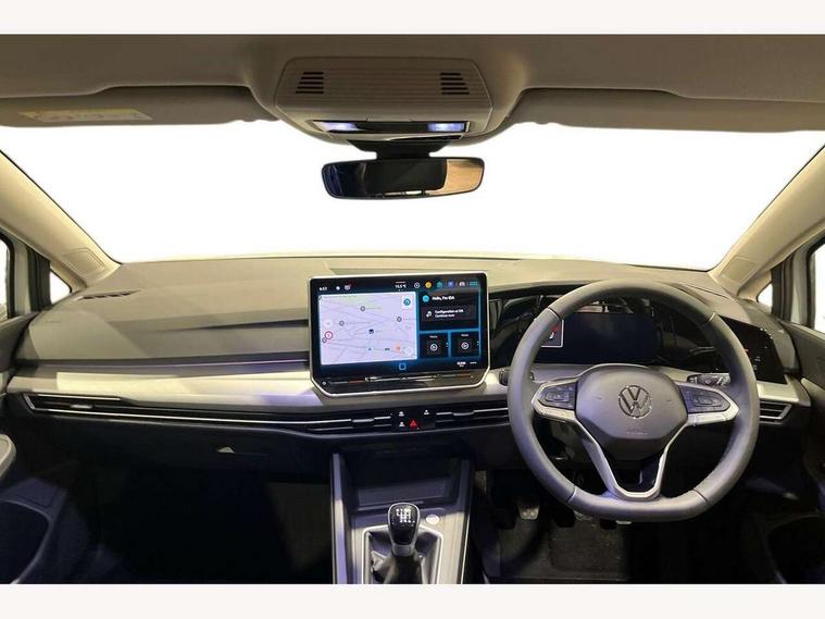 Activated carbon canister, Adaptive cruise control (ACC), Advanced driver attention and drowsiness monitor, Dynamic road sign display, E-Sim card for online connectivity, eCall emergency call system, Multi-color Digital cockpit pro, selection of different info profile possible, Multifunction front facing camera for distance control, Navigation system, Oncoming vehicle braking when turning including swerve support, Speed limiter, Speedo, rev counter, electronic odometer, trip, service interval display, exterior temperature and fuel gauge, Voice enhancer and voice control, Warning signal and warning light for front and rear seatbelts not fastened, We connect plus preparation, We connect preparation, Wireless app connect, Petrol Particulate Filter, Start-stop system with battery regeneration (recuperation - energy recovery during braking), XDS electronic differential lock for improved traction and handling, 2 USB C ports in front, 2 USB charging sockets on the centre console in the rear charging capacity upto 45W, Digital radio reception (DAB), Diversity antenna for FM reception, Gaming platform via car app, Infotainment system with 12.9" display, Mobile phone interface with inductive charging feature, 3rd brake light, Automatic headlamp activation with Coming home and Leaving home feature, Body colour door handles, Body colour door mirrors, Exterior mirrors convex on the left and aspherical on the right, Front and rear electric windows, Heat insulating windshield made of laminated glass, LED separate daytime running light, Rear exhaust tailpipe, Rear fog light on one side and reversing lights on both sides, Rear side wing doors, Rear tinted glass 65% light absorbing from B pillar backwards, Rear windscreen washer and wiper with interval delay, Remote electrically foldable door mirrors, puddle lights and reverse activated passenger's door mirror, Standard bumpers, Welcome light with surround lighting, 12V socket in front centre console, 12V socket in luggage compartment, 3 rear head restraints, 3 seat bench in 2nd row, Chrome plated radiator grille inserts, air vent surrounds and light switch surrounds, Front centre armrest, Front head restraints, ISOFIX anchors for child seats on outer rear bench seats and on front passanger seat compatible for i-Size, Leather gearshift handle, Luggage compartment lighting, Manual height adjustable front passenger seat, Rear cupholder and loadthough, Single front passenger seat, Soul black instrument panel, Split folding backrest with centre armrest and unsplit rear seat bench, Standard pedal cluster, Storm grey roof lining, Sun visors with illuminated vanity mirrors, Parking and comfort pack - Golf Estate/Hatchback, 3 point height adj front seatbelts + pretensioners, 3 rear three point seatbelts, ABS, Autonomous emergency braking front assist with pedestrian and cyclist monitoring, Child locks on rear doors, Driver and front passenger airbag with front passenger airbag deactivation, Electronic parking brake with auto hold, ESC (Electronic Stability Control), Extended pedestrian protection measures, Rear disc brakes, Two tone horn, Tyre pressure loss indicator, Volkswagen roadside assistance, Anti theft wheel bolts, Preparation for alcohol interlock, Nature cross brushed decorative inserts for dashboard and front door panels,