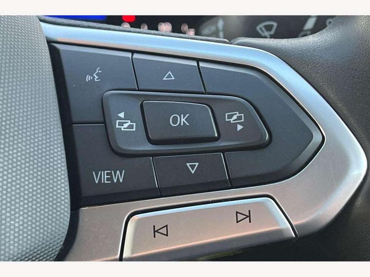 'Lights On' Reminder warning buzzer, Adaptive cruise control including front assist, forward collision warning, autonomous emergency braking, speed limiter, Blind spot monitoring, Bluetooth telephone and audio connection for compatible devices, Car information display, Digital cockpit, Driver alert system, eCall emergency call system, Lane assist, Low washer fluid warning light, Multifunction computer with visual gear change recommendation for fuel consumption, Operating permit alteration, Power assisted speed sensitive steering, Speedo, rev counter, electronic odometer, trip, service interval display, exterior temperature and fuel gauge, Stop/start system, Warning sound and light for doors and tailgate open, Warning sound and light for front seatbelts unfastened, We Connect Go Dongle, Wireless Car net app connect with Apple CarPlay, combined functionality of Apple CarPlay/Android Auto and MirrorLink, Battery regeneration during braking, Misfuel prevention device, 2x USB connection with USB charging sockets and in rear centre console, DAB Digital radio receiver, Diversity antenna for FM reception, Multi device interface (MDI) with USB connection, Music playback - MP3, WMA and AAC files, Premium USB cable for Apple or Android smartphone compatibility, Simultaneous pairing of 2 compatible mobile devices, Title and cover art display, Automatic hazard lights activation under emergency braking, Black roof rails, Body colour door handles, Body colour door mirrors with integrated indicators, Body coloured bumpers, Dusk sensor + automatic driving lights, Electrically foldable, adjustable and heated door mirrors with reverse activated kerb view adjustment on passenger's side, Front and rear electric windows, Front fog lights with static cornering function, Galvanised body, Heated rear window, LED third brake light, Lower door sills and door pillars in black, Radiator grille with high gloss surface and chrome strip, Rear fog light on one side, reversing light on both sides, Rear lights incorporating LED technology, Rear side wing doors, Rear window aerial, Rear windscreen washer and wiper with interval delay, Reflectors in all doors, Tailgate with integrated roof spoiler, Windscreen wipers/ intermittent wipe + 4 position delay, 12V Accessory socket in centre console, 3 rear head restraints and 3 rear three point seat belts with ECE label, 3 seat bench in 2nd row, 60/40 split folding rear seat backrest, Drawer under drivers seat, Driver and front passenger sunvisor with vanity mirror, Driver's sunvisor with ticket holder, Dust and pollen filter, Front and rear reading lights X 2, Front centre armrest with storage compartment, Front seat back storage pockets, Front seats with adjustable lumbar support, Glovebox, Heating and fresh air system with 4 stage blower, Height/reach adjust steering wheel, Instrument lighting white adjustable panel illumination, Interior light with delay, Isofix child seat preparation for 2 rear child seats, Luggage compartment cover, Luggage compartment lighting, Manual air conditioning, Manual front seats with height adjustment, Moveable and foldable Rear bench seat, Single front passenger seat, Storage compartment in drivers and front passengers door, Three spoke multi-function leather trimmed steering wheel and gearknob, Triangle ties/pearl cloth upholstery, Variable boot floor, Anti-lock Braking System (ABS) with Hydraulic Brake Assist (HBA), Automatic post collision braking system, Driver and front passenger safety-optimised head restraints, Drivers and Front Passengers airbags with front passengers airbag deactivation switch, ESC with EDL, ASR, EDTC and trailer stabilisation function, Front and rear curtain airbags, Front seat side impact airbags, Height-adjustable front three-point seat belts with tensioners, Hill start assist, Pre crash preventive occupant protection, Rear door child safety locks, Rigid safety cell with front and rear crumple zones, Single torn horn, Tyre pressure loss indicator, Volkswagen roadside assistance, Alarm with interior protection and deactivation via infotainment system, Child security locks in rear doors, Electronic engine immobiliser, Remote tailgate unlocking using key fob, Pineapple decorative inserts in dash and doors, 17" Clayton alloy wheels + anti theft wheel bolts, Breakdown kit,
