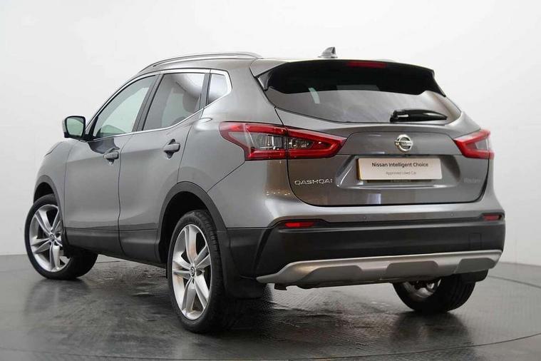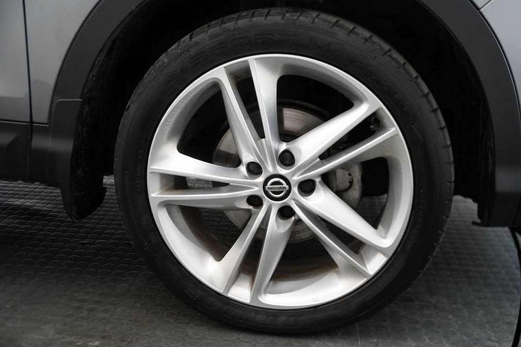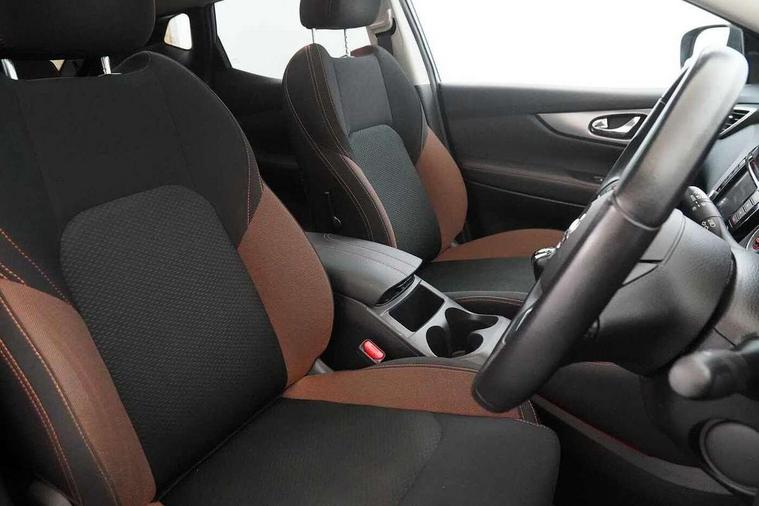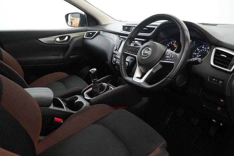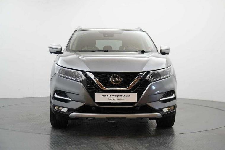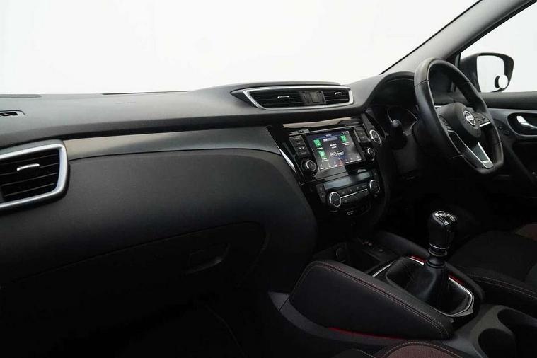 Advanced drive assist display 5'' TFT coloured screen, Android Auto, Apple CarPlay preparation, Bluetooth connectivity, Electric speed sensitive power steering, Front parking sensors, Intelligent around view monitor, Intelligent parking assist, Lane departure warning system, Nissan connect evo 7" touchscreen navigation and entertainment system, Normal or sport selectable steering, Outside temperature sensor, Push button starter, Rear parking sensors, Rear view camera, Service interval indicator, Smartphone integration, Stop/start system, Tomtom connected services, Traffic sign recognition, Trip computer, Voice control system, Nissan chassis control (intelligent ride control, intelligent trace control, intelligent engine brake), 6 speakers, AM/FM radio, CD audio system, Aux-in socket, DAB Digital radio, Steering wheel mounted audio controls, USB port, Anti dazzle rear view mirror, Auto wipers, Body colour bumpers, Body coloured door handles, Chrome window surround, Daytime running lights dip function when turn signal applied, Electric folding door mirrors, Electric front and rear windows with one touch illuminated window controls, Electric front/rear windows, Electrically adjustable door mirrors, Front fog lights, Heated door mirrors, High beam assist, Intelligent auto headlights, LED indicators in door mirrors, Matt silver roof rails, Panoramic opening glass sunroof, Privacy glass, Rear roof spoiler, Rear wiper with reverse link, Shark fin antenna, Underbody vortex generators, 2 X front 12v power sockets, 3 height adjustable rear headrests, 60/40 split folding rear seat, Ambient lighting in centre console, Boot lighting, Centre console storage box/armrest, Chrome interior door handles, Cloth upholstery, Configurable luggage board system, Dual zone climate control, Front and rear door pockets with bottle holders, Front and rear seat belt pre-tensioners with load limiters, Height adjustable front headrests, Individual rear seat reading lights, ISOFIX on outer rear seats, Leather D shaped steering wheel, Leather gear lever, Leather knee pad, Manual height adjustable front passenger seat, Manual lumbar support on passenger seat, Monoform front seats with plastic backboard, One touch electric shade, Parcel shelf stow function under luggage board, Pollen filter, Rear armrest with 2 cupholders, Synthetic leather wrapped door handle with contrasting stitching, Tilt/telescopic adjustable steering wheel, LED pack - Qashqai, Safety shield plus pack - Qashqai, 6 airbags - Driver, front passenger, curtain and side airbags, ABS, ESP, EBD and brake assist, Auto hold function, Child locks on rear doors, Electronic parking brake, Front and rear seat belt warning, Front passenger airbag deactivation, Height adjustable front seatbelts, Hill start assist, Intelligent emergency braking with pedestrian recognition, Three 3 point rear seatbelts, Tyre pressure monitoring system, Anti-theft immobiliser, Intelligent Key, Remote central locking, Thatcham Cat.1 alarm, Carbon graphite dash trim, 19" Ibiscus alloy wheels, Tyre puncture repair kit,