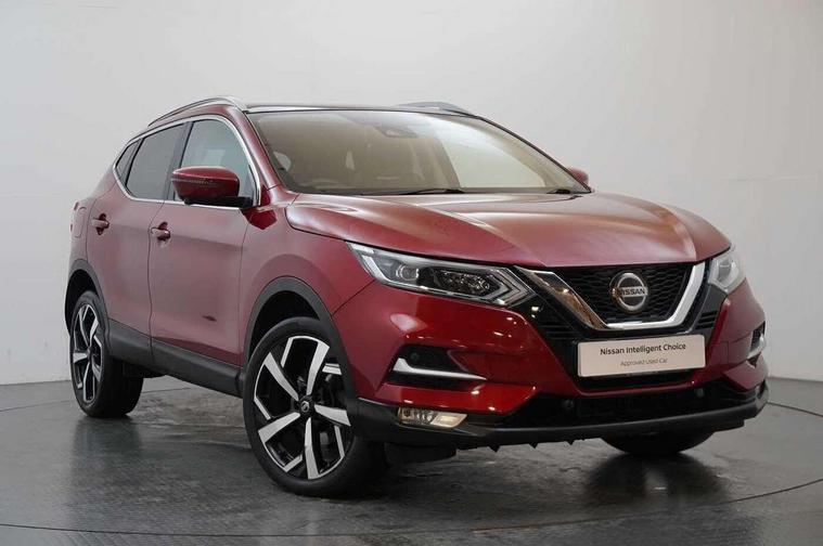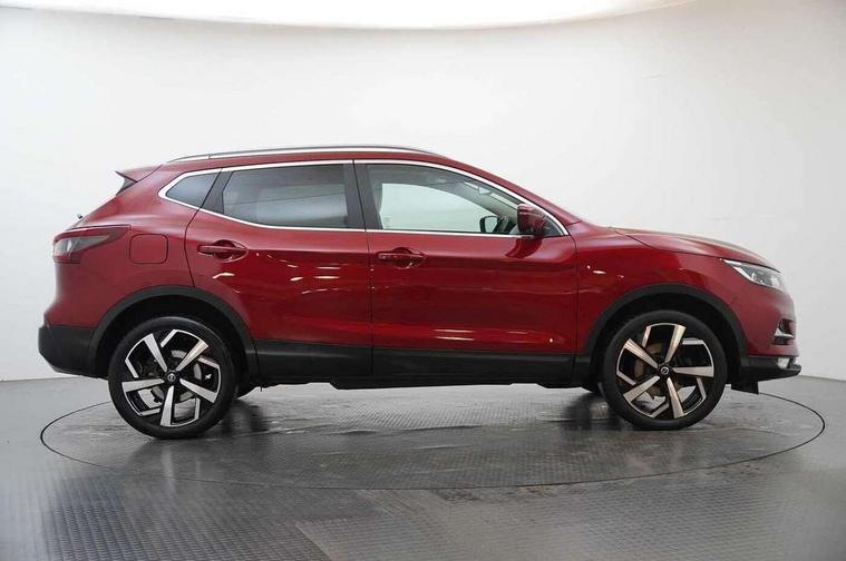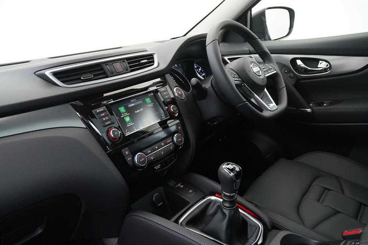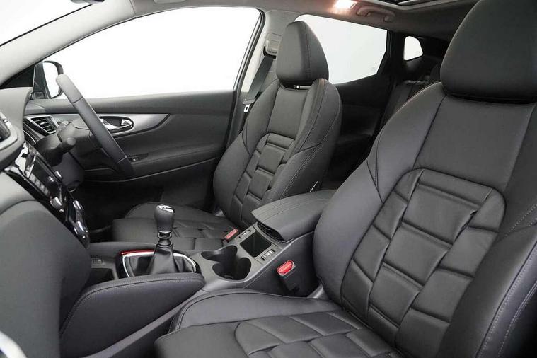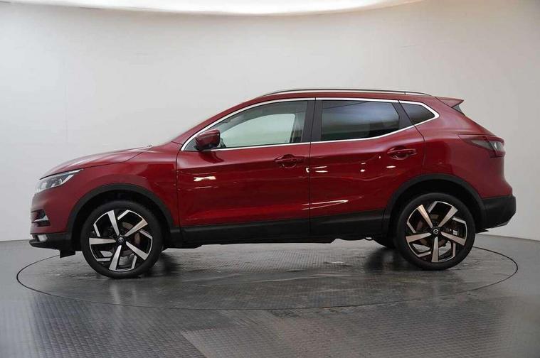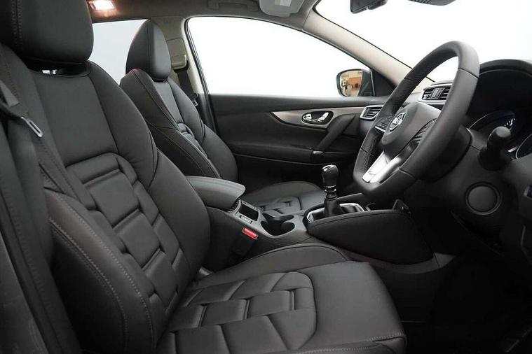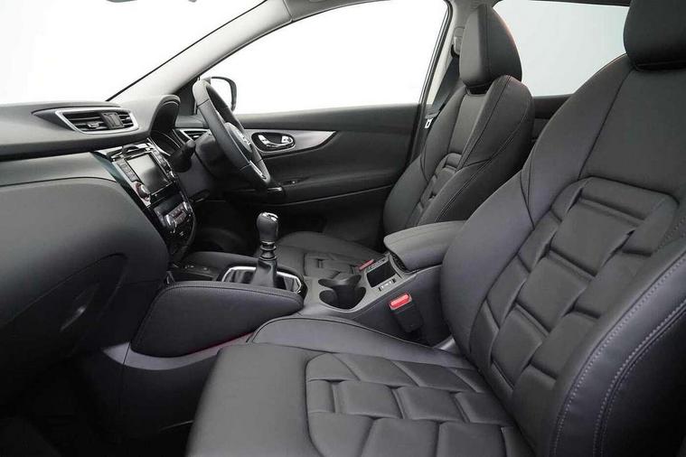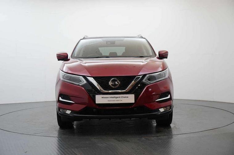 360 degree Intelligent around view monitor, Advanced drive assist display 5'' TFT coloured screen, Apple car play/Android Auto, Bluetooth connectivity, Cruise control + speed limiter, Electric speed sensitive power steering, Front parking sensors, Idle stop/start system, Intelligent park assist, Lane departure warning system, Nissan connect evo 7" touchscreen navigation and entertainment system, Normal or sport selectable steering, Outside temperature sensor, Premium Tomtom connected services, Push button starter, Rear parking sensors, Service interval indicator, Smartphone integration, Traffic sign recognition, Trip computer, Voice control system, Nissan chassis control (intelligent ride control, intelligent trace control), 6 speakers, AM/FM radio, CD audio system, Aux-in socket, DAB Digital radio, Steering wheel mounted audio controls, USB port, Anti dazzle rear view mirror, Auto wipers, Body colour bumpers, Body coloured door handles, Body coloured door mirrors, Chrome window surround, Daytime running lights dip function when turn signal applied, Electric adjustable heated door mirrors with memory, Electric folding door mirrors, Electric front and rear windows with one touch illuminated window controls, Front fog lights, High beam assist, Intelligent auto headlights, LED indicators in door mirrors, Matt silver roof rails, Privacy glass, Rear roof spoiler, Rear wiper with reverse link, Shark fin antenna, Silver rear styling plate, Underbody vortex generators, 2 X front 12v power sockets, 3 height adjustable rear headrests, 60/40 split folding rear seat, Ambient interior lighting, Ambient lighting around centre console, Boot lighting, Centre console storage box/armrest, Chrome interior door handles, Dual zone climate control, Electric 4-way lumbar support for drivers seat, Electrically adjustable driver seat with memory, Electrically adjustable passenger seat, Front and rear door pockets with bottle holders, Front and rear seat belt pre-tensioners with load limiters, Height adjustable front headrests, Individual rear seat reading lights, ISOFIX restraints on outer rear seats x2, Leather D shaped steering wheel, Leather gear lever, Leather knee pad, Luggage board system, Luxury floor mats, Manual height adjustable passenger seat, Manual lumbar support on passenger seat, Monoform front sport seats with plastic backboard, Nappa leather upholstery with 3D quilted, Parcel shelf stow function under luggage board, Pollen filter, Rear armrest with 2 cupholders, Synthetic leather wrapped door handle with contrasting stitching, Tilt/telescopic adjustable steering wheel, Glass roof pack - Qashqai, Heat package - Qashqai, LED pack - Qashqai, 6 airbags - Driver, front passenger, curtain and side airbags, ABS, ESP, EBD and brake assist, Auto hold function, Child locks on rear doors, Electronic parking brake, Front and rear seat belt warning, Height adjustable front seatbelts, Hill start assist, Intelligent emergency braking with pedestrian recognition, Manual passenger airbag deactivation function, Three 3 point rear seatbelts, Tyre pressure monitoring system, Anti-theft immobiliser, Intelligent Key, Remote central locking, Thatcham Cat.1 alarm, Carbon graphite dash trim, 19" Alloy wheels,