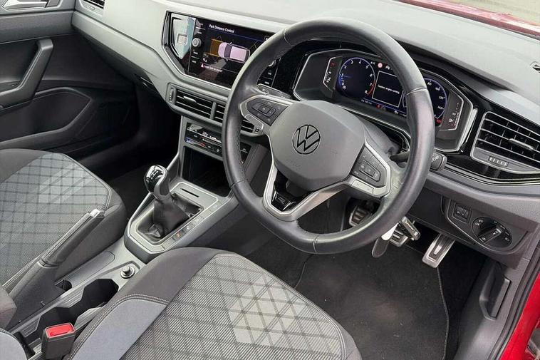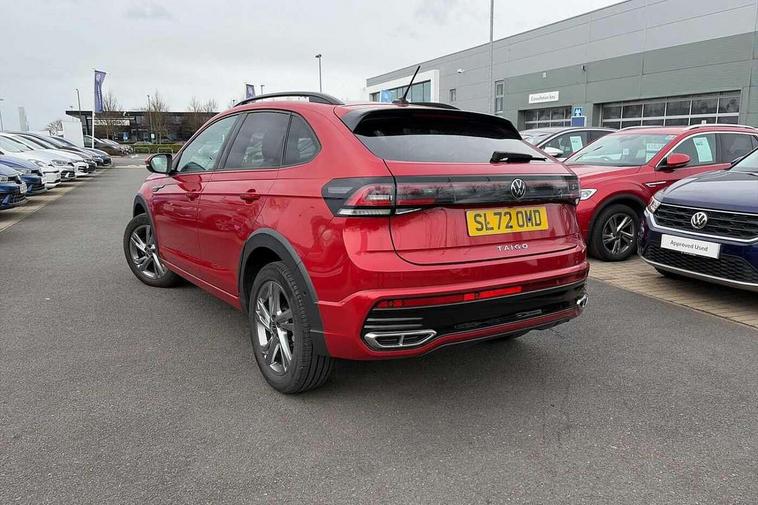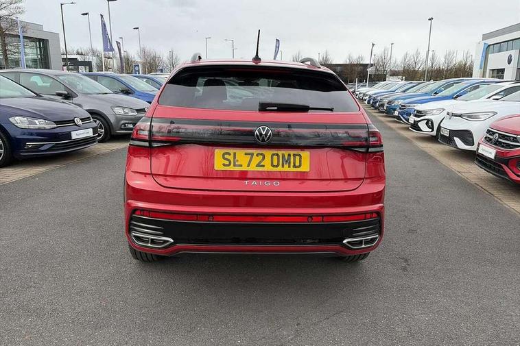 App-Connect including App-Connect Wireless, Digital cockpit pro - 10.25" high resolution TFT dash display screen with customizable menus and information, Driver alert system, Driving profile selection, e-Call (emergency call), Power Steering, Travel assist including emergency assist, Washer fluid level indicator, Wireless Charging including Bluetooth, Start-stop system with battery regeneration (recuperation - energy recovery during braking), XDS electronic differential lock for improved traction and handling, Digital radio reception (DAB+), Diversity antenna for FM reception, WeConnect plus, Ambient lighting with logo projection, Aspherical driver's exterior mirror, Auto headlights, Body coloured bumpers, Body coloured exterior mirror housings and door handles, Bumpers in R-Line style, Electric windows, External USB type C socket and charging sockets, Front fog lamps with cornering function, Front scuff plates with R-Line logo, Headlight range control, LED headlamps, LED rear combination lamp, LED third brake light, Left convex exterior mirror, Power folding adjustable/heated exterior mirrors and front passenger exterior mirror lowering function, Rear fog light on one side, reversing light on both sides, Rear side wing doors, Rear wash/wipe with intermittent wipe setting, 12V socket in centre console, 2 front reading lights, 3 rear head restraints, 3 seat bench in 2nd row, Air care climatronic air conditoning system with active combination filter and 2-zone temperature control, Black carpets, Black roof lining, Child seat anchor for child seat system i-Size, 2x top tether and child seat anchor in front on front passenger side, Chrome bezel for instrument cluster, vents, door handles + gear shift, Driver and front passenger seat height adjustment, Front + rear carpet mats, Front centre armrest, Front footwell illumination, Front sports comfort seats, Height and reach adjustable steering wheel, Interior ambient lighting and surround lighting, Karoso artvelours cloth upholstery, Leather trimmed gear knob, Leather wrapped multifunction steering wheel, Luggage compartment floor, Luggage compartment light, Lumbar support for driver's and front passengers seat, Seat covers in grey + titanium black, Single front passenger seat, Split folding backrest with centre armrest and unsplit rear seat bench, Stainless steel pedals, Storage compartment under front seats, Sun visors with illuminated vanity mirrors, Chrome Package - Taigo, Drivers assistance pack - Taigo, Light and Sight pack including High beam assist - Taigo, 2 x 3-point seatbelts/outer rear seats with ECE label, 3-point seat belts in front with pretensioner and height adjustment, 3-point seatbelt for centre rear seat, Driver and front passenger airbags with front passenger airbag de-activation, front side and curtain airbags, Driver and front passenger safety-optimised head restraints, Electronic stability control, Extended and predictive pedestrian/ cyclist protection, Front and rear disc brakes, Front curtain and side airbags with center airbag, Hill start assist, Manual rear child locks, Single tone horn, Tyre pressure loss indicator, Anti-theft alarm system with interior monitoring, backup horn, and towing protection, Anti-theft wheel bolts, Grey anodised matte decorative inserts in dash and front door panels, Low rolling resistance tyres,