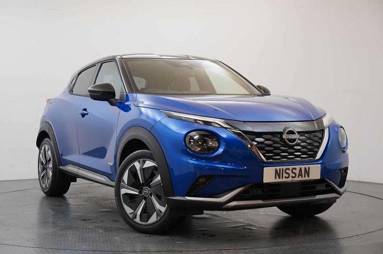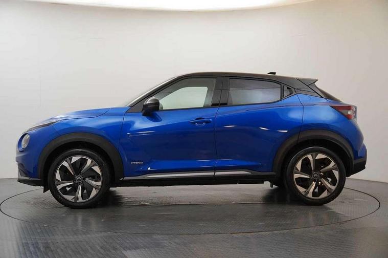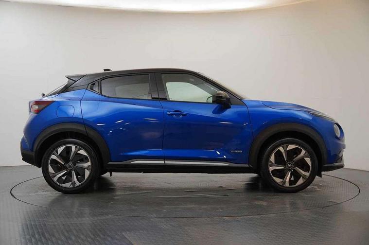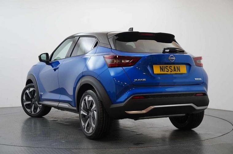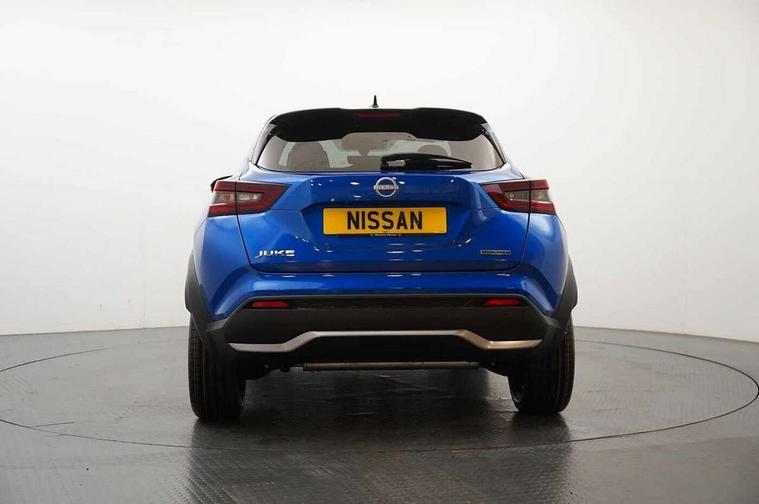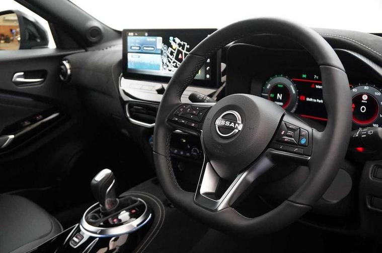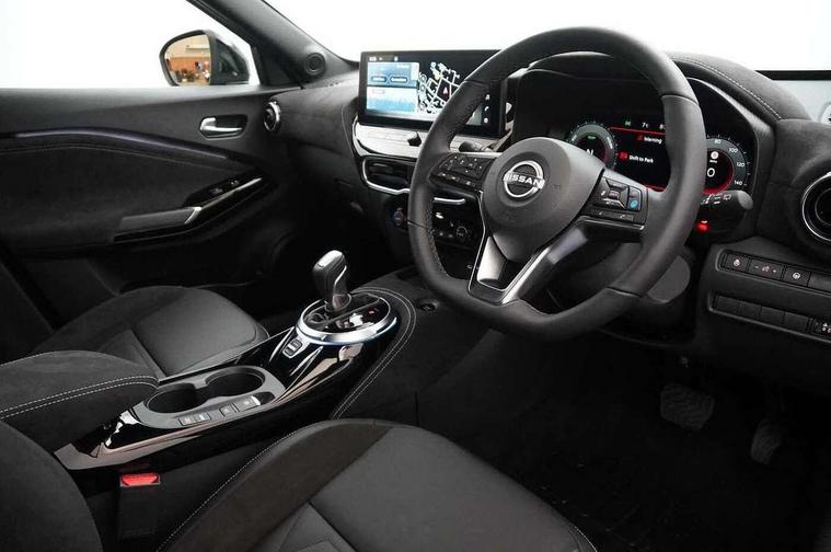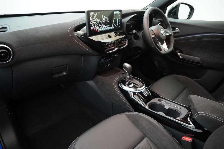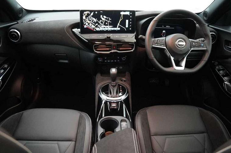 12.3" full colour TFT screen combimeter, Drive modes select (Eco, normal and sport), e-Pedal step, Emergency and breakdown call, EV mode switch, Front parking sensor, Intelligent driver alert system, Intelligent lane intervention, Lane departure warning system, Nissan connect 12.3" touch screen entertainment system, Nissan connect nav with TomTom traffic, Nissan connect services, Outside temperature sensor, Power Steering, Rear parking sensor, Stop/start button, Traffic sign recognition, Trip computer, Voice recognition, WiFi connectivity, Wireless Apple CarPlay and Google Android auto, Wireless Smartphone charger, 10 Bose speakers 6 speakers and 2 headrest speakers for driver/passenger seats, 2 X Rear console USB port, Bluetooth system, USB, Aux-in and 12V socket, Bose personal sound stage control, DAB Digital radio, Auto dimming frameless rear view mirror, Automatic hazard signal with emergency stop signal, Body colour door handles, Electrically adjustable door mirrors with integrated indicators, Follow me home headlights, Front and rear electric window with one touch driver window, Heated and auto folding door mirrors, High beam assist, LED 3rd brake light, LED daytime running lights, LED front fog lights, LED headlamps, LED rear fog lamp, LED rear lamps, One touch passenger window, Rain sensor windscreen wipers, Rear privacy glass, Rear side wing doors, Rear wiper, Roof spoiler, Shark fin roof antenna in solid Black, Three blink turn signal, 3 height adjustable rear headrests, 3 seat bench in 2nd row, 60/40 split folding rear seat, Automatic climate control, Card holder on driver sunvisor, Door ambient lighting, Driver seat back pocket, Driver side rear coat hanger, Driver/passenger sunvisors and vanity mirrors, Front and rear cabin lights, Front armrest, Front door pockets with bottle holders, Front head restraints, Front/rear passenger grab handles, Gear console ambient circle lighting, Height adjustable driver's seat, Internal chrome door handles, Leather gearshift knob, Luggage board, Luggage space lighting, Monoform sporty seats, Multifunction steering wheel, Passenger seat back pocket, Rear door bottle holders, Single front passenger seat, Smooth synthetic leather steering wheel, Synthetic leather kneepad, Telescopic steering wheel adjustment, Two cupholders in front centre console, Two rear isofix child seat anchorage points with top tether, Welcome light and console tray ambient lighting, Heat pack with height adjustable passenger seats - Juke, Interior personalisation pack - Juke, ProPilot pack - Juke Auto, Satin grey exterior personalisation pack - Juke, ABS with EBD and brake assist, Active ride control, Active Trace Control, Driver and passenger airbags, Driver and passenger side airbags, Electric handbrake with auto hold function, Electronic Stability Programme (ESP), Front and rear curtain airbags, Height adjustable seatbelts, Hill start assist, Intelligent emergency braking with pedestrian and cyclist recognition, Rear door child safety locks, Seatbelt reminder for driver/front passenger and rear seats, Three 3 point rear seatbelts, Traction control, Tyre pressure monitoring system, VDC Dynamic Vehicle Control, Alarm, Immobiliser, Intelligent key and start push button with walk away lock and approach unlock functions, Remote central locking, 19" Aero alloy wheels, Tyre puncture repair kit,