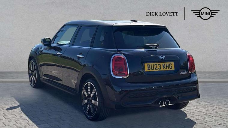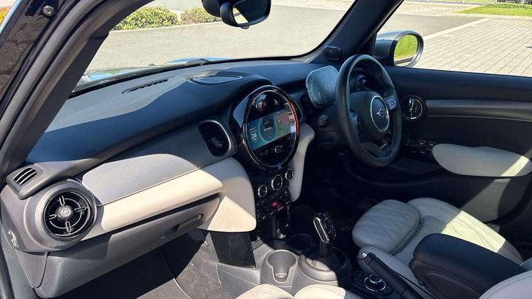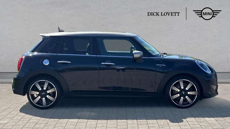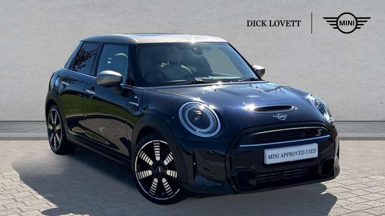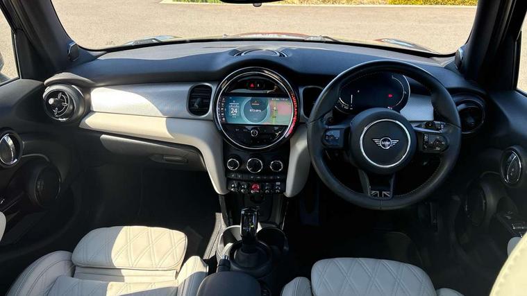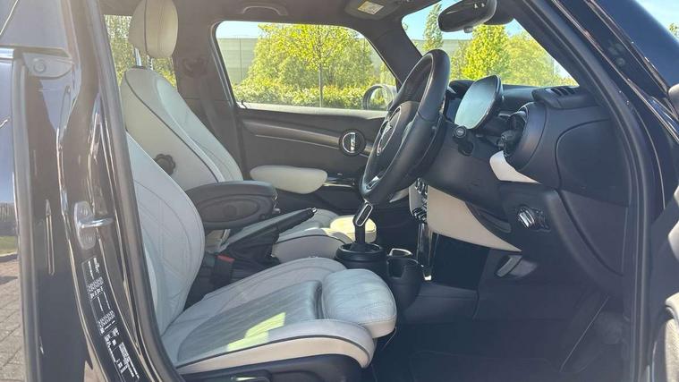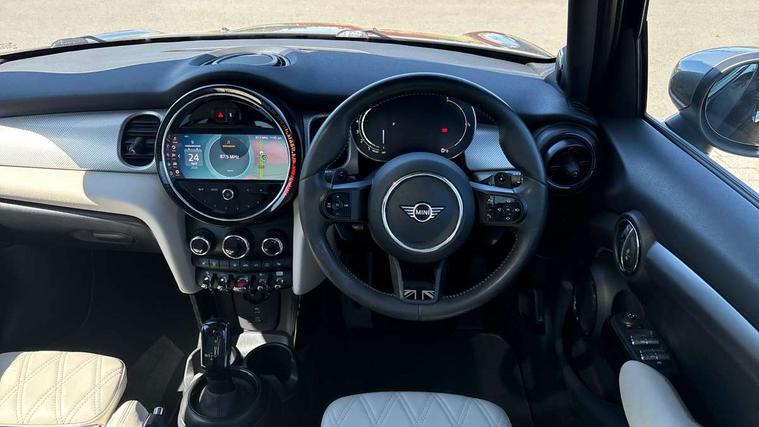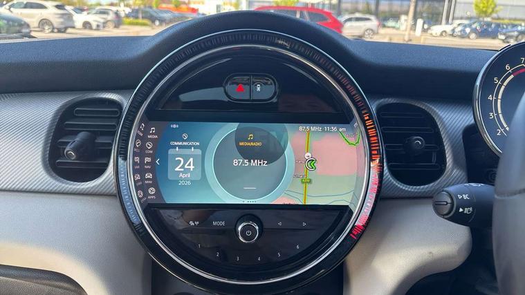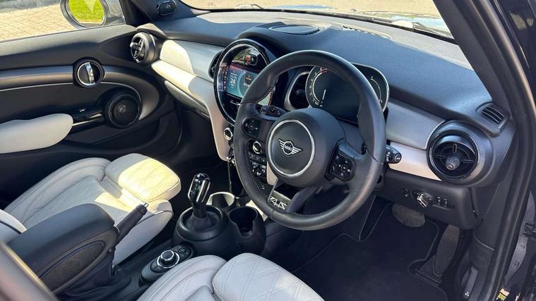 Apple CarPlay, Automatic start/stop function with brake energy recuperation, Compatible mobile phone bluetooth with audio streaming, Cruise control with brake assist, Electro-mechanical speed dependant steering assistance, Flexible car sharing preparation, Instrument cluster, MINI Driving Modes - centre toggle switch to control driving setting (sport, mid and green), Mini E-call, MINI TeleServices, On board computer, Rear park distance control, Service interval indicator, Double Vanos system, Fully variable valve control, Gear change indicator display, High precision injection, Performance Control, Steptronic sport transmission with double clutch and steering wheel paddles, 8.8" touchscreen with LED ring, FM tuner and DAB digital radio, 3rd brake light, Automatic headlight activation switch, Bonnet scoop, Chrome line exterior - radiator grille bars, tailgate handle, lower front grille grating and rear central fog-light, Dynamic brake lights, Electric front+rear windows, Heated rear window, Heated windscreen washer jets, LED headlight with closed ring and daytime driving lights, Metal door sill strips with Cooper S imprint, Model logo Cooper S on right of tailgate, Radiator grille chrome border with honeycomb structure including S Badge, Rain sensor window wipers, Rear fog lights, Rear LED lights with union jack design, Rear side wing doors, Rear window wiper, Side scuttle panel with integrated indicator, Sun/heat protection glass, White indicator lenses, 12V Accessory socket in centre console, 3 seat bench in 2nd row, 4 lashing eyes in luggage compartment, 60/40 split folding rear seat, Anthracite headliner including grab handles and clothes hooks, Carbon black colour line - Knee roll and door armrest, Chrome interior highlights, Chrome line interior - air vents, gear lever base, door handles and speakers in doors, Cupholders, Front and rear head restraints, Front and rear isofix with front passenger airbag deactivation, Front and rear velour floor mats, Glove compartment, Height and length steering column adjustment, Interior lighting with 12 different colours across the dashboard, underneath door bezel with illuminated laser-engraved design on central display, Leatherette gearshift lever and handbrake gaiters, LED reading lights, vanity mirror lights, front foot well light and spotlight on front seats, Manual air conditioning, Mechanical seat adjustment - forward/back & backrest for front seats and driver seat height adjust, MINI yours badge on exterior pillar, Multifunction steering wheel, Single front passenger seat, Sport leather steering wheel with speed limiter and audio/communication controls, Storage compartments in doors, Storage pocket on back of front seats, Sunvisors with vanity mirrors, Tool kit, Walknappa leather steering wheel with grey seam and MINI Yours badge on Piano Black lower steering wheel spoke, 3 point seatbelts on all five seats, 6 Airbags - front, side, head and seat belt tensioners, Anti-lock braking system (ABS), Child locks on rear doors, DSC - Dynamic Stability Control, Front and rear disc brakes, Hill start assist, Two tone horn, Tyre pressure monitoring system, Alarm system with tilt sensor, monitoring doors, bonnet interior and tailgate, Electronic vehicle immobiliser, Start/stop toggle with keyless go,