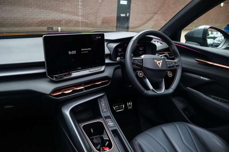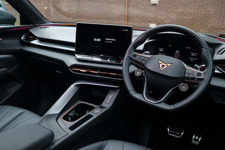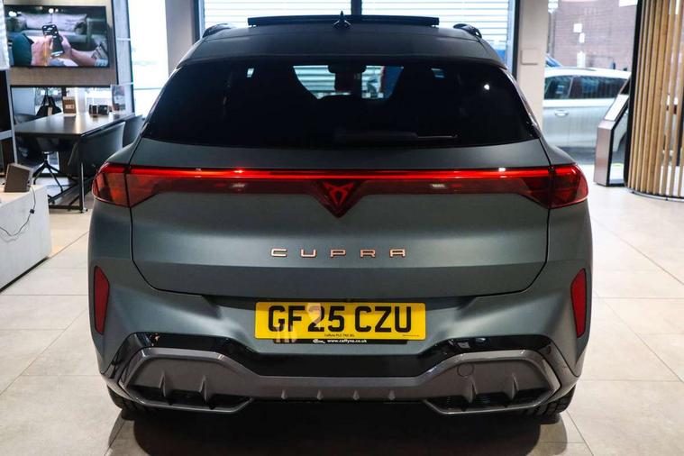 10.25" digital cockpit and configurable dashboard, Adaptive cruise control with follow-to-stop and speed limiter, Advanced driver alert system, Advanced lane assist with semi-automatic vehicle control in a medical emergency and traffic jam assist, Driving profile selection (DCC- Comfort, performance, CUPRA, Individual, Dynamic road sign display, E-call, Electric tailgate with virtual pedal, Emergency steering support with turn assist, Front and rear parking sensors, Front assist (Forward collision warning with automatic braking) with multifunction camera and front cross traffic assist, Head up Display, Intelligent park assist, Media system with Nav - 12.9" touch display, voice control, full link phone (wired/wireless), DAB and Steering wheel mounted controls, Rear traffic assist, Side and exit assist, Speed sensitive power steering, Start/stop system with regenerative braking, Top view camera (front camera, rear camera, 2 side cameras), Wireless phone charger, Adaptive chassis control with a 2-valve shock absorber, Immersive by Sennheiser TM - 10 speakers, 1 central speaker, 1 subwoofer, Americas Cup Edition - lasered logo in B pillar, Auto dimming rear view mirror, Black roof rails, CUPRA 3D rear lights with ceremony & swiping indicator and illuminated logo, Dark tinted rear windows, Daytime running lights with automatic headlight control and Coming and Leaving home function, Door mirrors with memory function and lowing function on passenger mirror, Electric front/rear windows, Electrically adjustable, heated and folding door mirrors, Front fog lamps with cornering function, Heat reflecting windscreen, High beam assist, Matte paint, Panoramic sunroof, Rain sensing wipers, Rear fog light on one side, back up light on both sides, Rear side wing doors, Rear wash/wipe, Third brake light, Welcome lights (within exterior mirror housing), 3 seat bench in 2nd row, Black roof lining, Cupra sports pedals, Driver seat memory function, Electrically adjustable front seats including lumbar support, Four x USB Type C ports (2 in front and 2 in rear), Front and rear head restraints, Front and rear reading lights X 4, Front centre armrest, Heated front seats, Heated leather wrapped multi function sports steering wheel with tiptronic, Illuminated interior front door sills, Isofix, Leather upholstery, Operating voltage 12V, Single front passenger seat, Smart wraparound interior lighting, Sunvisors with illuminated mirror, Three zone climate control with control panel in rear, Unsplit rear seat bench, split folding backrest, with centre armrest, Variable luggage/load compartment floor, Pure performance pack - Terramar, 3 point seatbelts in front with pretensioner and electric height adjustment, 3 point seatbelts on all rear seats, Brake control system - ESC and brake booster, Child proof door locks, Driver and front passenger airbags, Electronic parking brake, Front and rear disc brakes, Front interaction airbag, Front passenger airbag deactivation switch, Front side airbags with curtain airbags, Pre-crash front and rear seat belt tensioner, window closure and hazard lights, Tyre pressure monitoring system, Visual and acoustic seat belt reminder, electric contact in front and rear, Anti theft alarm, Keyless locking and starting system with keyless access, Locking wheel bolts, Black decorative trims, Chrome interior detailing, 20" Vortex exclusive sportblack matte alloy wheels, Breakdown kit, Performance tyres in polmer coating, Tool kit,