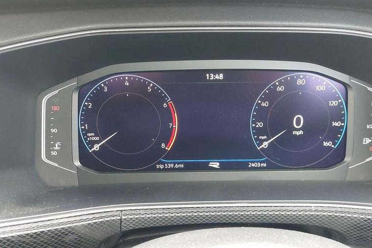 'Lights On' Reminder warning buzzer, 10.25" Digital cockpit pro, Advanced driver attention and drowsiness monitor, Car information display, Driver profile selection including ECO function, Dynamic road sign display, E-Sim card for online connectivity, eCall emergency call system, Front and rear parking sensors, Front assist, forward collision warning, autonomous emergency braking and speed limiter, Low washer fluid warning light, Multifunction computer with visual gear change recommendation for fuel consumption, Multifunction front facing camera for distance control, Operating permit alteration, Power assisted steering, Predictive adaptive cruise control, Preparation for navigation system with media and internet package, Preparation for We connect and We connect plus, Semi-automated driving assistance, travel assist including lane keeping system Lane Assist and emergency assisst, Side assist, Speedo, rev counter, electronic odometer, trip, service interval display, exterior temperature and fuel gauge, Warning sound and light for doors and tailgate open, Warning sound and light for front seatbelts unfastened, Wireless Car net app connect with Apple CarPlay, combined functionality of Apple CarPlay/Android Auto and MirrorLink, Wireless charging, Misfuel prevention device, Start-stop system with battery regeneration (recuperation - energy recovery during braking), 2 USB C ports in front, 2 USB charging sockets on the centre console in the rear charging capacity upto 45W, Diversity antenna for FM reception, Music playback - MP3, WMA and AAC files, Radio, Automatic dimming interior rear view mirror, Automatic hazard lights activation under emergency braking, Automatic headlight control with LED separate daytime running light and coming home and leaving home feature, Body colour door handles, Body coloured bumpers, Dynamic headlight range control with self adjusting whilst driving, Electric folding door mirror, adjustable, heated with front passenger exterior mirror lowering function, Exterior mirrors convex on the left and aspherical on the right, Front and rear electric windows, Front door sill protectors with R-Line logo, Galvanised body, Heat insulating and laminated safety glass windshield, Heat insulating darkened glass in side and rear windows, High Beam Assist, automatic sensing for switching between dipped and main beam, LED rear combination lights, LED third brake light, Lower door sills and door pillars in black, Rain sensor, Rear fog light on one side, reversing light on both sides, Rear side wing doors, Rear window aerial, Rear window wiper with intermittent control, Reflectors in all doors, Scuff plates, Tailgate with integrated roof spoiler, 12V Accessory socket in centre console, 2 Front and rear reading lights incorporating LED technology, 3 rear head restraints, 3 seat bench in 2nd row, 60/40 split folding rear seat backrest, Air care climatronic 2 zone air conditioning system, Ambient lighting, Brushed stainless steel pedals, Chrome plated radiator grille inserts, air vent surrounds and light switch surrounds, Cloth upholstery, Comfort front sport seats, Door and side trim panel, Driver and front passenger sunvisor with vanity mirror, Dust and pollen filter, Front + rear carpet mats, Front centre armrest with storage compartment, Front footwell illumination, Front seat back storage pockets, Glove compartment door with light, Heated front seats, Heating and fresh air system with 4 stage blower, Height/reach adjust steering wheel, Instrument lighting white adjustable panel illumination, Interior light with switch off delay and dimmer, Isofix anchors for child seats on outer rear seats and front passenger seats, Leather gearshift handle, Leather wrapped multifunction steering wheel, Luggage compartment floor, Luggage compartment lighting, Manual front seats with height adjustment, Padded dashboard, Removable luggage compartment cover, Single front passenger seat, Storage compartment in drivers and front passengers door, Titanium black roof lining, Unsplit sliding rear seat bench, Without drawers under front seats, 3 point outer rear seat belts with ECE label, 3 Point seatbelt for centre rear seat, Anti-lock Braking System (ABS) with Hydraulic Brake Assist (HBA), Automatic post collision braking system, Disc brakes in front, Disc brakes in rear, Driver and front passenger safety-optimised head restraints, Drivers and Front Passengers airbags with front passengers airbag deactivation switch, ESC with EDL and ASR (traction control), Extended and predictive pedestrian/cyclist protection, Front and rear passenger curtain airbag system including front side airbags, Height adjustable front 3 point seatbelts + pretensioners, Hill start assist, Pre crash preventive occupant protection, Proactive passenger protection system in combination with front assist, Rear door child safety locks, Rigid safety cell with front and rear crumple zones, Single tone horn, Tyre pressure loss indicator, Volkswagen roadside assistance, Alarm with interior protection, Anti theft alarm system, Electronic engine immobiliser, Remote tailgate unlocking using key fob, Titanium Black Decorative inserts - R Line, Low rolling resistance tyres,