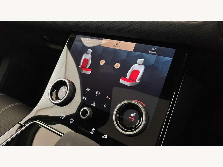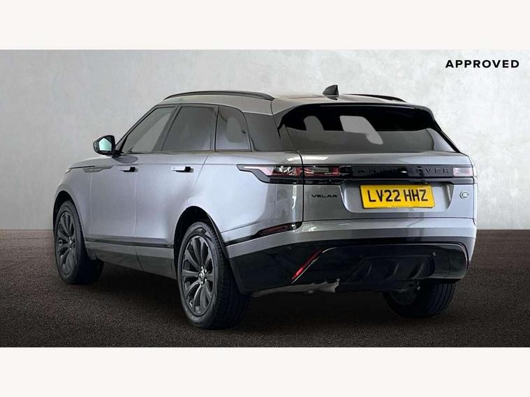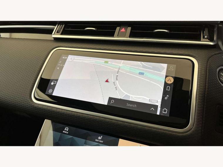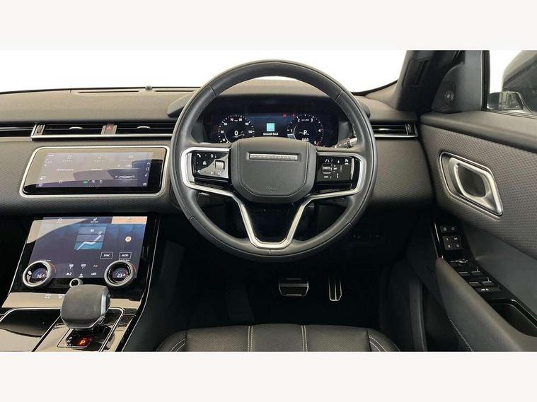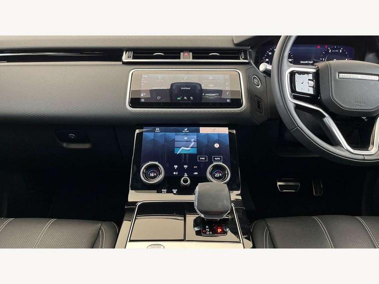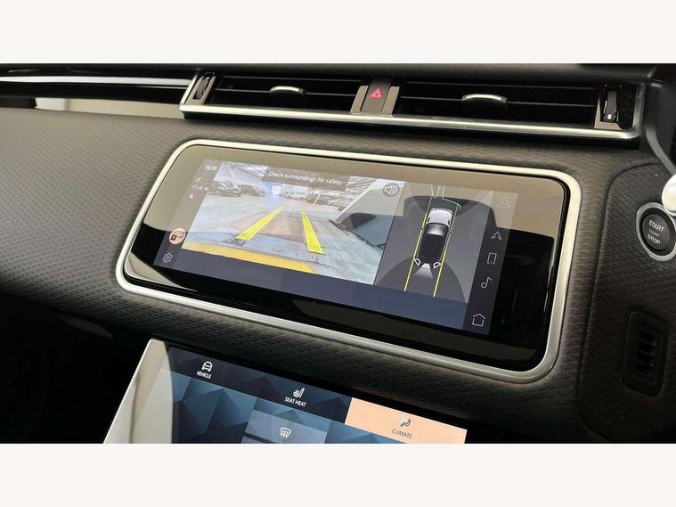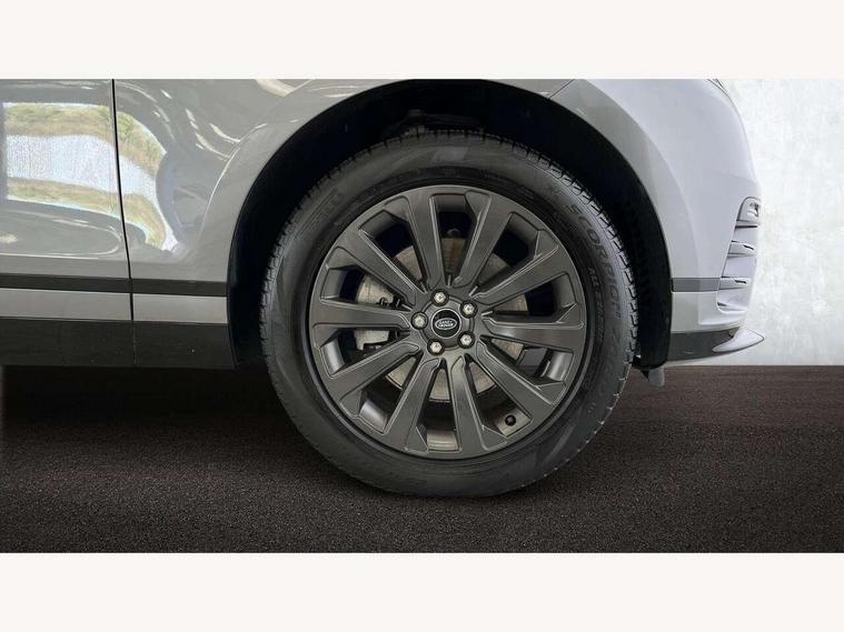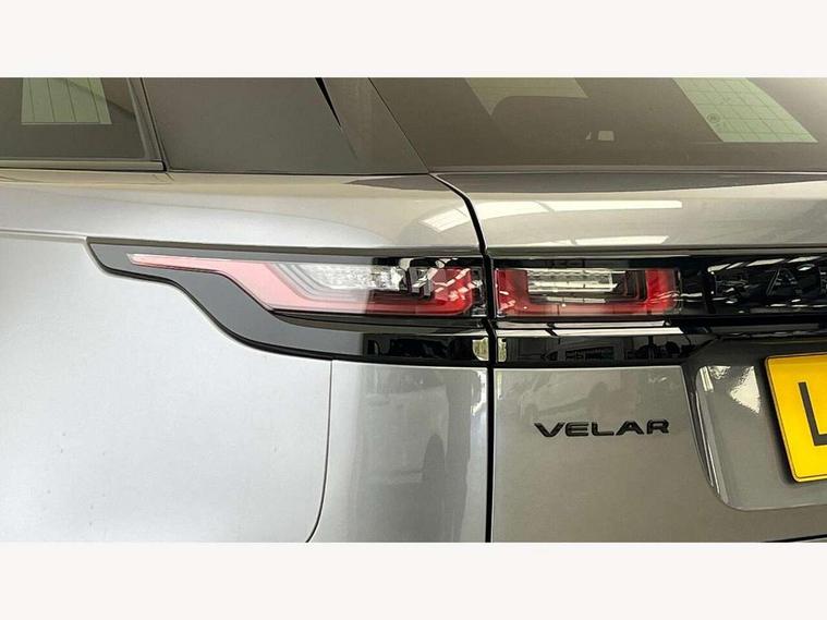 10" deployable touchscreen, Android Auto, Apple car play, Blind spot assist, Bluetooth connectivity, Brake pad wear indicator warning light, Driver condition monitor, eCall emergency call system, InControl remote, Land Rover InControl apps, Lane keep assist, Pivi pro with connected navigation, Push button start, Rear traffic monitor, Service indicator, Speed proportional electronic power assisted steering (EPAS), Traffic sign recognition with adaptive speed limiter, Trip computer, Voice control system, 8 speed automatic transmission, All terrain progress control, Open differential with torque vectoring by braking, Single speed transfer box, Digital Audio Broadcast radio-DAB, Steering wheel mounted controls, Acoustic laminated windscreen, Adaptive front lighting system, Auto dimming interior rear view mirror, Automatic headlamp levelling, Automatic headlights, Body coloured bumpers, Boot protection plate, Electric heated/power fold door mirrors with approach lights and auto dimming driver side, Electric windows with one touch open/close and anti trap, Flush deployable exterior door handles, Follow me home headlights, Heated rear window with timer, Heated washer jets, Heated windscreen, LED 3rd brake light, Metal load space scuff plates, No badge - Removes engine badge, Rain sensor windscreen wipers, Rear animated directional indicators, Rear fog lights, Rear side wing doors, Rear wash/wipe, Tailgate/boot lid spoiler, Trailer stability assist, Velar and R-dynamic badge, 3 seat bench in 2nd row, Ambient lighting, Bright metal pedals, Driver/passenger sunvisors with illuminated vanity mirrors, Isofix system on outer rear seats, Loadspace cover, Overhead lighting console, Overhead stowage for sunglasses, Passive front headrests, Rear air vents, Rear centre headrest, Satin chrome gearshift paddles, Single front passenger seat, Standard interior, Twin front cupholders, Twin sliding front centre armrest, Online pack with data plan - Velar, 355mm front brakes and 325mm rear brakes, 3x3 point rear seatbelts, Anti-lock braking system (ABS), Cornering brake control, Curtain airbags, Customer configurable autolock, Door side intrusion beams, Driver airbag, DSC - Dynamic Stability Control, Electronic brake force distribution, Electronic parking brake, Electronic traction control, Emergency brake assist, Emergency braking, Front and rear seatbelt reminder, Hill descent control, Hill launch assist, Low traction launch, Passenger airbag, Power operated child locks, Rear airbags, Roll stability control, Side airbags, Tyre pressure monitoring system, Unpainted brake calipers, Global lock and unlock switch on driver door, Immobiliser, Intrusion sensor, Keyless entry, Lock only switch on front passenger door, Locking wheel nuts, Perimetric alarm, Remote central locking,