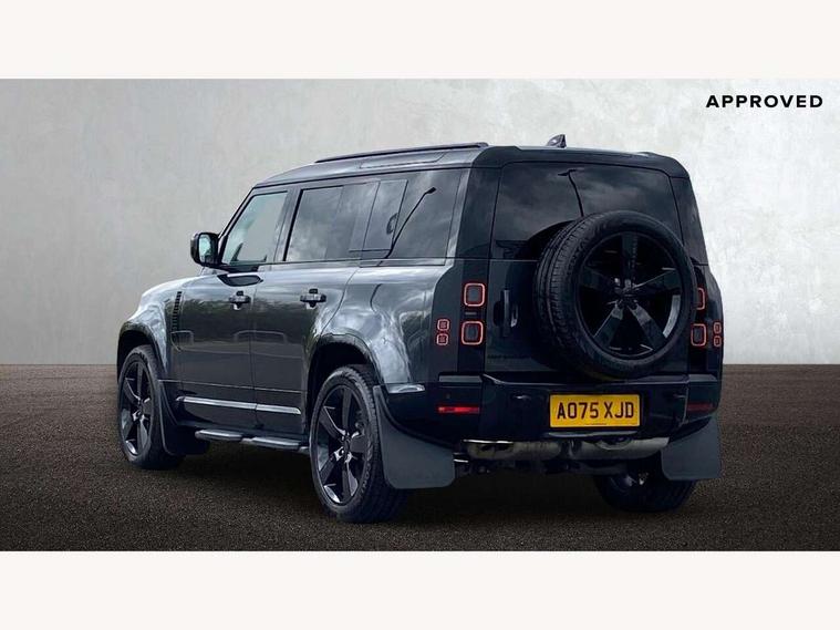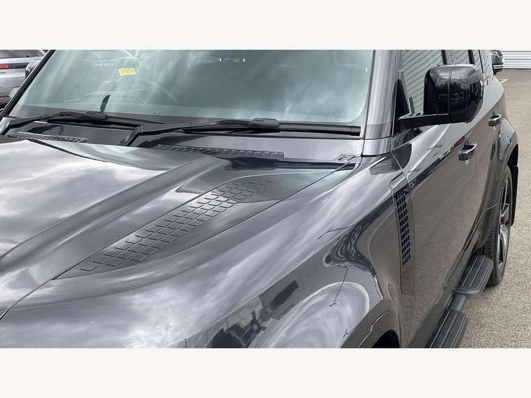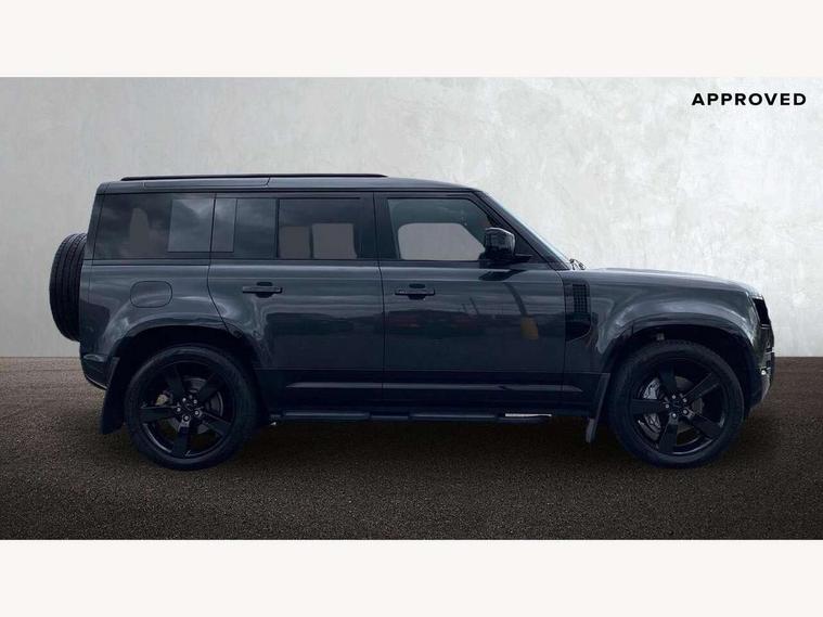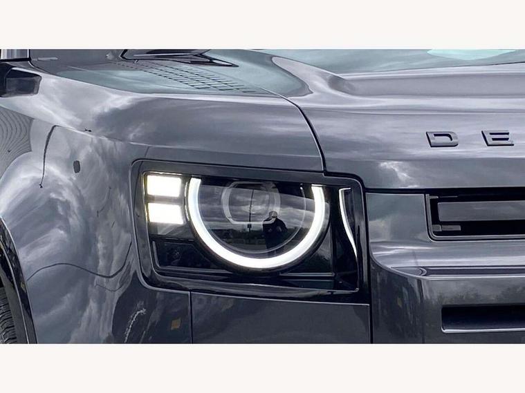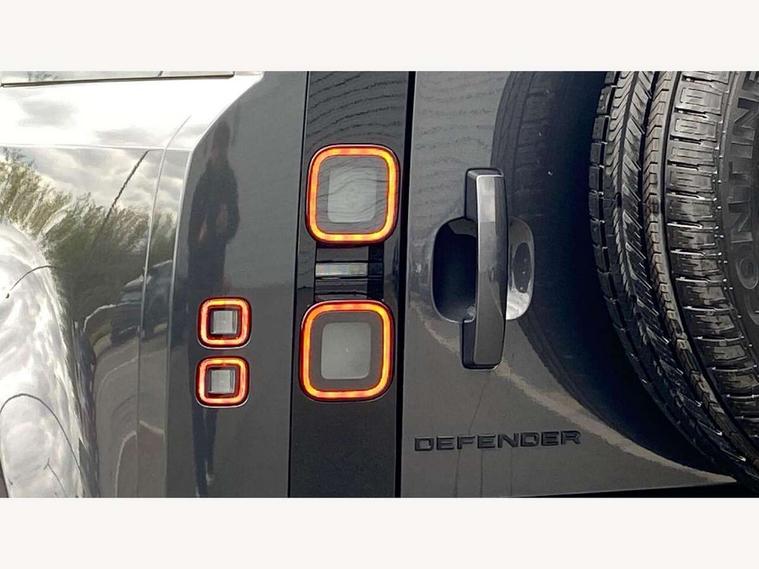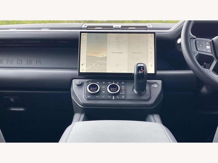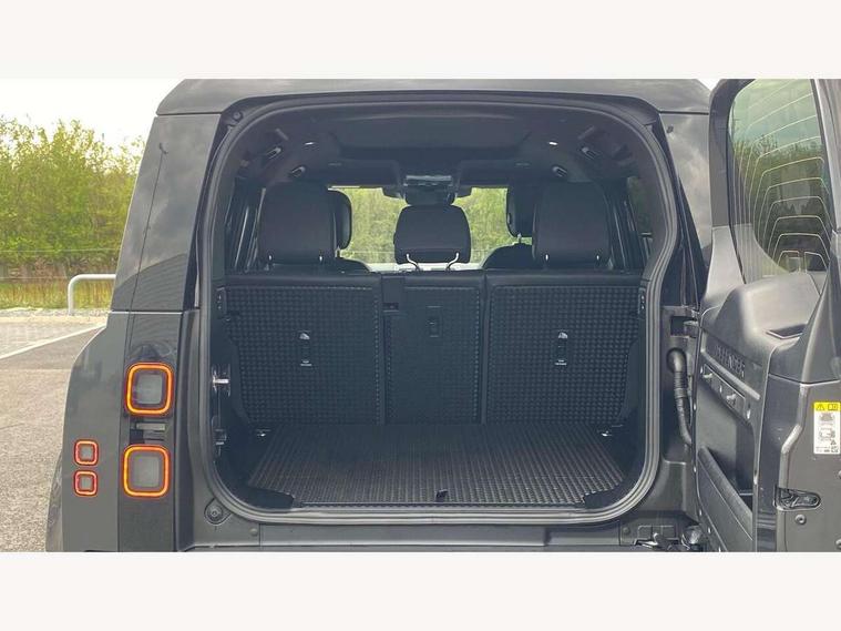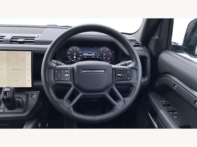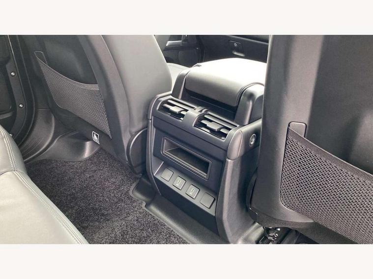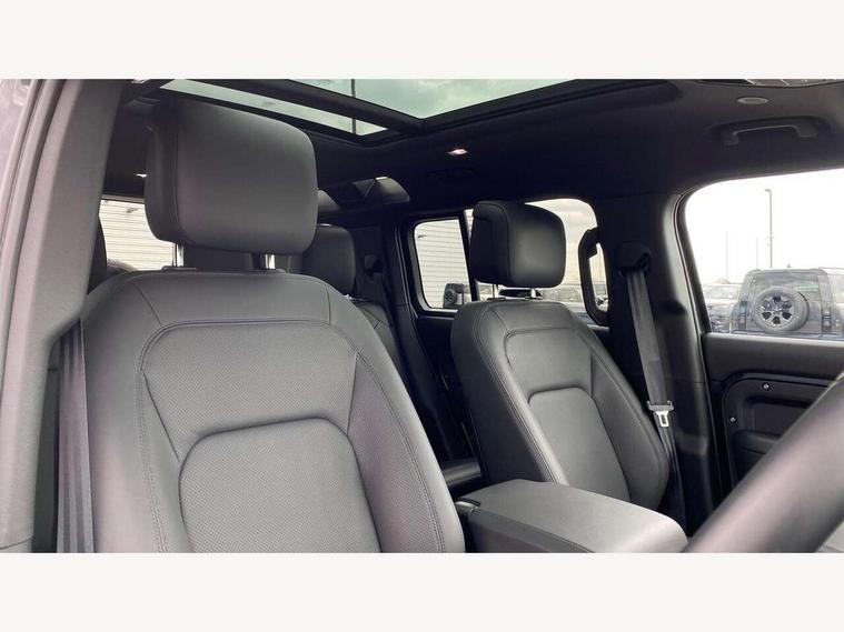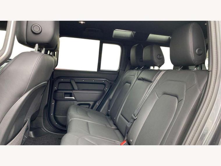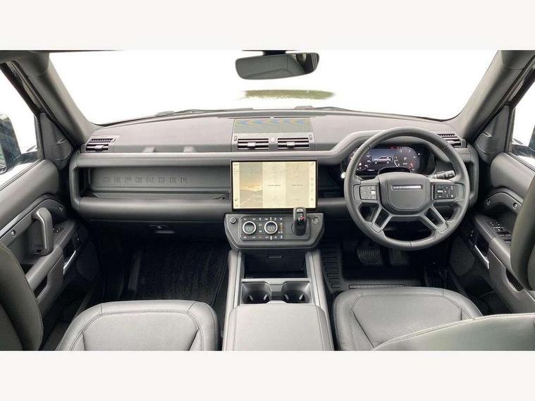 1 x USB-C (power only) & 1 x USB-C (power & data) in Row 1, 2 x USB-C in Row 2, 11.4" touchscreen, 360 degree parking aid, 3D Surround Camera with 360 View, 180 Rear View, Front Traffic Detection, Forward Vehicle Guidance, Tow Hitch Assist and clear sight Ground View, Adaptive cruise control, Android Auto, Apple CarPlay, Blind spot assist, Bluetooth system, Brake pad wear indicator, Clear exit monitor, Connected navigation pro, Driver attention monitoring system, Electric power assisted steering (EPAS), Interactive driver display, Lane keep assist, Push button start, Rear collision monitor, Rear traffic monitor, Traffic sign recognition with adaptive speed limiter, Trip computer, Wireless device charging, 8 speed automatic transmission, All wheel drive system, Twin speed transfer box, DAB Radio (Digital Audio Broadcasting), Meridian 700w surround sound audio system with 15 speakers, Pivi pro connected, Automatic headlight levelling, Automatic headlights, Black exposed rear recovery eyes, Body coloured bonnet, Darkened LED tail lights, Electric heated/power fold door mirrors with approach lights and auto dimming driver side, Electric windows with one touch open/close and anti-trap, Follow me home lighting, Front fog lights, Heated rear window with timer, Heated windscreen, LED 3rd brake light, LED tail lights, Matrix LED headlights with signature DRL, Privacy glass, Puddle lights, Rain sensing windscreen wipers, Rear fog lights, Rear side wing doors, Rear wiper, Side hinged tailgate, Sliding panoramic roof, Standard tail door, Trailer stability assist, X-Dynamic badge, 12V power socket in loadspace, 3 seat bench in 2nd row, Alpine lights, Configurable cabin lighting, Durable rubber cabin flooring, Durable rubber loadspace flooring, Electric reach + rake adjustable steering column, Electrically adjustable steering column, Extended leather upgrade, Footwell lights, Front head restraints, Front passenger isofix child seat attachment, Heated steering wheel, Loadspace cover, Loadspace Hook, Multifunction steering wheel, No flat load floor storage, Overhead stowage for sunglasses, Rear headrests, Rear ISOFIX, Rear reading lights, Single front passenger seat, Soft close tail door, Standard seat configuration, Storage glovebox, Sunvisors with illuminated vanity mirrors, Twin front cupholders, Non-smoker package, Online pack with data plan - Defender, 5 x 3 point seatbelts, ABS, Brake hold function, Cornering brake control (CBC), Customer configurable autolock, Driver and passenger airbags, DSC - Dynamic Stability Control, EBD - Electronic brakeforce distribution, Electric parking brake (EPB), Emergency brake assist, Emergency braking, ESP + traction control, Front airbags with passenger seat occupant detector, HDC - Hill descent control, Hill launch assist, Low traction launch, Power operated child locks, Remote for (e-Call, Optimised assistance call, InControl app, Climate, beep and flash and door), RSC - Roll stability control, Seat belt reminder, TPMS (Tyre pressure monitoring system), Alarm, Immobiliser, Intrusion sensor, Keyless entry, Locking wheel nuts, Secure tracker pro,