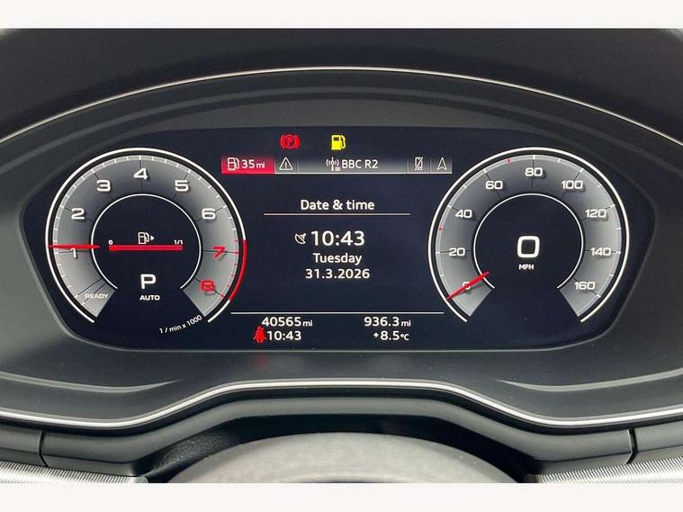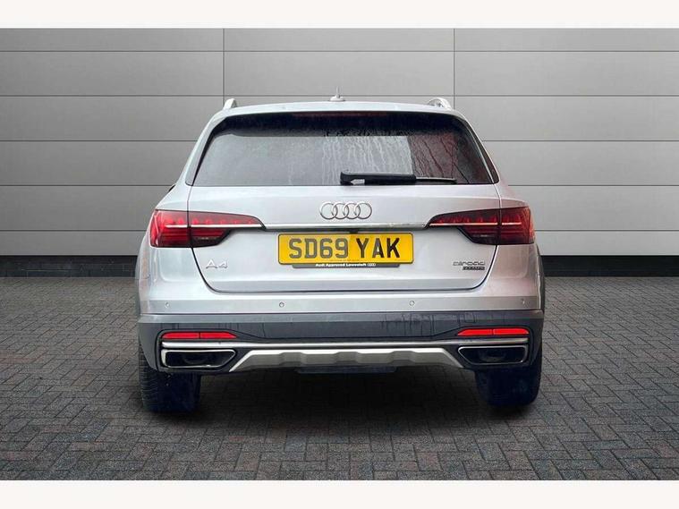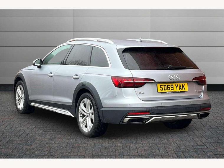 Audi connect safety and service (e-call), Audi drive select, Audi parking system plus with front and rear sensors, Audi smartphone interface, Audi virtual cockpit, Automatic start-stop system with coasting functionality and efficiency programme, Bluetooth interface, Electromechanical power steering, MMI Navigation plus with MMI touch includes 10.1" high resolution colour MMI display, 3D map, Power operated tailgate, Rear view camera, Voice control system, Comfort dynamic suspension, Quattro all wheel drive, 2 USB charging ports, 8 passive loudspeakers, CD Drive, DAB digital radio reception, Allroad radiator grille with vertical chrome slats, Auto dimming rear view mirror, Body coloured door mirrors, Chrome plated exhaust trims, Door sill trims in aluminium inlay with allroad logo, Electrically folding auto dimming/adjustable/heated door mirrors with LED side indicators and kerb view function for passenger side, Extended side sills in selenite silver, Front acoustic glazing, Front and rear bumpers and extended wheel arches in contrasting finish, Front underbody protection, High beam assistant, LED headlights with LED rear lights + dynamic rear indicators + headlight adjustment and high beam, turning light + LED daytime running lights, Privacy glass, Rain and light sensors, Windscreen with acoustic glazing, 3 spoke high multi-function leather sport steering wheel with paddle shift and height and reach adjustable, 4 way electric lumbar support for driver and front passenger, 40/20/40 split folding 3 rear seat bench in 3 parts with rear centre armrest, Deluxe 3 zone electronic climate control, Electric load area cover, Front and rear head restraints, Front centre armrest, Heated front seats, ISOFIX child seat mounting and top tether, Manual seat adjustment, Stainless steel loading sill protector, Tool kit, Twin leather upholstery + front sports seats, Exterior off road aluminium package - A4 Allroad, High gloss package - A4, LED Interior light pack - A4/S4, Storage and luggage compartment pack - A4, 3 rear seatbelts, 6 airbags - Driver, front passenger, curtain and side windows, Electronic Stabilisation Control (ESC) including ABS, ASR and EDL, Hill hold assist, Multi collision brake assist, Off road detection system, Pop-up bonnet for pedestrian protection, Pre sense city, Seatbelt monitoring, Warning triangle and first aid kit, Anti theft alarm, Anti theft wheel bolts, Keyless Go, Aluminium ellipse silver inlays, Tyre repair kit,