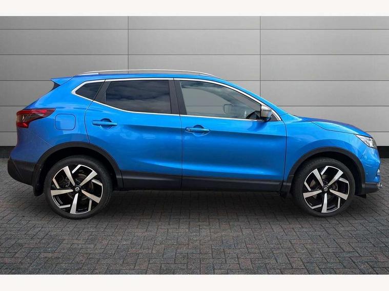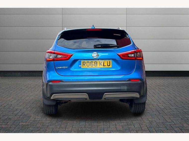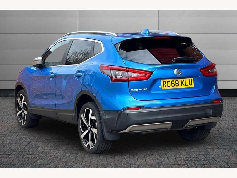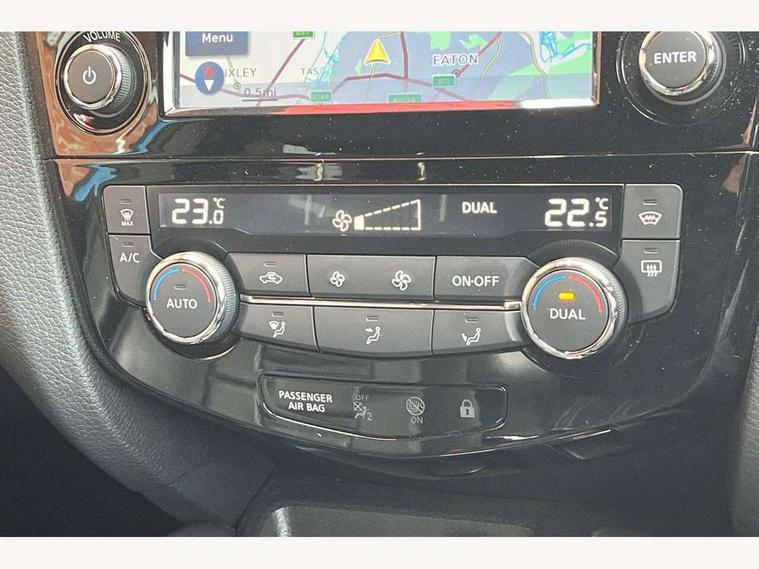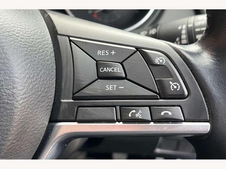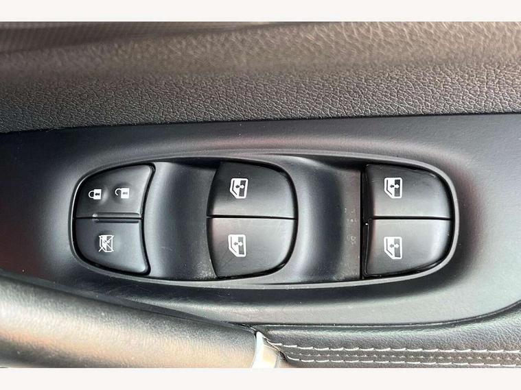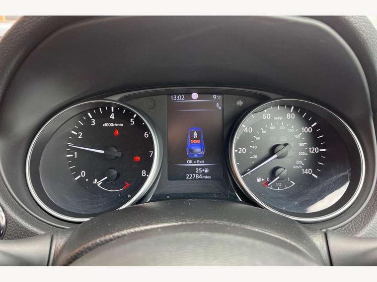Advanced drive assist display 5'' TFT coloured screen, Bluetooth phone integration system, Cruise control + speed limiter, Electric speed sensitive power steering, Front parking sensors, Intelligent around view monitor, Intelligent parking assist, Lane departure warning system, Nissan connect evo 7" touchscreen navigation and entertainment system, Outside temperature sensor, Push button starter, Rear parking sensors, Rear view camera, Selectable steering, Service interval indicator, Smartphone integration, Stop/start system, Traffic sign recognition, Trip computer, Nissan chassis control (intelligent ride control, intelligent trace control, intelligent engine brake), Aux-in socket, Bose premium 8 speaker system, DAB Digital radio, Radio/CD, Steering wheel mounted audio controls, USB port, Anti dazzle rear view mirror, Auto wipers, Body colour bumpers, Body colour door handles, Body colour door mirrors, Chrome window surround, Daytime running lights dip function when turn signal applied, Electric folding door mirrors, Electric front and rear windows with one touch illuminated window controls, Electric front/rear windows, Electrically adjustable door mirrors, Front fog lights, Heated door mirrors, High beam assist, Intelligent auto headlights, LED indicators in door mirrors, Matt silver roof rails, Panoramic sunroof with one touch shade, Privacy glass, Rear roof spoiler, Rear wiper, Shark fin antenna, Silver door mirrors, Underbody vortex generators, 2 X front 12v power sockets, 3 height adjustable rear headrests, 60/40 split folding rear seat, Ambient interior lighting, Boot light, Centre console storage box/armrest, Chrome interior door handles, Configurable luggage board system, Dark headlining, Dual zone climate control, Electric 4-way lumbar support for drivers seat, Electric adjust driver's seat, Electrically adjustable passenger seat, Front and rear door pockets with bottle holders, Front and rear seat belt pre-tensioners with load limiters, Front headrests, Height adjustable front headrests, Individual rear seat reading lights, Leather D shaped steering wheel, Leather gear lever, Leather knee pad, Manual lumbar support on passenger seat, Map reading lamp, Memory for drivers seat/door mirrors, Monoform front seats with plastic backboard, One touch electric shade, Parcel shelf stow function under luggage board, Pollen filter, Rear armrest with 2 cupholders, Rear headrests, Synthetic leather wrapped door handle with contrasting stitching, Tilt/telescopic adjustable steering wheel, Heat package - Qashqai, LED pack - Qashqai, Safety shield plus pack - Qashqai, 6 airbags - Driver, front passenger, curtain and side airbags, ABS, ESP, EBD and brake assist, Auto hold function, Child locks on rear doors, Electronic parking brake, Front and rear seat belt warning, Front passenger airbag deactivation, Height adjustable front seatbelts, Hill start assist, Intelligent emergency braking with pedestrian recognition, Three 3 point rear seatbelts, Tyre pressure monitoring system, Anti-theft immobiliser, Intelligent Key, Remote central locking, Thatcham Cat.1 alarm, Carbon graphite dash trim, Tyre puncture repair kit,