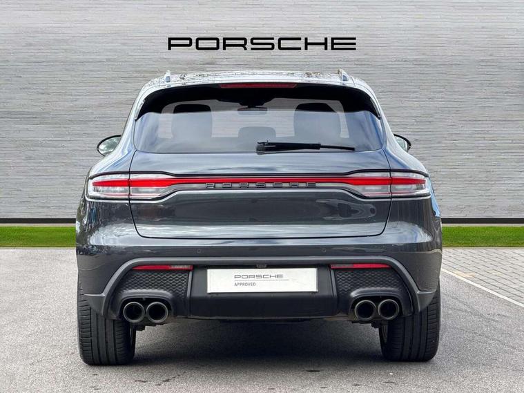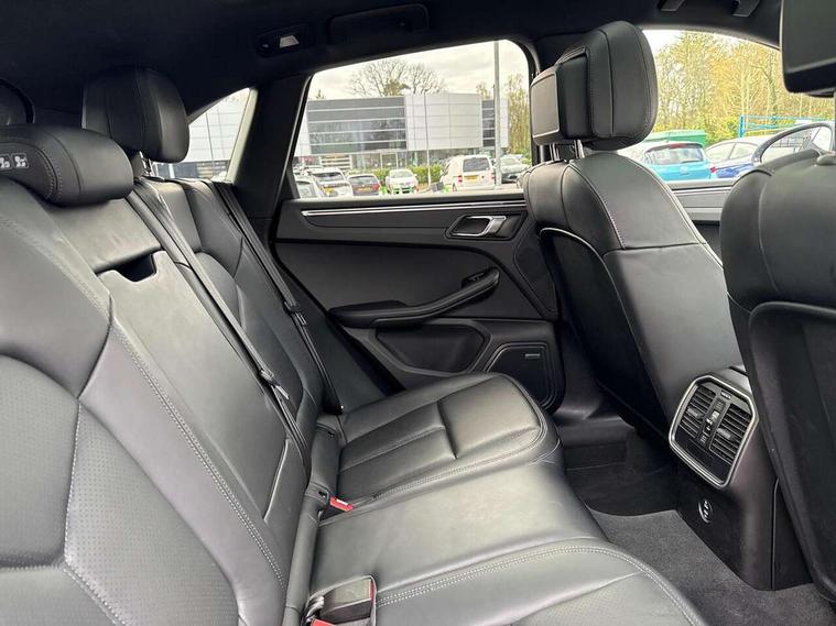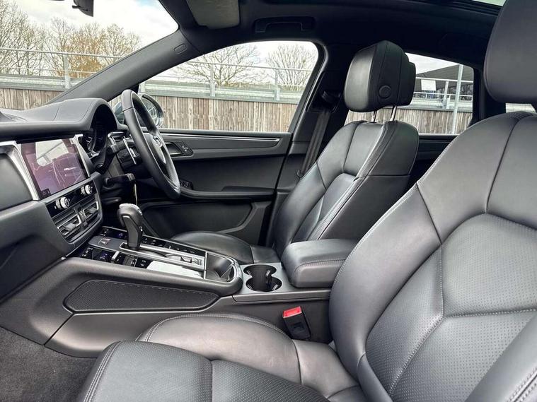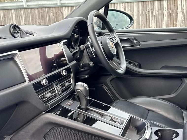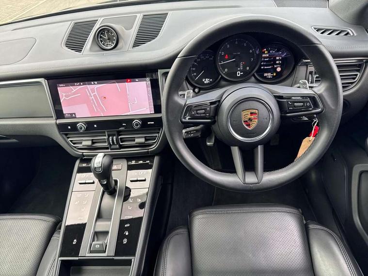 Analogue clock on dashboard, Automatic start/stop system, Automatic tailgate, eCall emergency call system, Instrument cluster with high resolution 4.8-inch TFT display, gear indicator for PDK, service interval display, external temperature indicator, fuel gauge, Off-road button, On board computer, Porsche Communication Management (PCM) including online navigation module, mobile phone preparation, audio interfaces and voice control system, Sports button in centre console, 7-Speed Porsche Doppelkupplung (PDK) with automatic mode and manual controls (gearshift paddles) on steering wheel, Direct fuel injection (DFI), Gasoline particulate filter, VarioCam camshaft control for inlet and exhaust valves, 2 USB sockets in rear centre console, Apple CarPlay with Siri voice recognition, Connect Plus including online navigation, LTE communication module with SIM card reader, wireless internet access, Porsche Car Connect services, DAB Digital radio, Porsche Vehicle Traking System Plus (PVTS Plus), Smartphone compartment with wireless charging, Two USB C charging and connectivity ports in the front centre console storage compartment, Active radiator grille shutters, Automatic headlight activation including welcome home lighting, Bumper system with high strength cross members and two deformation elements + One threaded fixture point for towing eye contained in onboard tool kit, Dynamic cornering lights, speed-sensitive headlight and dynamic range control, adverse weather function, four-point LED daytime running lights, Electric front and rear windows with remote closing function + anti trap + one touch, Electrically folding and heated exterior mirrors, Front light modules with LED position lights and direction indicators, Front windscreen wipers with two speeds, intermittent wipe and rain sensor, Front with integrated cooling air intakes, Fully galvanised body, Heated rear window with automatic switch off, High level 3rd LED brake light integrated into roof spoiler, Loading edge protection in aluminium, Rear side wing doors, Rear window wiper with intermittent function and washer jet, Roof spoiler in high gloss black, Towbar preparation, 3 adjustable rear headrests, 3 rear seats, 3 zone auto climate control separate temperature setting+air recirculation include quality sensor, airflow regulation+AC MAX button+humidity sensor, 4 way adjustable front head restraints, 40:20:40 split folding rear bench seat, Cloth hook b-pillar, Fold up centre console armrest with fore/aft adjustment, Front and rear bottle holders in door panels, Front passenger seat, Glove compartment, Isofix fastening system for child seats on outer rear seats, Luggage compartment cover, Particle/pollen filter with active carbon filter, Rear armrest with 2 cupholders, Storage bin in centre console, Storage compartment in side of luggage compartment and storage compartment in spare wheel recess, Storage pocket in front and rear doors, Two integrated cup holders in front with variable diameter, Two socket 12V power outlets in front console and luggage compartment, Uncovered storage compartment in centre console, Ambient comfort lighting pack - Macan, Lower exterior trim package in black - Macan, 3-point automatic seatbelts with front and outer rear seats pretensioners and force limiter + manually height adjustable seatbelt + reminder warning, Auto hold function, Black painted brake calipers, Child locks on rear doors, Curtain airbags along entire roof frame and side windows from A pillar to the C pillar, Electronic parking brake, Front passenger airbag deactivation facility for installation of child seats indicator in overhead console, Front side airbags integrated into seat, Full size driver and passenger airbags, Internally vented brake discs with diameter of 350mm at front and 330mm at rear, Multi-Collision braking, Porsche hill control (PHC), PTM(Porsche Traction Management) and All-wheel drive with map-controlled multi-plate clutch, Roll over sensor for curtain airbag and seatbelt pretensioners, Side impact protection in doors, Tyre pressure monitoring system, Vehicle stability system, Porsche stability management (PSM) including ABS, ASR, ABD, MSR and trailer stability management, Vented discs brake with 4 piston aluminium monobloc fixed caliper at front, Vented discs brake with combination floating calipers at rear, Alarm system with ultrasonic interior surveillance, Dashcam preparation, Engine immobiliser with key transponder, Remote control central locking, Accent trims with silver coloured finish,