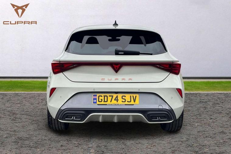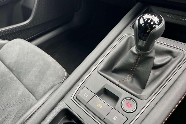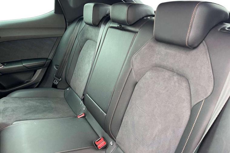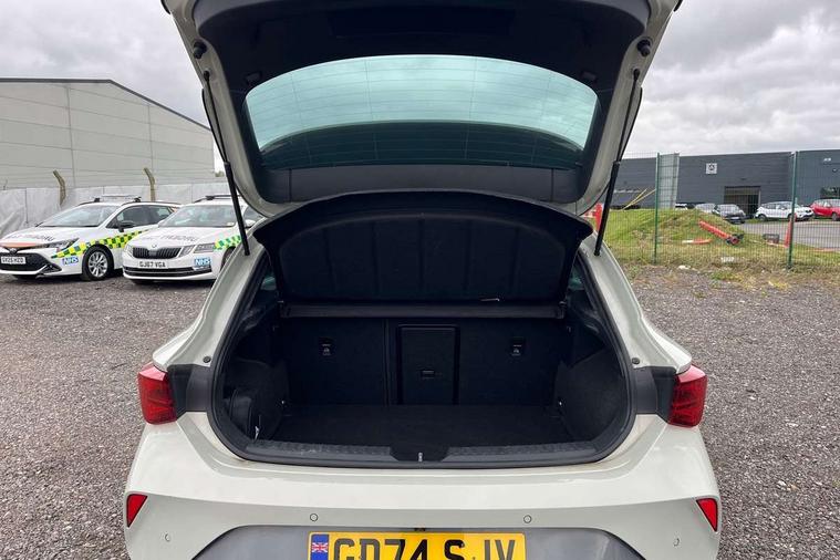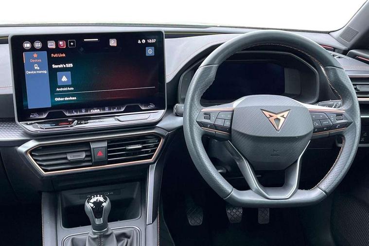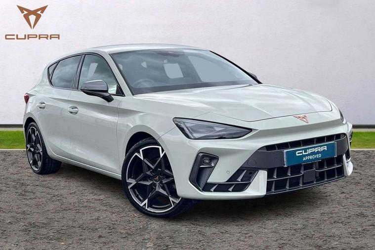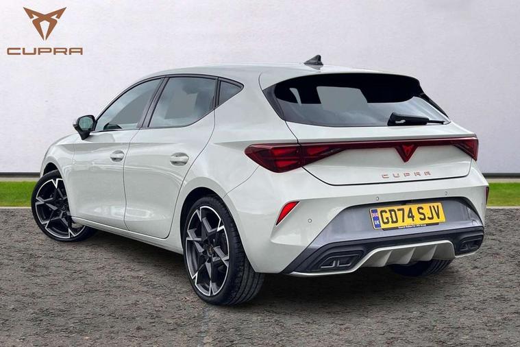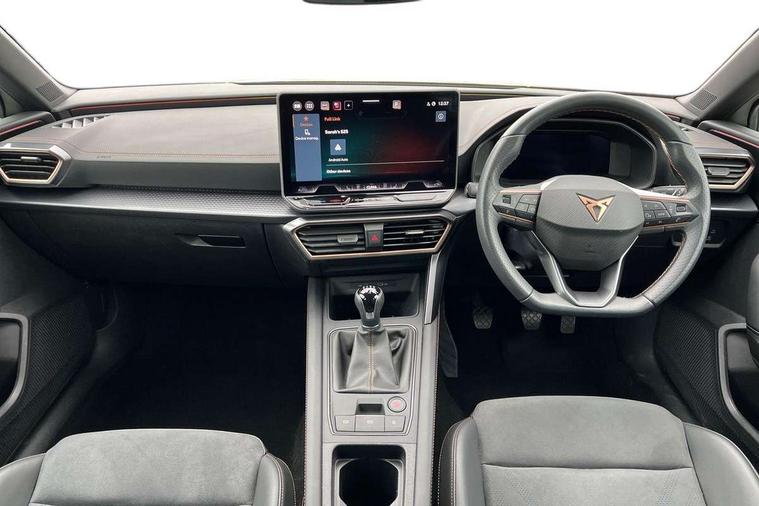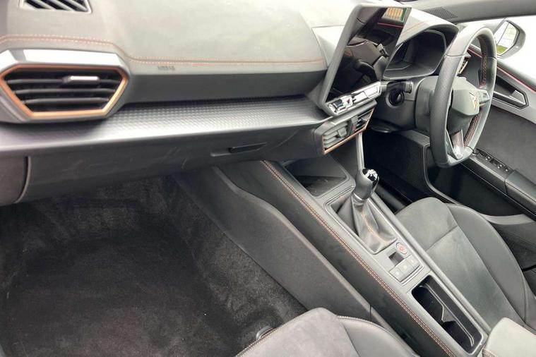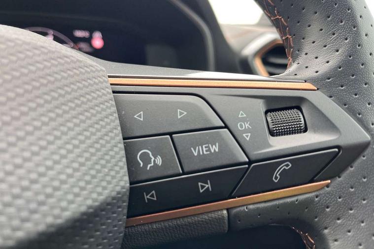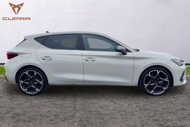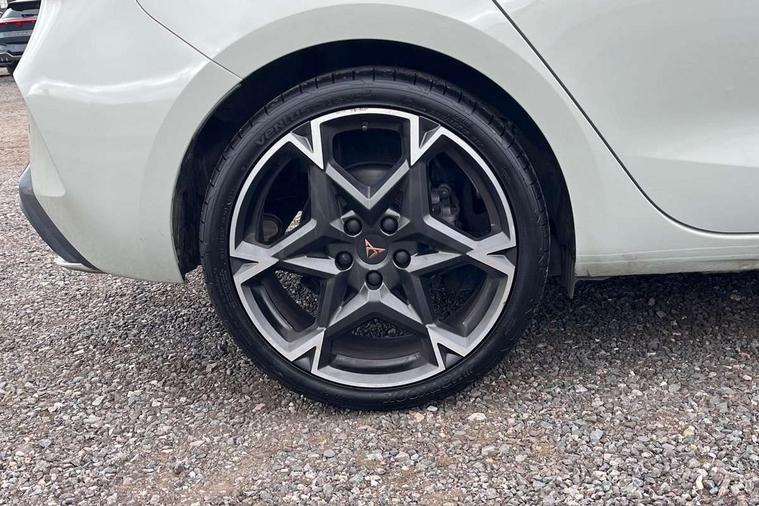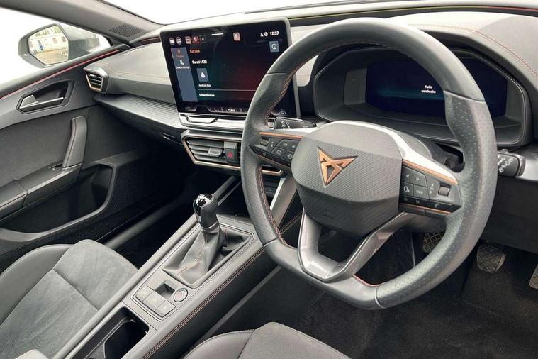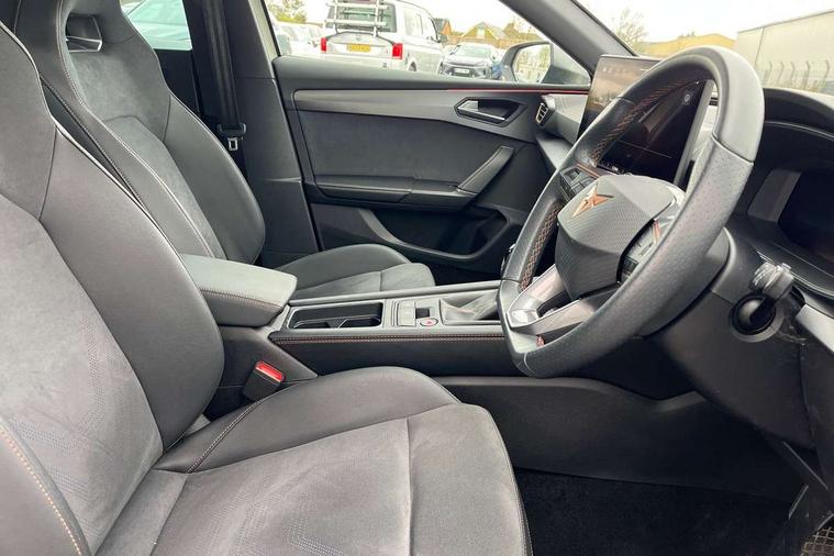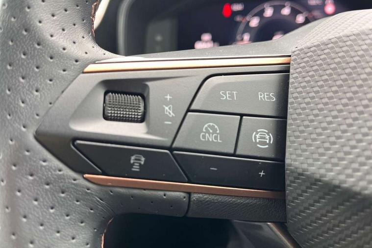 Adaptive cruise control with follow-to-stop and speed limiter, CUPRA drive profile selection with (Comfort/Sport/Individual), throttle response and gearshift mode, Digital cockpit, Dynamic road sign display, E-call, Front and rear parking sensors, Front assist with forward collision warning braking reaction to vehicles, pedestrians and cyclists, Full link smartphone integration with Mirror Link, wireless Apple CarPlay and wired Google Android Auto, Lane assist, Lockable tailgate, Rear view camera, RPM, trip computer, outside temp gauge, instrument light brightness, low fuel warning light, lights on reminder, gearshift indicator, Service interval indicator, Start/stop system with regenerative braking, Wireless phone charger, Auxiliary input socket, Auto dimming rear view mirror, Body colour door handles, Body coloured bumpers, Cupra sports bumpers, Dark tinted rear windows, Electric front/rear windows, Electrically adjustable, heated and folding door mirrors, High beam assist, LED front fog lamps with cornering function, LED headlights with dynamic turn signals, tail lights, rear fog lights with rear coast to coast lighting, LED rear fog lamp, Rain sensing wipers, Rear side wing doors, Rear wash/wipe, Separate daytime running light with automatic headlight control and coming home feature, Third brake light, Welcome light with logo projector in door mirrors, 12v power supply in centre console, 3 seat bench in 2nd row, 5 headrests, 60/40 split rear bench seat with armrest, Ambient lighting (glovebox, footwell, ambient lighting multicoloured), Black headlining, CUPRA Leather flat bottomed, heated, perforated steering wheel, Dinamica cloth upholstery, Electrically adjustable driver seat and lumbar support with memory function + manually adjustable passenger seat, Folding boot cover, Four x USB Type C ports (2 in front and 2 in rear), Front and rear reading lights X 4, Front centre armrest, Heated front seats, Height/reach adjust steering wheel, Illuminated interior front door sills, Interior wraparound lighting, ISOFIX points in outer rear seats with top tether anchorage points, Single front passenger seat, Storage pockets on rear of front seats, Sunvisors with illuminated mirror, Three zone climate control, Dynamic and comfort pack - Leon Cupra, Media system plus with 12.9" display + navigation pack - Leon Cupra, 3 point seatbelts on all rear seats, ABS, Brake control system - ESC and brake booster, Child proof door locks, Cupra black brake calipers, Driver and front passenger airbags with front passenger airbag de-activation, front side and curtain airbags, Electronic parking brake, Hill hold control, Rear disc brakes, Seat belt reminder for front and rear seats, Tiredness recognition system, Tyre pressure monitoring system, Anti theft alarm system with interior monitoring in cab, backup horn and towing protection, KESSY Advanced - Keyless start, keyless entry, Locking wheel bolts, Chrome and copper interior detailing, 19" Polar machined sport black and silver alloy wheel with 91Y tyres, Tool kit,