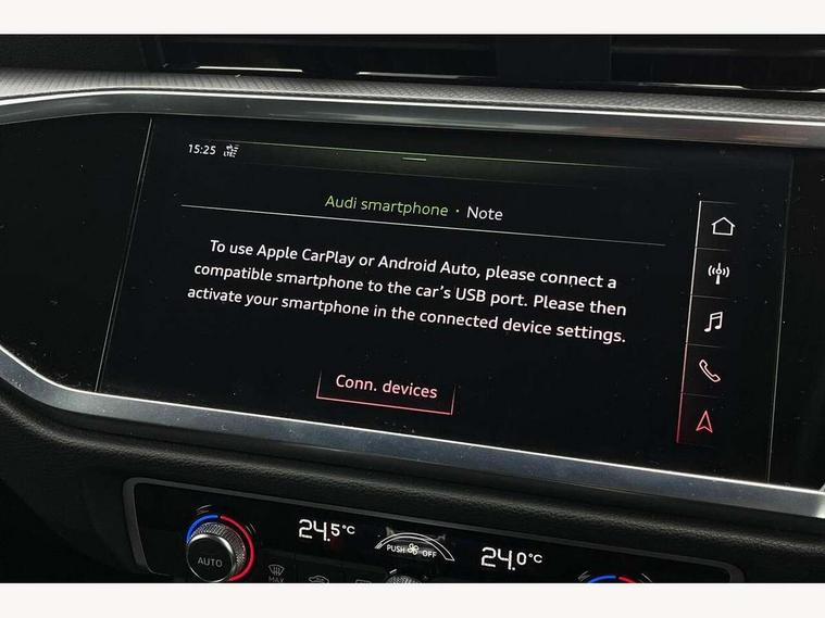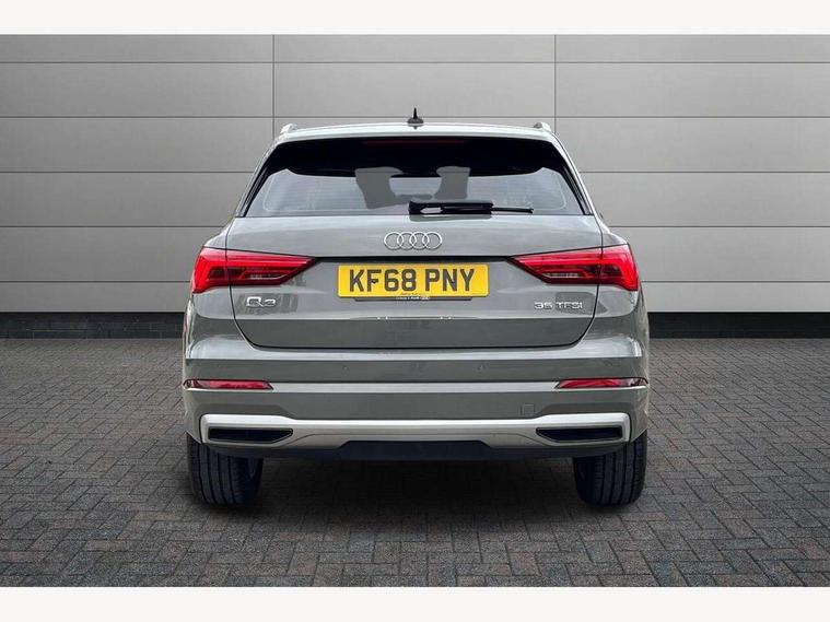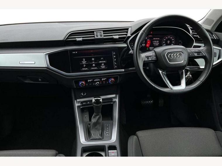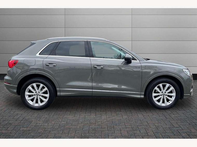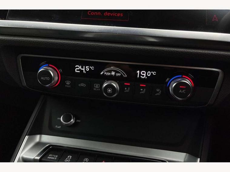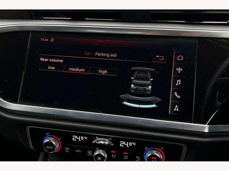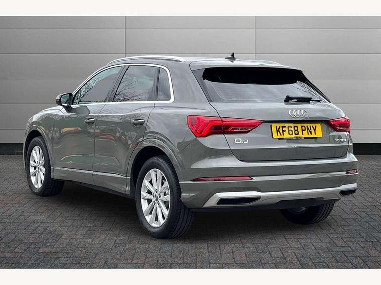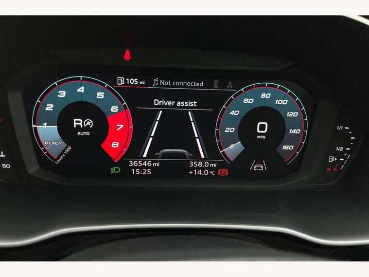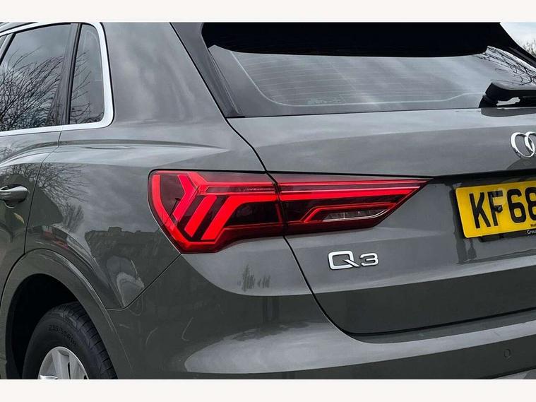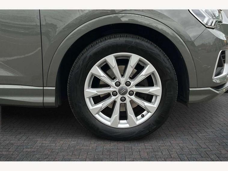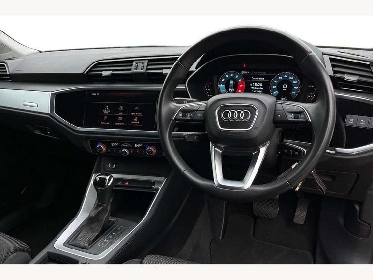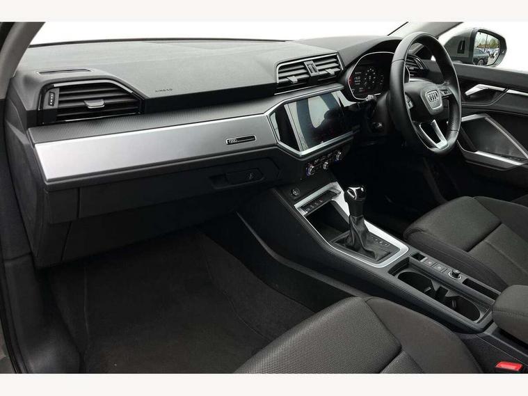 Audi connect, Audi drive select, Audi lane departure warning, Audi side assist, Audi smartphone interface, Audi Virtual Cockpit - 10.25" display, Bluetooth interface, MMI navigation plus with MMI touch, Power opening/closing tailgate, Progressive steering, Service interval indicator, Stop/start system, Voice control system, DAB digital radio module, Acoustic windscreen, Aluminium roof rails, Aluminium window trim, Auto dimming rear view mirror, Body colour door mirrors, Electrically adjustable and heated door mirrors with integrated LED side indicators, Front and rear electric windows, Front fog lights, Front side air inlets in matt selenite silver, Front spoiler in matt selenite silver, Grille vertical bars in aluminium silver/Matt, High gloss black finish B and C pillars, Rain and light sensors, Rear diffuser strip in selenite silver, Titanium black radiator grille, 12V socket in rear centre console, 40:20:40 split folding rear bench seat, Aluminium door sill trims, Dual zone climate control, Front and rear headrests, Front and rear velour floor mats, Front centre armrest with storage compartment and angle adjustment, ISOFIX child seat mounting and Top Tether with front passenger airbag deactivation, Lunar silver cloth headlining, Manual front seats with height adjustment, Stainless steel luggage compartment sill finisher, Non smoking pack - Q3, 3x3 point rear seatbelts, 6 airbags - Driver, front passenger, curtain and side windows, Electronic stabilisation control including ABS, ASR and EDL, Hill hold assist, Pre sense basic, Seatbelt monitoring, Tyre pressure warning, Warning triangle and first aid kit, Anti theft alarm, Anti theft wheel bolts, Audi pre-sense front with pedestrain and cyclist recognition, Remote central locking, MMI touch colour display in gloss black with aluminium surround,