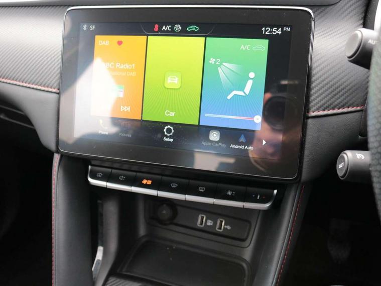 'Lights On' Reminder warning buzzer, 10.1" colour touchscreen, Android Auto, Apple CarPlay, Bluetooth connectivity, Cruise control with speed limiter, eCall emergency call system, PAS, Rear parking sensors, Trip computer, USB mobile phone charging function, 4 speaker audio system, DAB audio, Radio/MP3 player, USB/aux input socket, Auto headlights, Body colour bumpers, Body colour door handles, Body colour electric adjustable folding heated door mirrors, Chrome side window trim, Follow me home headlights, Front and rear aero wiper, Front and rear electric windows with driver's one-touch up/down, LED Bi-Function headlights, LED centre brake light, LED daytime running lights, Rear side wing doors, Rear spoiler, Rear wiper, Silver roof rails, 12V power sockets, 2nd row 60/40 split/fold, 3 rear headrests, 3 seat bench in 2nd row, 4 way manually adjustable passenger seat, 6-way manually adjustable driver's seat, Adjustable dual height boot floor, Air conditioning, Boot light, Driver's footrest, Front cupholders x 2, Front grab handles, Front headrests, Front reading lights, Front seat back map pockets, Glovebox, Houndstooth fabric upholstery, Illuminated switches and controls, Internal chrome door handles, ISOFIX restraints on outer rear seats x2, Leather steering wheel, Rake/reach adjustable steering wheel, Rear grab handle, Single front passenger seat, 3x3 point rear seatbelts, ABS/EBD, Anti rolling protection, Automatic unlocking of doors in case of impact, Dual front airbags, EBA, ESP, Front passenger airbag deactivation switch, Front seatbelts (3-point + pretensioner + load limiter), Front side airbags, Fuel cut off safety device, Hill launch assist, Rear door child safety locks, Rear passenger seatbelt alert, Seatbelt reminder for driver and front passenger, Side curtain airbags, Tyre pressure monitoring system, Alarm system and engine immobiliser, Automatic latching door, Remote central locking, Second remote key, Speed sensing door locks, Superlocking, 17" Typhoon diamond cut alloy wheels, Tyre repair kit,