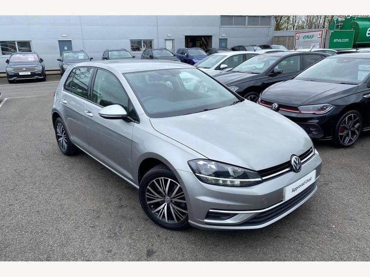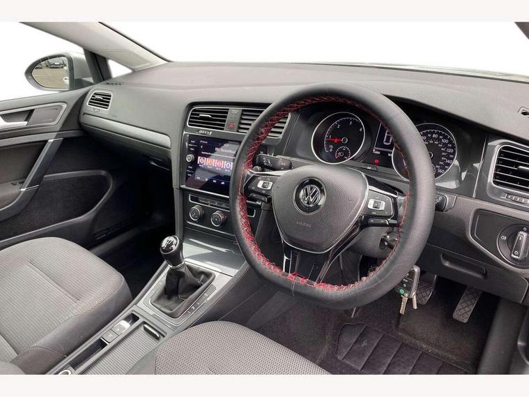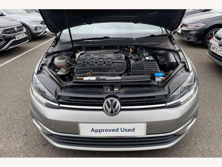 'Lights On' Reminder warning buzzer, 8" colour touch screen, ACC - Adaptive cruise control with front assist, forward collision warning, distance monitoring, city emergency brake and speed limiter, App-Connect, Bluetooth telephone and audio connection for compatible devices, Brake pad wear indicator warning light, Drive mode selector, Driver alert system, Driver profile selection, Front assist, radar sensor controlled distance monitor, city emergency braking + predictive pedestrian protection, Front assistant collision mitigation, Instrument cluster in white, Misfuelling protection device, Multifunction computer with visual gear change recommendation for fuel consumption, Power assisted speed sensitive electro-mechanical steering, Speedo, rev counter, electronic odometer, trip, service interval display, exterior temperature and fuel gauge, Stop/start system, Ultrasonic front and rear optical and audible parking sensors, Warning buzzer and light for front seatbelts unfastened, Battery regeneration during braking, Diesel particulate filter, XDS electronic differential lock, 8 Speakers, Composition media system, DAB Digital radio receiver, MP3/WMA compatability, SMS Functionality, USB and SD card connectivity, Automatic coming/leaving home lighting function, Automatic dimming rear view mirror/rain sensor, Black front air intake and radiator grille with chrome insert, Black rear diffuser, Body colour bumpers, Body colour door handles, Body colour door mirrors with integrated indicators, Electric front windows, Electric rear windows, Electrically adjustable and heated door mirrors, Glavanised body, Heated rear windscreen, High level 3rd brake light incorporating LED Technology, Range adjustable headlights via infotainment system with LED daytime running lights, Rear number plate lights incorporating LED technology, Rear window aerial, Rear window wash/wipe with intermittent wipe, Reflectors in all doors, Remote electrically foldable door mirrors, door mirror puddle lights and reverse activated kerb-view adjustment on passengers door mirror, Tailgate with integrated rear roof spoiler, Windscreen wipers/ intermittent wipe + 4 position delay, 12V socket in luggage compartment, 3 rear headrests, 4 load lashing points in luggage compartment, 60/40 split folding rear seat backrest, Bag hook in luggage compartment x 2, Cooled glovebox, Dust/pollen filter, Front and rear reading lights incorporating LED technology, Front centre armrest with storage compartment and two rear air vents, Front seat back storage pockets, Grab handles front x 2, rear x 2 with integrated coat hooks, Height and reach adjustable steering wheel, Illuminated vanity mirrors, Instrument lighting white adjustable panel illumination, Interior light delay, Isofix preparation for 2 rear child seats, Load through provision with rear centre armrest and cupholders x2, Luggage compartment light, Multifunction leather steering wheel with leather trimmed gear knob, Overhead storage box, Pearl grey headlining, Storage box in luggage compartment, Storage compartment in roof console with cover, Storage compartments in front doors, Storage compartments in rear doors, Stowable luggage compartment cover, Sun visors, Three spoke multi-function leather trimmed steering wheel and gearknob, Variable boot floor, height adjustable and removable, Mirror pack - Golf, 3 rear three point seatbelts, Airbags - Driver's and front passenger's, curtain airbag, Driver's knee, front side impact and passenger's airbag deactivation switch, Anti-lock Braking System (ABS) with Hydraulic Brake Assist (HBA), Automatic post collision braking system, Child locks on rear doors, Driver/Passenger optimised head restraints, Electronic parking brake with auto hold, Electronic stability control (ESC) including Electronic differential lock (EDL) and ASR (Traction control) with deactivation via infotainment system, Pre crash preventive occupant protection, Three point height adjustable front seatbelts with tensioners, Tyre pressure loss indicator, Alarm with interior protection, Electronic engine immobiliser, Remote central locking with 2 remote folding keys, Brushed dark silver decorative inserts in dash and door panels, Chrome plated air vent surround, Chrome-plated light switch surround, Polar night black centre console, Steel space saver spare wheel,