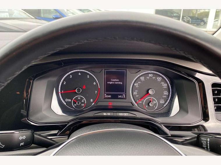 Digital clock, Driver alert system, Emergency call service, Multifunction computer plus, Power assisted speed sensitive steering, Speedo and rev counter, electronic odometer, trip, service interval display and fuel gauge, Start/stop system, Volkswagen connect, Warning buzzer and light for front seatbelts unfastened, Wireless app connect, Battery regeneration during braking, Galvanished body, DAB digital audio broadcast, Diversity antenna for FM reception, Black grille with chrome surround, Black radiator grille with chrome louvres, Body colour bumpers, Body colour door handles, Body colour rear spoiler, Body coloured side sills, Electric front windows, Front windscreen washers and wipers with 4 speed intermittent delay, Heated rear window with auto timer, High level 3rd brake light, Internally adjustable door mirrors, LED daytime running lights, LED rear number plate lights, Rear electric windows, Rear windscreen washer and wiper with interval delay, reverse activated, 2 bag hooks in luggage compartment, 2 front and 2 rear reading lights, 2 front cupholders and 12 V socket with cover, 3 rear head restraints, 4 grab handles, 60/40 split folding rear seat, Centre console storage with open storage compartment, Chrome interior door handles, Driver and front passenger seat height adjustment, Driver and front passenger sunvisors with illuminated vanity mirrors, Dust/pollen filter, Folding rear seat backrest, Front head restraints, Front seat backrest storage pockets, Gear lever gaiter in black trim surround, Glovebox, Handbrake grip button in chrome effect, Height/reach adjustable steering column, Instrument lighting, adjustable panel illumination, Interior light with delay, Isofix Preparation 2 Rear child seats, Leather gear knob and handbrake grip, Leather multifunction steering wheel, Luggage compartment cover, removable, Luggage compartment lighting, Luggage compartment with variable load floor, Storage compartment in front doors, Storage compartment in rear doors, Storage compartment under front seats, Sunglasses holder, 3 point height adj front seatbelts + pretensioners, 3x3 point rear seatbelts, ABS, Automatic post collision braking, Driver/front passenger airbag, Drivers and front passengers safety optimised head restraints, ESP with EDL + ASR, Front and rear passenger curtain airbags, Front disc brakes and rear drum brakes, Front passenger airbag deactivation, Front seat side impact airbags, HBA (Hydraulic Brake Assist), Hill hold control, Single tone horn, Tyre pressure monitoring system, Alarm with interior protection and deactivation via infotainment system, Electronic engine immobiliser, Remote central locking with 2 remote folding keys, Air vents in High gloss black, Limestone grey decorative inserts,