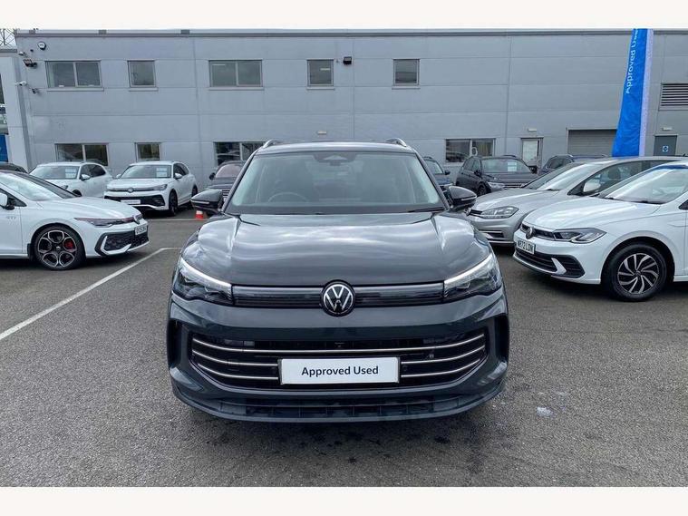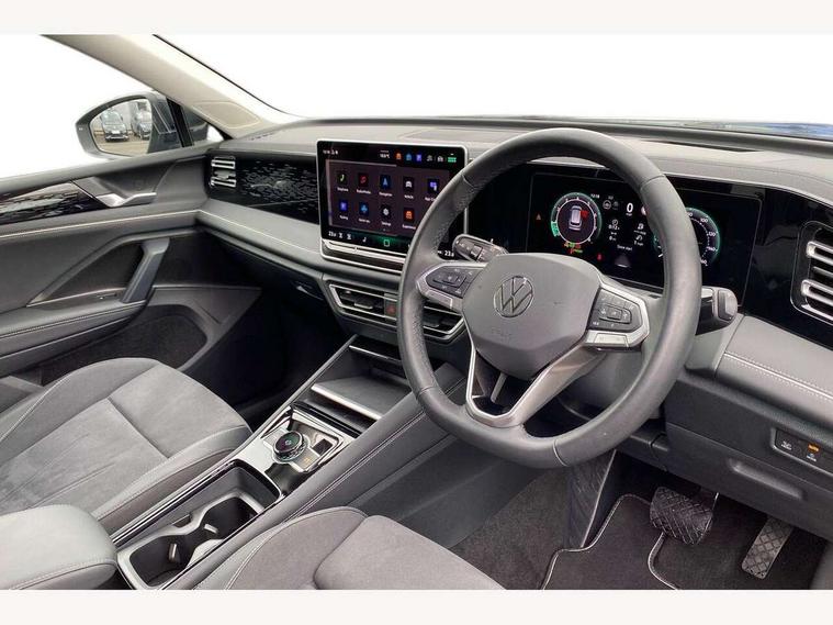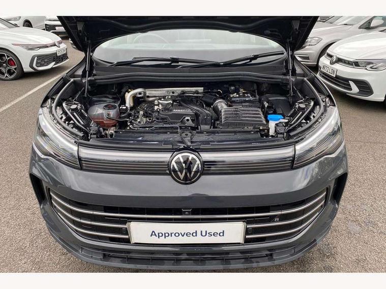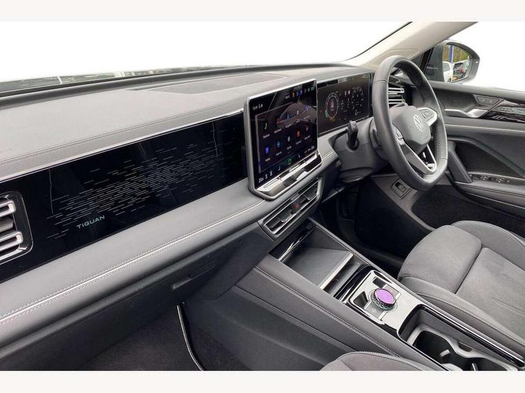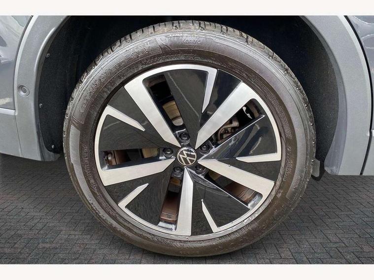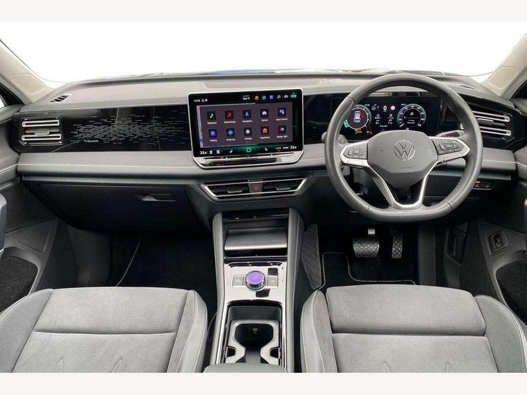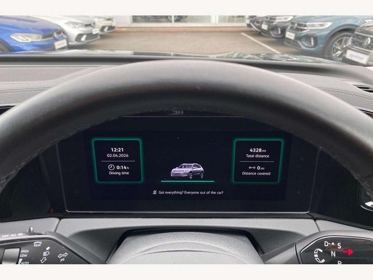 Adaptive cruise control (ACC), Advanced driver attention and drowsiness monitor, Bluetooth mobile phone interface, Comfort drive travel assist, lane keeping system, lane assist and emergency assist, Digital Cockpit Pro - 10.25" high resolution dash display screen with customisable menus and information, Dynamic road sign display, E-Sim card for online connectivity, eCall emergency call service, Front Assist - Autonomous emergency braking with pedestrian and cyclist monitoring, Lane change system, Side assist, Rear traffic alert and Exit warning system, Multifunction front facing camera, Oncoming vehicle braking when turning including swerve support, Park assistance plus with front and rear parking sensors, Power assisted steering with speed sensitive, Start/stop system with regenerative braking, Warning signal and warning light for front and rear seatbelts not fastened, Wireless App-Connect, Front wheel drive, Digital radio reception (DAB), Diversity antenna for FM reception, Ambient lighting with logo projection, Auto dimming interior rear view mirror, Automatic headlight control system, Body colored bumpers in R-Line style, Body coloured door handles, Body-coloured exterior mirror housings, Chrome moldings on the side windows, Coming/leaving home lighting function, Heat insulating glass in side and rear windows, Heated rear window, Heated windscreen washer jets, High level 3rd brake light, Illuminated door handle recesses, Illuminated lightline between headlamps, Laminated safety glass from B-pillar backwards 90% tinted, Laminated safety glass windshield, Rain sensor windscreen wipers, Rear fog light on one side, reversing light on both sides, Rear side wing doors, Rear wiper, Silver roof rails, 12V outlet in center console rear and in luggage compartment, 12V socket in centre console, 3 bench rear seats in 2nd row, Air care climatronic 3 zone air conditioning system with rear air conditioning control panel, Carpet mats, front and rear, Centre console with illuminated storage compartment with sliding cover and two drinks holders, Ceramique headlining, Chrome elements on the mirror switch and power window switches and door pulls, Door and side trim panel with leatherette insert, Door sill protectors, Front centre armrest, Interior ambient lighting with 30 colour options, ISOFIX anchors for child seats on outer rear seats and front passenger seat compatible with i-Size, Mechanical rear seat release, Power adjustable lumbar support in front, Rear bench seat, split folding, longitudinally movable and folding with load-through hatch and centre armrest, Safety optimised front head restraints, Single front passenger seat, Sports comfort seats in front, Sun visors with illuminated vanity mirrors, Three rear head restraints, Variable luggage compartment floor, Comfort package incl. Memory feature for Park assist and Safelock - Tiguan, Driver assistance package - Tiguan, 3 point seat belt for centre rear seats, 3 Point seat belts in front with pretensioners, 3 point seatbelts in outer rear with ECE label, Driver and front passenger airbag with front passenger airbag deactivation, Electronic parking brake with auto hold, Front and rear curtain airbags, Front and rear side airbags, Front centre airbag, Front disc brakes, Manual child proof rear door locks, Rear disc brakes, Two tone horn, Warning triangle, Anti theft wheel bolts, Decorative inserts Cross in dash and front door panels, Interior door handle in matte chrome, Soul instrument panel,