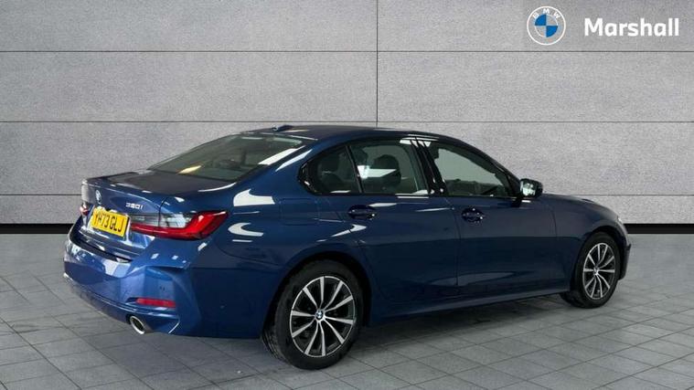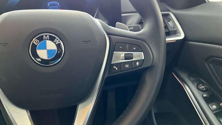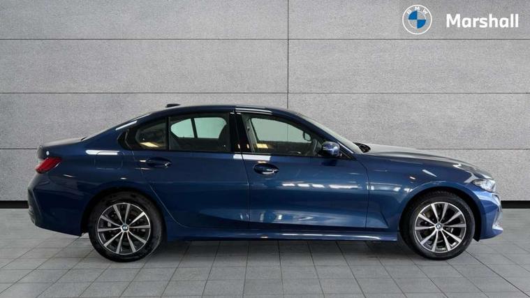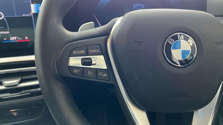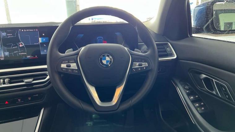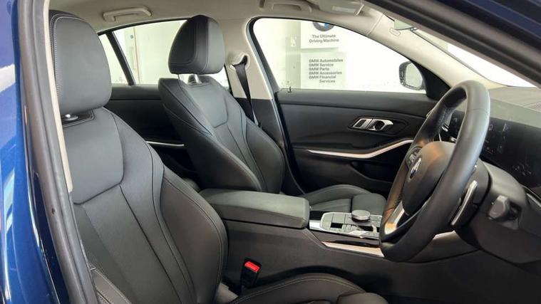 Active guard plus, Attentiveness assist, Automatic Start/stop button, BMW iDrive, BMW Teleservices, Condition based service, ConnectedDrive Services, Driving experience switch, Oil sensor for level and grade, PAS, Preparation for driver assistance, Shifting point display, Double joint spring strut front axle, Electronic differential lock control (EDLC), Fuel tank breather system, Sport automatic transmission with steering-wheel mounted gearshift paddles and launch control, Standard suspension, DAB tuner, 3rd brake light, Acoustic glazing, Automatic headlight beam throw control with load dependent regulating reaction, dynamic compensation of braking dive and acceleration squat, BMW emblem, engine compartment lid and tailgate, BMW kidney with 8 grille struts per segment in high gloss black and frame in high gloss chrome, Body colour roof fin, Door sill strips, Electric windows - front and rear, with open/close fingertip control, anti-trap facility and comfort closing, Follow me home headlight function, Front and rear bumper system with replaceable deformation elements, Front apron plastic in body colour, Fuel filler flap - right rear in body colour, Heated washer jets, High gloss shadow line exterior trim, Illuminated bow type door handles in body colour drivers side with door lock, Interior rear view electrochromatic mirror with automatic anti dazzle function, LED rear lights, Licence plate panel integrated into front bumper and tailgate, Matt black B-pillar finsher, Matt black window recess cover, Model designation on right side of tailgate, One piece front bumper cover including towing eye cover in body colour, Rain sensor with automatic headlight activation, Rear boot, Rear side wing doors, Reversing lights, Side frame decorative moulding black matt, Visible exhaust tailpipe finisher, Welcome lights in interior and door handle area, 12V power socket in front storage compartment, 2 front cupholder in centre console with clamping elements and matt black inlay, 3 seat bench in 2nd row, 3 zone automatic air conditioning, 40:20:40 split folding rear seat with loading system, Ambient inside door handle light, Ambient light design projected onto the left and right entering and exiting area, Ambient lighting front and rear with 9 selectable colours, Ambient storage compartment lighting in the centre console, Armrest integrated in front and rear door trim + front centre console armrest, BMW ID, Contour lighting in instrument panel and door trim panel, Cruise control operation in steering wheel, Folding rear centre armrest with 2 cupholders, Front and rear ambient footwell lighting, Front and rear door exit lighting (left / right), Front and rear headrests, Front and rear reading lights, Front and rear velour floor mats, Front sport seats, Heated front seats, Height adjustable mechanically and infinitely variable steering column, Illuminated armrest storage compartment, Illuminated glove compartment, Illuminated luggage compartment, Lashing eyelets in luggage compartment, Make-up mirror lights, Sensatec perforated upholstery, Single front passenger seat, Standard seat for driver and passenger with manual adjustment, Sunvisors with vanity mirrors and ticket pocket, Three spoke multifunction sport leather steering wheel, Toolkit located in luggage compartment, Connected pack professional - 3 Series Saloon/Touring, Interior and exterior mirror pack - 3 Series Touring/Saloon, Storage compartment pack - 3 Series Saloon/Touring, 3x3 point rear seatbelts, BMW emergency call, Child locks on rear doors, Crash sensor activating of airbags, Unlocking doors, hazard warning lights, interior light, safety battery terminal, Driver and front passenger with seat occupancy detection for driver's and passenger side, Driver and passenger side airbags, body protection at side and airbags deploy from seat backrests, Dynamic brake control, Dynamic stability control + (DSC+) - Anti-lock Braking System (ABS) with brake assist and cornering brake control + Automatic Stability Control (ASC), Dynamic Traction Control - DTC, Electric parking brake including automatic hold function and automatic release of the parking brake when driving off, Head airbags in 1st and 2nd row, head protection at side, curtain airbags open from headliner above 1st and 2nd row, Plastic fuel tank, Side impact protection, Tyre pressure monitoring with three level warning strategy, Ventilated front and rear disc brakes, Warning triangle and first aid kit, Alarm system, Centre lock switch, Closing system with central locking, Electronic vehicle immobiliser, High gloss black interior trim, 17" V spoke Obrit grey alloy wheels - Style 775 including BMW mobility kit,