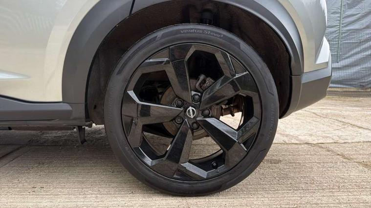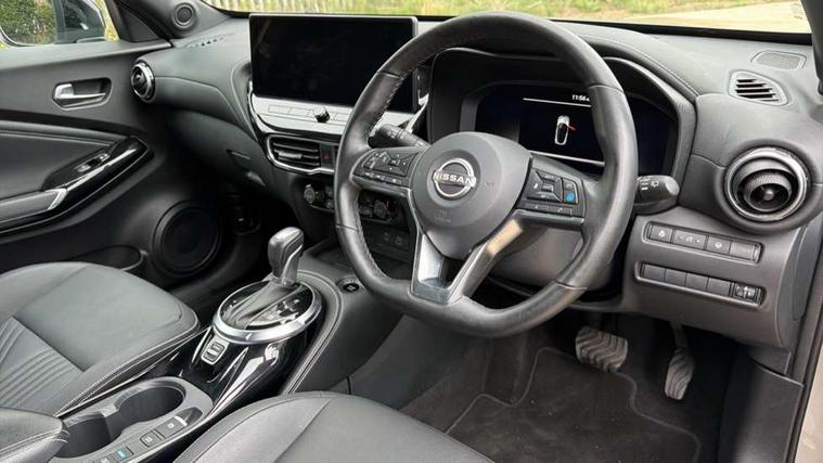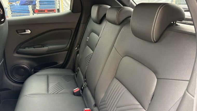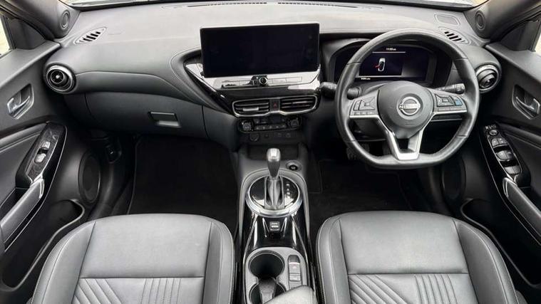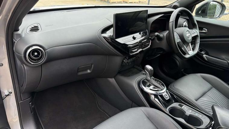 12.3" full colour TFT screen combimeter, Drive modes select (Eco, normal and sport), e-Pedal step, Emergency and breakdown call, EV mode switch, Front parking sensor, Intelligent driver alert system, Intelligent lane intervention, Lane departure warning system, Nissan connect 12.3" touch screen entertainment system, Nissan connect nav with TomTom traffic, Nissan connect services, Outside temperature sensor, Power Steering, Rear parking sensor, Stop/start button, Traffic sign recognition, Trip computer, Voice recognition, WiFi connectivity, Wireless Apple CarPlay and Google Android auto, Wireless Smartphone charger, 10 Bose speakers 6 speakers and 2 headrest speakers for driver/passenger seats, 2 X Rear console USB port, Bluetooth system, USB, Aux-in and 12V socket, Bose personal sound stage control, DAB Digital radio, Auto dimming frameless rear view mirror, Automatic hazard signal with emergency stop signal, Body colour door handles, Electrically adjustable door mirrors with integrated indicators, Follow me home headlights, Front and rear electric window with one touch driver window, Heated and auto folding door mirrors, High beam assist, LED 3rd brake light, LED daytime running lights, LED front fog lights, LED headlamps, LED rear fog lamp, LED rear lamps, One touch passenger window, Rain sensor windscreen wipers, Rear privacy glass, Rear side wing doors, Rear wiper, Roof spoiler, Shark fin roof antenna in solid Black, Three blink turn signal, 3 height adjustable rear headrests, 3 seat bench in 2nd row, 60/40 split folding rear seat, Automatic climate control, Card holder on driver sunvisor, Door ambient lighting, Driver seat back pocket, Driver side rear coat hanger, Driver/passenger sunvisors and vanity mirrors, Front and rear cabin lights, Front armrest, Front door pockets with bottle holders, Front head restraints, Front/rear passenger grab handles, Gear console ambient circle lighting, Height adjustable driver's seat, Internal chrome door handles, Leather gearshift knob, Luggage board, Luggage space lighting, Monoform sporty seats, Multifunction steering wheel, Passenger seat back pocket, Rear door bottle holders, Single front passenger seat, Smooth synthetic leather steering wheel, Synthetic leather kneepad, Synthetic leather upholstery, Telescopic steering wheel adjustment, Two cupholders in front centre console, Two rear isofix child seat anchorage points with top tether, Welcome light and console tray ambient lighting, Heat pack with height adjustable passenger seats - Juke, ProPilot pack - Juke Auto, ABS with EBD and brake assist, Active ride control, Active Trace Control, Driver and passenger airbags, Driver and passenger side airbags, Electric handbrake with auto hold function, Electronic Stability Programme (ESP), Front and rear curtain airbags, Height adjustable seatbelts, Hill start assist, Intelligent emergency braking with pedestrian and cyclist recognition, Rear door child safety locks, Seatbelt reminder for driver/front passenger and rear seats, Three 3 point rear seatbelts, Traction control, Tyre pressure monitoring system, VDC Dynamic Vehicle Control, Alarm, Immobiliser, Intelligent key and start push button with walk away lock and approach unlock functions, Remote central locking, 19" Alloy wheels, Tyre puncture repair kit,