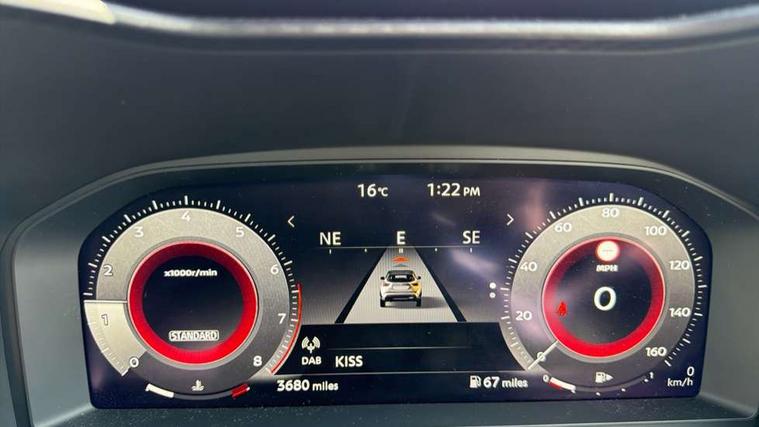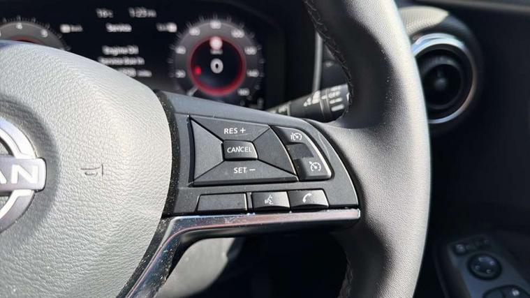 12.3" full colour TFT screen combimeter, Drive modes select (Eco, normal and sport), Emergency and breakdown call, Front parking sensor, Idle start/stop system, Intelligent driver alert system, Intelligent lane intervention, Lane departure warning system, Nissan connect 12.3" touch screen entertainment system, Nissan connect nav with TomTom traffic, Nissan connect services, Outside temperature sensor, Power Steering, Rear parking sensor, Stop/start button, Traffic sign recognition, Trip computer, Voice recognition, WiFi connectivity, Wireless Apple CarPlay and Google Android auto, Wireless Smartphone charger, 2 X Rear console USB port, 6 speakers, Bluetooth system, USB, Aux-in and 12V socket, DAB Digital radio, Auto dimming frameless rear view mirror, Automatic hazard signal with emergency stop signal, Body colour door handles, Electrically adjustable door mirrors with integrated indicators, Follow me home headlights, Front and rear electric window with one touch driver window, Heated and auto folding door mirrors, High beam assist, LED 3rd brake light, LED daytime running lights, LED headlamps, LED rear fog lamp, LED rear lamps, One touch passenger window, Rain sensor windscreen wipers, Rear privacy glass, Rear side wing doors, Rear wiper, Roof spoiler, Shark fin roof antenna in solid Black, Three blink turn signal, 3 height adjustable rear headrests, 3 seat bench in 2nd row, 60/40 split folding rear seat, Automatic climate control, Card holder on driver sunvisor, Cloth/Synthetic leather with melange fabric inserts, Driver side rear coat hanger, Driver/passenger sunvisors and vanity mirrors, Front and rear cabin lights, Front armrest, Front door pockets with bottle holders, Front head restraints, Front/rear passenger grab handles, Height adjustable driver's seat, Internal chrome door handles, Leather gearshift knob, Luggage board, Luggage space lighting, Monoform sporty seats, Multifunction steering wheel, Rear door bottle holders, Single front passenger seat, Smooth synthetic leather steering wheel, Synthetic leather kneepad, Telescopic steering wheel adjustment, Two cupholders in front centre console, Two rear isofix child seat anchorage points with top tether, Welcome light and console tray ambient lighting, ABS with EBD and brake assist, Active ride control, Active Trace Control, Driver and passenger airbags, Driver and passenger side airbags, Electric handbrake with auto hold function, Electronic Stability Programme (ESP), Front and rear curtain airbags, Height adjustable seatbelts, Hill start assist, Intelligent emergency braking with pedestrian and cyclist recognition, Rear door child safety locks, Seatbelt reminder for driver/front passenger and rear seats, Three 3 point rear seatbelts, Traction control, Tyre pressure monitoring system, VDC Dynamic Vehicle Control, Alarm, Immobiliser, Intelligent key and start push button with walk away lock and approach unlock functions, Remote central locking, 17" Alloy wheels, Tyre puncture repair kit,
