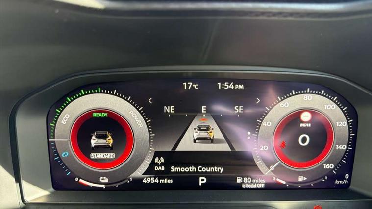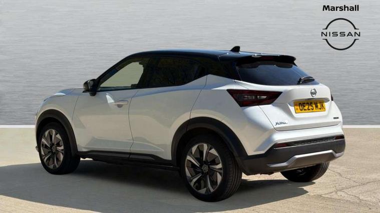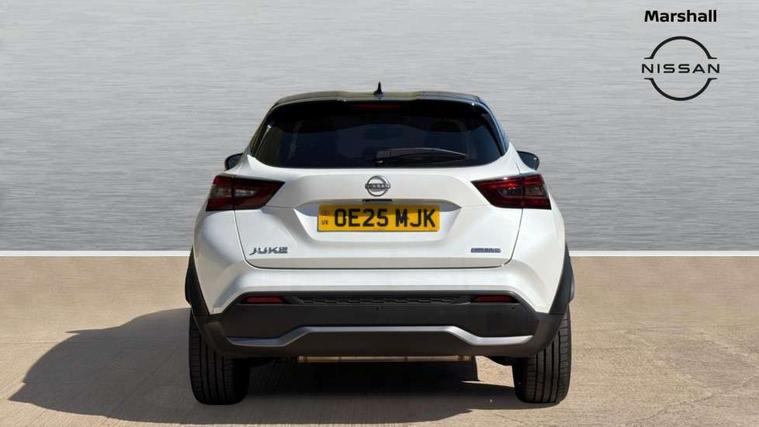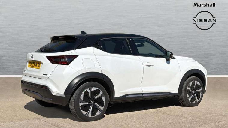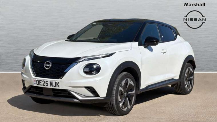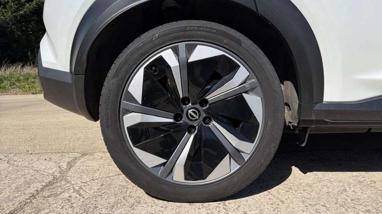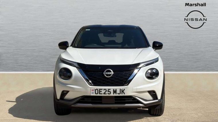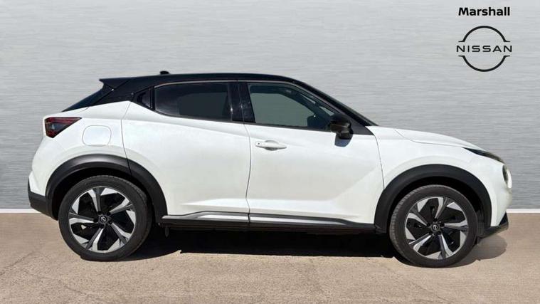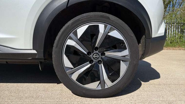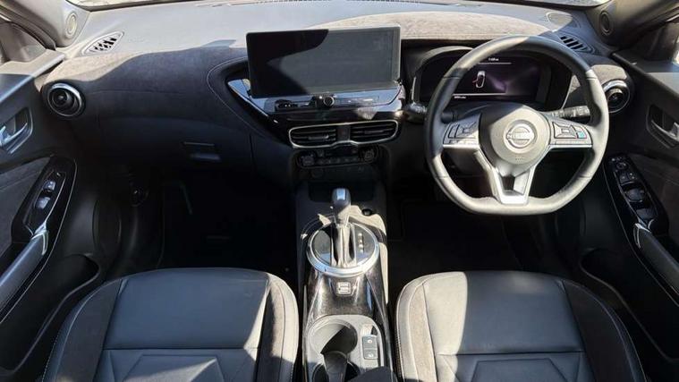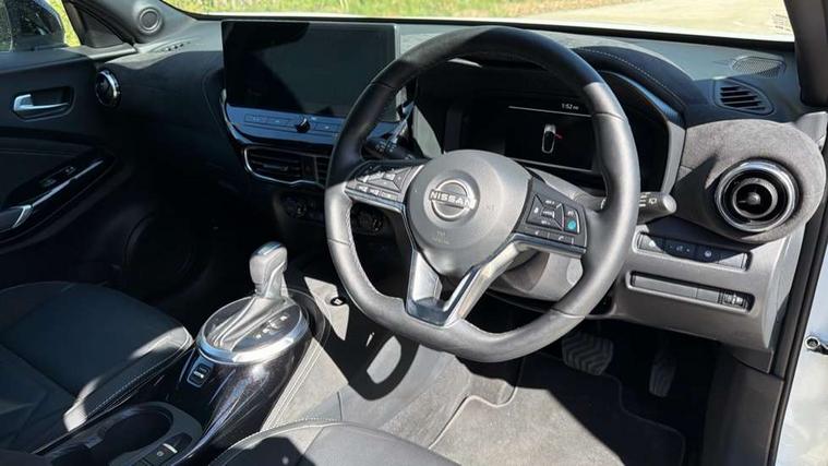12.3" full colour TFT screen combimeter, Drive modes select (Eco, normal and sport), e-Pedal step, Emergency and breakdown call, EV mode switch, Front parking sensor, Intelligent driver alert system, Intelligent lane intervention, Lane departure warning system, Nissan connect 12.3" touch screen entertainment system, Nissan connect nav with TomTom traffic, Nissan connect services, Outside temperature sensor, Power Steering, Rear parking sensor, Stop/start button, Traffic sign recognition, Trip computer, Voice recognition, WiFi connectivity, Wireless Apple CarPlay and Google Android auto, Wireless Smartphone charger, 10 Bose speakers 6 speakers and 2 headrest speakers for driver/passenger seats, 2 X Rear console USB port, Bluetooth system, USB, Aux-in and 12V socket, Bose personal sound stage control, DAB Digital radio, Auto dimming frameless rear view mirror, Automatic hazard signal with emergency stop signal, Body colour door handles, Electrically adjustable door mirrors with integrated indicators, Follow me home headlights, Front and rear electric window with one touch driver window, Heated and auto folding door mirrors, High beam assist, LED 3rd brake light, LED daytime running lights, LED front fog lights, LED headlamps, LED rear fog lamp, LED rear lamps, One touch passenger window, Rain sensor windscreen wipers, Rear privacy glass, Rear side wing doors, Rear wiper, Roof spoiler, Shark fin roof antenna in solid Black, Three blink turn signal, 3 height adjustable rear headrests, 3 seat bench in 2nd row, 60/40 split folding rear seat, Automatic climate control, Card holder on driver sunvisor, Door ambient lighting, Driver seat back pocket, Driver side rear coat hanger, Driver/passenger sunvisors and vanity mirrors, Front and rear cabin lights, Front armrest, Front door pockets with bottle holders, Front head restraints, Front/rear passenger grab handles, Gear console ambient circle lighting, Height adjustable driver's seat, Internal chrome door handles, Leather gearshift knob, Luggage board, Luggage space lighting, Monoform sporty seats, Multifunction steering wheel, Passenger seat back pocket, Rear door bottle holders, Single front passenger seat, Smooth synthetic leather steering wheel, Synthetic leather kneepad, Telescopic steering wheel adjustment, Two cupholders in front centre console, Two rear isofix child seat anchorage points with top tether, Welcome light and console tray ambient lighting, Heat pack with height adjustable passenger seats - Juke, Interior personalisation pack - Juke, ProPilot pack - Juke Auto, Satin grey exterior personalisation pack - Juke, ABS with EBD and brake assist, Active ride control, Active Trace Control, Driver and passenger airbags, Driver and passenger side airbags, Electric handbrake with auto hold function, Electronic Stability Programme (ESP), Front and rear curtain airbags, Height adjustable seatbelts, Hill start assist, Intelligent emergency braking with pedestrian and cyclist recognition, Rear door child safety locks, Seatbelt reminder for driver/front passenger and rear seats, Three 3 point rear seatbelts, Traction control, Tyre pressure monitoring system, VDC Dynamic Vehicle Control, Alarm, Immobiliser, Intelligent key and start push button with walk away lock and approach unlock functions, Remote central locking, 19" Aero alloy wheels, Tyre puncture repair kit,
