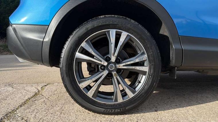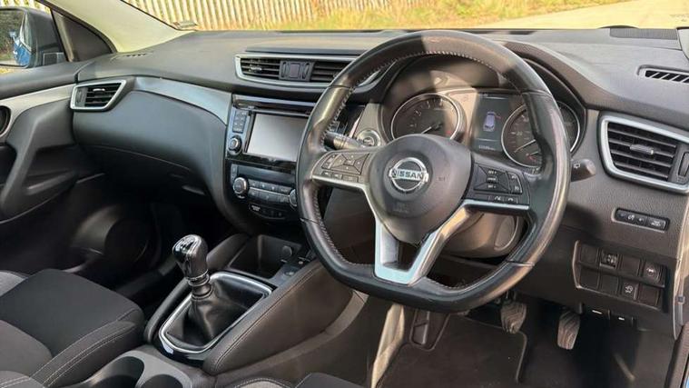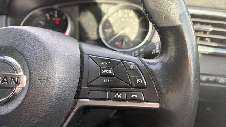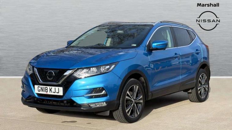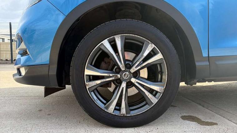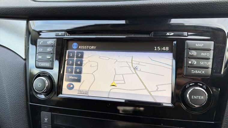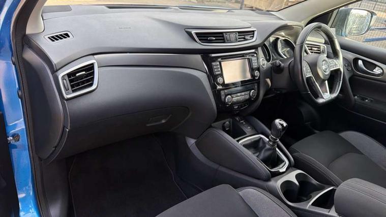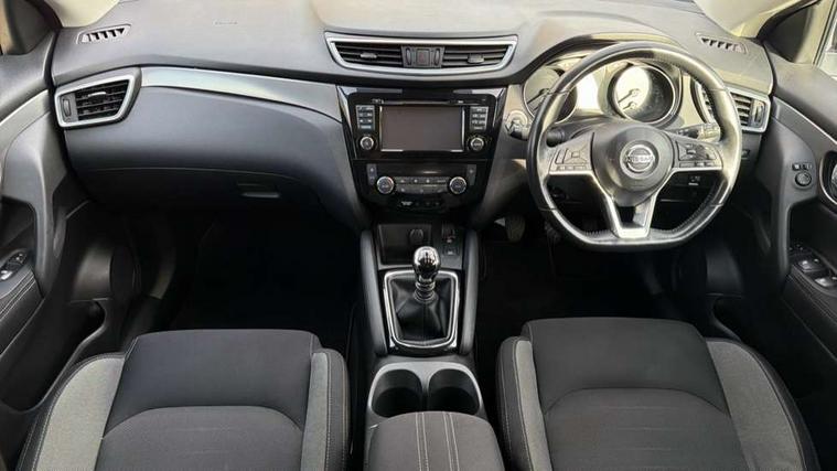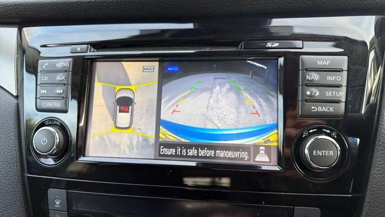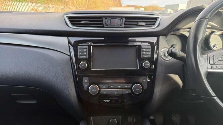 5" TFT driver information centre, Around View Monitor, Bluetooth phone integration system, Cruise control, Electric speed sensitive power steering, Front and rear parking sensors, Lane departure warning system, Nissan connect sat nav system, Outside temperature display, Push button starter, Rear view camera, Service interval indicator, Speed limiter, Traffic sign recognition, Trip computer, 'Shark fin' mobile antenna, 6 speakers, DAB Digital radio, Radio/CD, Smartphone apps, Steering wheel mounted audio controls, USB/aux input socket, Automatic headlamp activation, Body colour bumpers, Body colour door handles, Body colour door mirrors, Chrome window surround, Electric folding and heated door mirrors, High beam assist, Interior mirror with auto anti dazzle, LED indicators in door mirrors, Matt silver roof rails, One touch electric front/rear windows, Privacy glass, Rain sensor windscreen wipers, Rear roof spoiler, Rear wiper, 2 X front 12v power sockets, 60/40 split folding rear seat, Ambient interior lighting, Centre console with armrest, Chrome interior door handles, Cloth upholstery, Configurable luggage board system, Driver + front passenger lumbar support, Dual zone climate control, Front and rear door pockets with bottle holders, Front headrests, Front seat belt pre-tensioners with load limiters, Height adjustable driver's seat, Height adjustable passenger seat, Illuminated electric window switch, Isofix child seat preparation, Leather gearknob, Leather interior door handles, Leather knee rest, Leather steering wheel, Luggage compartment lighting, Parcel shelf, Pollen filter, Rake/reach adjustable steering wheel, Rear headrests, ABS, brake assist and EBD, Child locks on rear doors, Curtain airbags, Driver/front passenger airbag, Electronic parking brake, ESP + traction control, Forward emergency braking, Front passenger airbag deactivation, Height adjustable front seatbelts, Hill start assist, Seatbelt warning, Side airbags, Three 3 point rear seatbelts, Tyre pressure monitoring system, Alarm, Immobiliser, Intelligent Key, Remote central locking, Piano black interior trim, 18" Bi-colour alloy wheels, Tyre puncture repair kit,