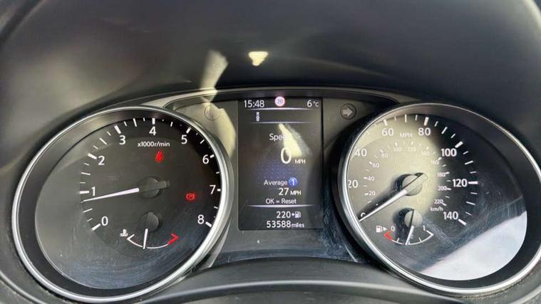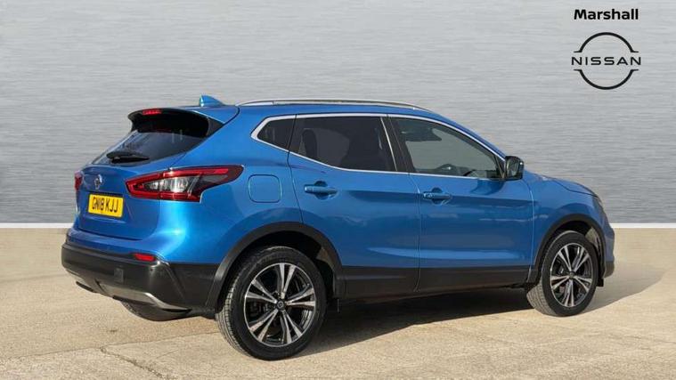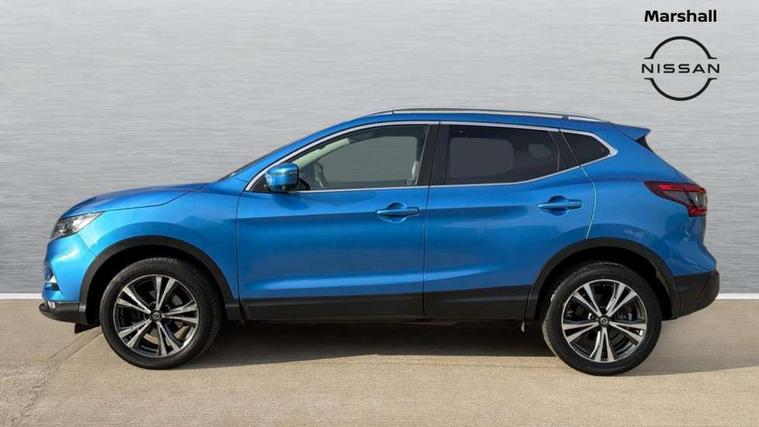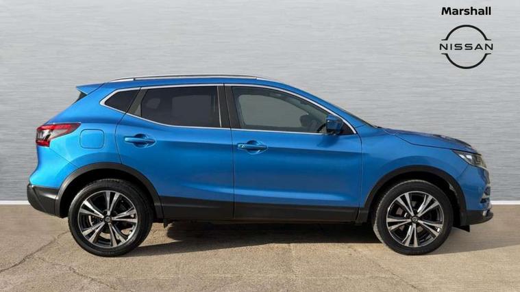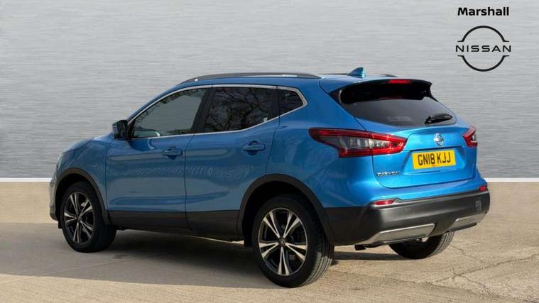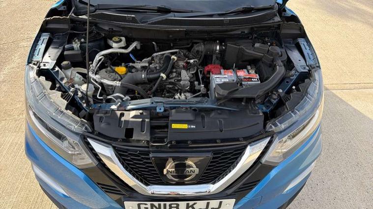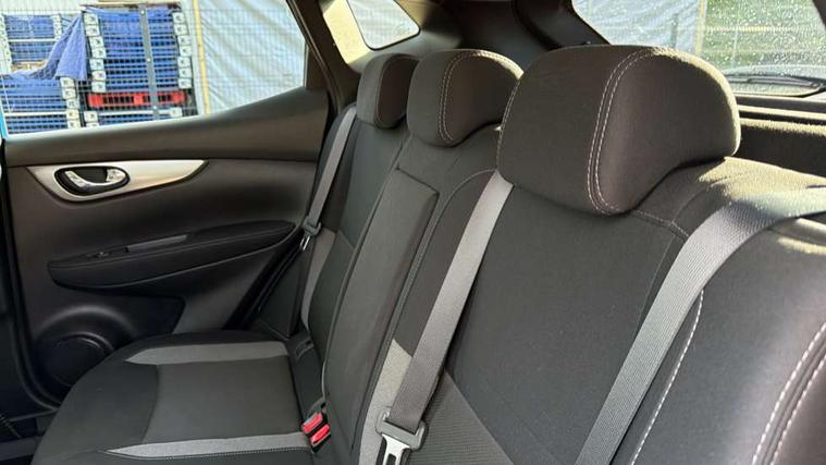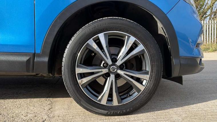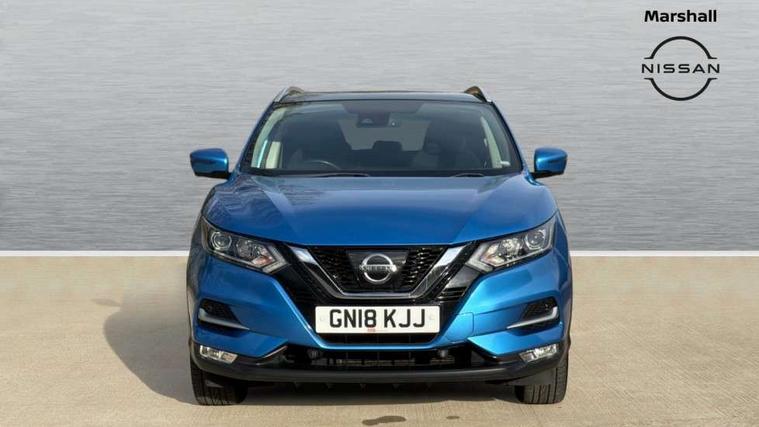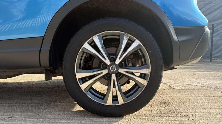 5" TFT driver information centre, Around View Monitor, Bluetooth phone integration system, Cruise control, Electric speed sensitive power steering, Front and rear parking sensors, Lane departure warning system, Nissan connect sat nav system, Outside temperature display, Push button starter, Rear view camera, Service interval indicator, Speed limiter, Traffic sign recognition, Trip computer, 'Shark fin' mobile antenna, 6 speakers, DAB Digital radio, Radio/CD, Smartphone apps, Steering wheel mounted audio controls, USB/aux input socket, Automatic headlamp activation, Body colour bumpers, Body colour door handles, Body colour door mirrors, Chrome window surround, Electric folding and heated door mirrors, High beam assist, Interior mirror with auto anti dazzle, LED indicators in door mirrors, Matt silver roof rails, One touch electric front/rear windows, Privacy glass, Rain sensor windscreen wipers, Rear roof spoiler, Rear wiper, 2 X front 12v power sockets, 60/40 split folding rear seat, Ambient interior lighting, Centre console with armrest, Chrome interior door handles, Cloth upholstery, Configurable luggage board system, Driver + front passenger lumbar support, Dual zone climate control, Front and rear door pockets with bottle holders, Front headrests, Front seat belt pre-tensioners with load limiters, Height adjustable driver's seat, Height adjustable passenger seat, Illuminated electric window switch, Isofix child seat preparation, Leather gearknob, Leather interior door handles, Leather knee rest, Leather steering wheel, Luggage compartment lighting, Parcel shelf, Pollen filter, Rake/reach adjustable steering wheel, Rear headrests, ABS, brake assist and EBD, Child locks on rear doors, Curtain airbags, Driver/front passenger airbag, Electronic parking brake, ESP + traction control, Forward emergency braking, Front passenger airbag deactivation, Height adjustable front seatbelts, Hill start assist, Seatbelt warning, Side airbags, Three 3 point rear seatbelts, Tyre pressure monitoring system, Alarm, Immobiliser, Intelligent Key, Remote central locking, Piano black interior trim, 18" Bi-colour alloy wheels, Tyre puncture repair kit,