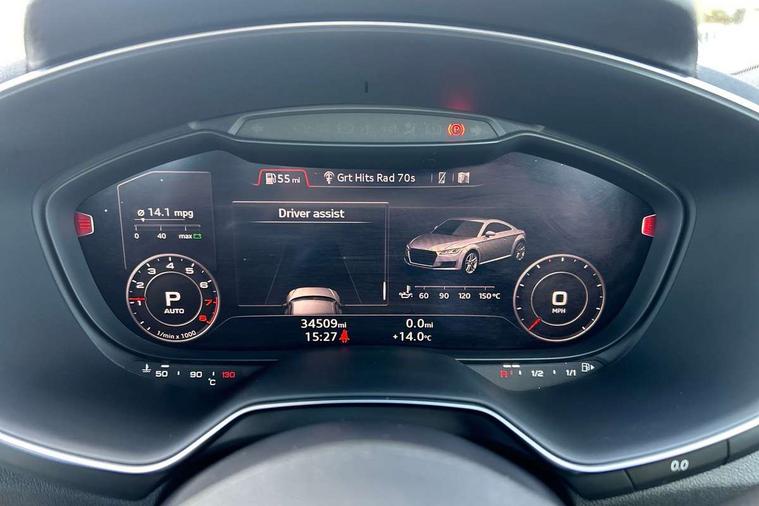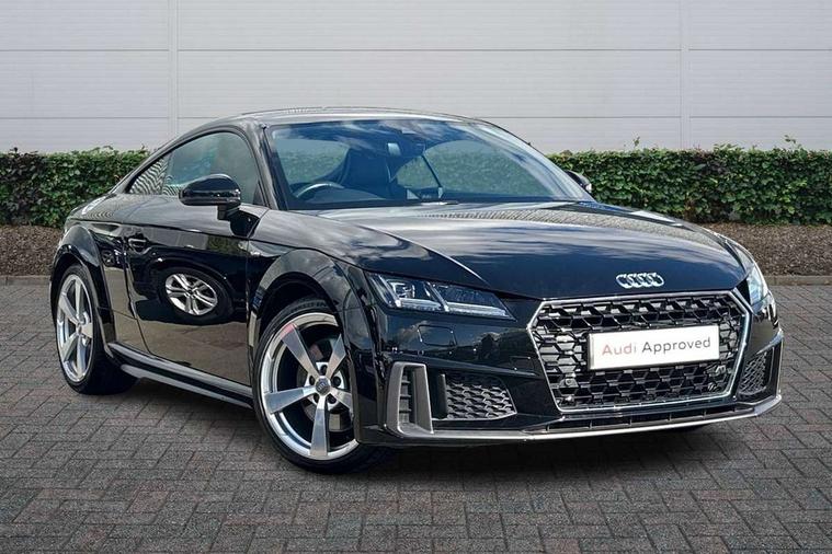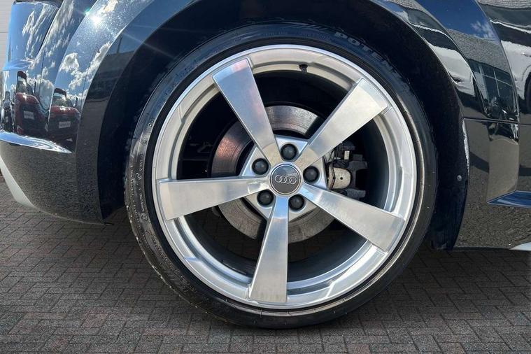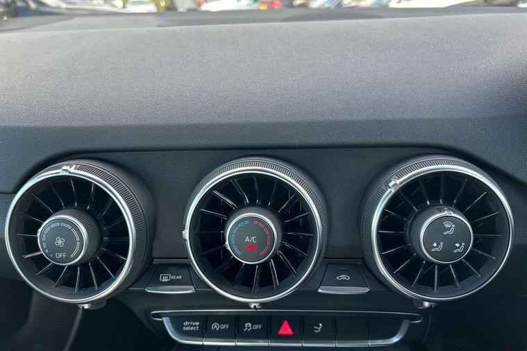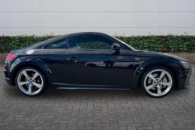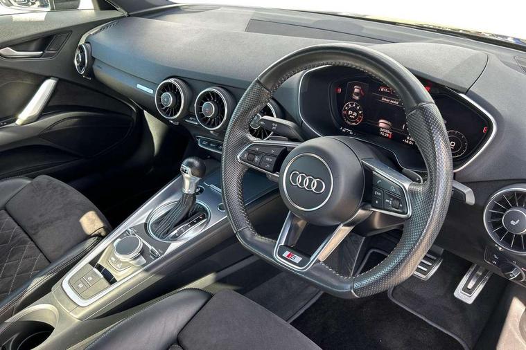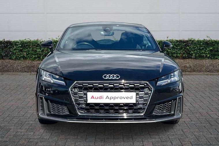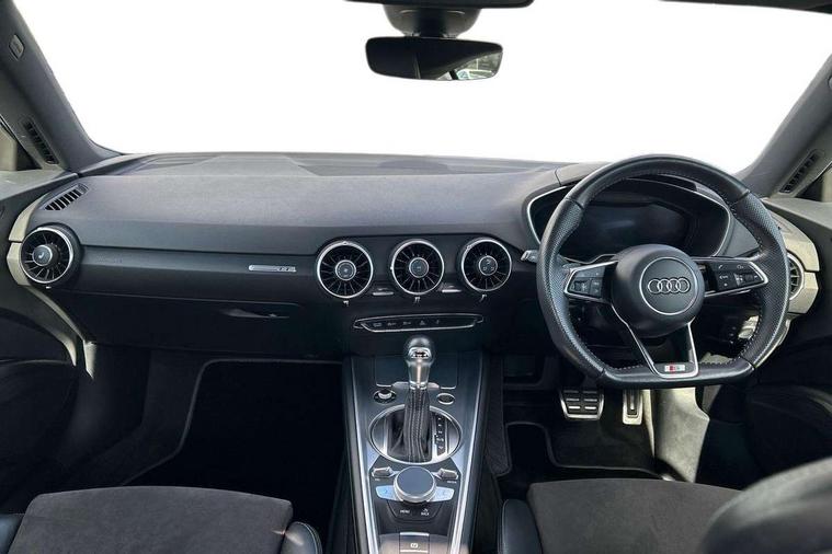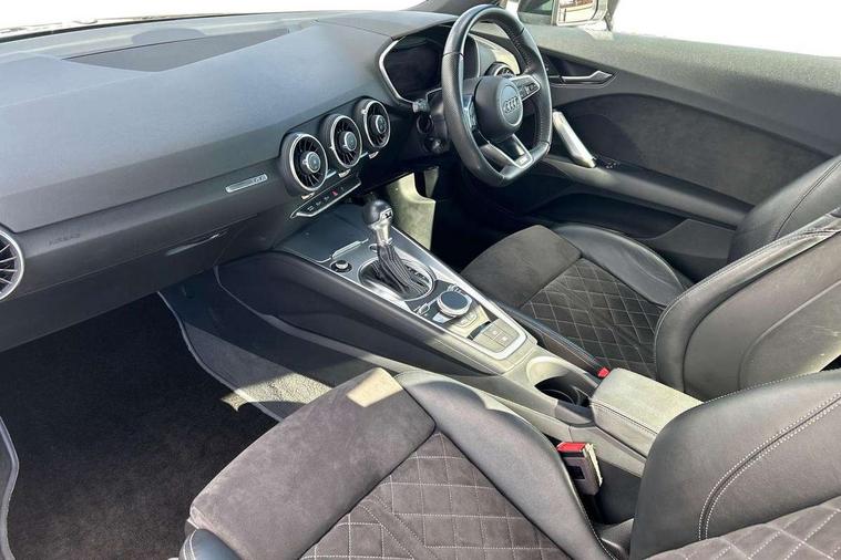 Audi active lane assist, Audi drive select with 4 Pre configured modes, Audi virtual cockpit - 12.3" high-resolution LCD display with fully customisable instrument cluster, Cruise control + speed limiter, MMI touch panel, Mobile phone preparation with bluetooth interface, Progressive power assisted steering, Service interval indicator, Start/Stop system with energy recuperation, TP memo, S line sports suspension, AM/FM radio, Audi music interface, Bluetooth audio streaming, DAB Digital radio, MMI Radio with CD player and SD/XC card slot, Auto dimming rear view mirror, Auto headlight range control, Body colour bumpers, Body colour electrically adjustable and heated door mirrors with built in LED side indicators, Dynamic rear indicators, Electric folding door mirrors, Electric front windows, Front fog lights, Green tinted heat insulating glass, Headlight wash system, High gloss black radiator grille, LED daytime running lights, LED headlights with LED rear lights + dynamic rear indicators, Light and rain sensors, Retractable rear boot spoiler, S line badges on front wings, S Line body styling, S Line front and rear bumpers, S line rear diffuser with platinum grey insert, S line sill plates, Sunband for windscreen, 12V socket, 3 spoke flat bottomed high multi-function leather sport steering wheel with gearshift paddles, 4 way electric lumbar support for driver and front passenger, Air conditioning, Black headlining, Door sill trims with S line logo, Extended aluminium look with stainless steel pedals, Front centre armrest, Front super sports seats, Heated front seats, Height adjustable driver's seat, Height adjustable front head restraints, Height/reach adjust steering wheel, ISOFIX child seat mounting for front passenger seat with airbag deactivation, Perforated leather gearknob, Rear head restraints, Rear top tether child seat ISOFIX attachment, S Line badge on steering wheel, Split folding rear seat, Top tether anchor plate for isofix child seat, Non smoking pack - TT/TT RS, 3 point front seat belts, ABS, ASR traction control, Brake energy regeneration, Curtain airbags, Driver and front passenger airbag with front passenger airbag deactivation, EDL traction control, Electromechanical parking brake, ESP, First aid kit, Front side airbags, Head airbags, Hill hold assist, Seatbelt warning, Tyre pressure warning, Warning triangle, Anti theft alarm, Anti theft wheel bolts, Immobiliser, Keyless Go, Remote central locking, Matt brushed aluminium inlays, Tool kit, Tyre repair kit,