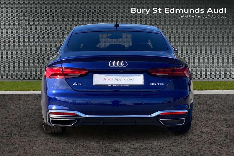 Audi connect safety and service (e-call), Audi connect with Amazon Alexa Integration, Audi drive select (Auto, Comfort, Dynamic, Efficiency and Individual), Audi parking system plus with front and rear sensors, Audi smartphone interface, Audi virtual cockpit - 12.3" full colour digital instrument cluster, vehicle/engine speed, Radio/media information+Driver assistance systems, Automatic start-stop system with coasting functionality and efficiency programme, Bluetooth interface, Electro-mechanical power steering, Email, calendar and text messages displayed via MMI, MMI nav+ with MMI touch - 10.1" high resolution MMI display, touch sensitive, 3D map, route/country info, dynamic route guide, personal route assist, Power operated tailgate, Rear view camera, Service interval indicator, Voice control system, Diesel particulate filter, Sports suspension lowered by 23mm, 8 passive loudspeakers, CD player, DAB digital radio reception, Two additional USB ports for rear passenger in rear centre console, Two SDXC card slots, Audi matrix LED headlights with LED rear lights + dynamic front and rear indicators, Auto dimming door mirrors, Auto dimming rear view mirror, Body colour bumpers, Body colour door handles, Body colour front spoiler lip, Body colour side sill trim, Body coloured door mirrors, Electric adjustable heated door mirrors, Electric folding door mirrors, Electric front windows, Front fog lights, Honeycomb structure radiator grille in grained matt black, Kerb-view function for passenger side, LED daytime running lights, LED side indicator lights integrated into door mirrors, LED third brake light, Matt aluminium silver tailpipe trim, Privacy glass, Rain and light sensors, Rear side wing doors, S line badges on front wings, S line front and rear bumpers with side skirts, S Line rear diffuser in matt anthracite black with trim strip in matt aluminium silver, Side air inlets in grained matt black with matt aluminium silver inlay, Variable front intermittent wipers, Windscreen with acoustic glazing, 3 seat bench in 2nd row, 3 spoke high multifunction leather sport steering wheel with paddle shfit and S badging perforated leather grips, 4 way electric lumbar support for driver and front passenger, 40/20/40 split folding 3 seater rear bench seat, Adjustable steering column, Black cloth headlining, Black perforated leather gearknob, Contrast stitching on seats, steering wheel and gear lever gaiter, Deluxe 3 zone electronic climate control, Front centre armrest, Front head restraints, Front/rear floor mats, Heated front seats, Illuminated door sill trim with S logo, ISOFIX child seat mounting and top tether, Luggage compartment mat, Manual seat adjustment, Rear centre armrest, Rear headrests, Single front passenger seat, Stainless steel pedals, Sunvisors with vanity mirrors, LED interior light pack - A5/RS5, 3x3 point rear seatbelts, 6 airbags - Driver, front passenger, curtain and side airbags, Electromechanical parking brake, Electronic Stabilisation Control (ESC) including ABS, ASR and EDL, Front passenger airbag deactivation, Height adjustable front seatbelts, Hill hold assist, Manual child lock in rear doors, Multi collision brake assist, Pop-up bonnet for pedestrian protection, Pre sense city, Seatbelt monitoring, Tyre pressure warning, Variable restraint system, Warning triangle and first aid kit, Anti theft alarm system, Anti theft wheel bolts, Immobiliser, Keyless Go, Remote central locking, Matt brushed aluminium inlays, Tool kit, Tyre repair kit,