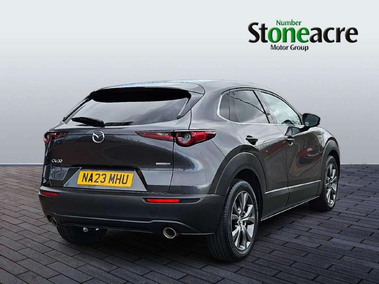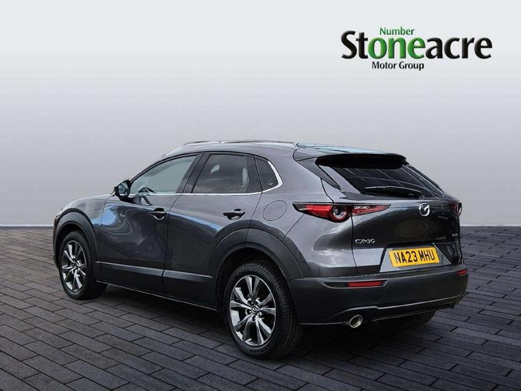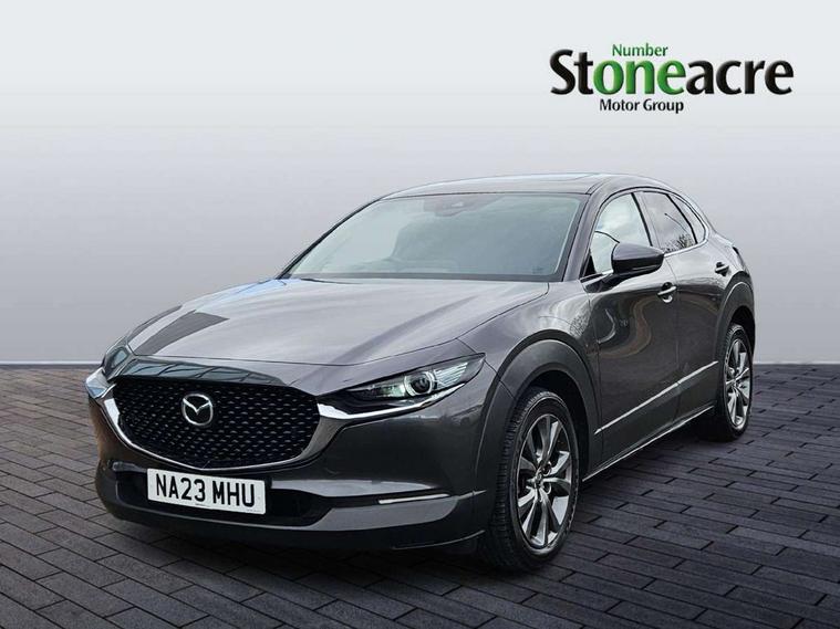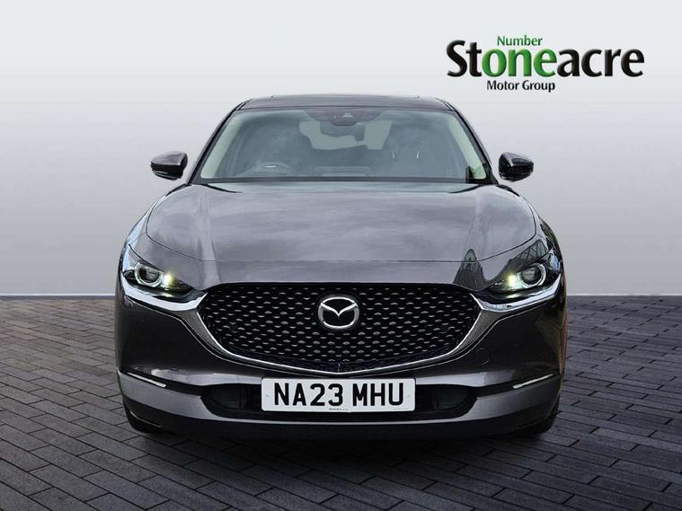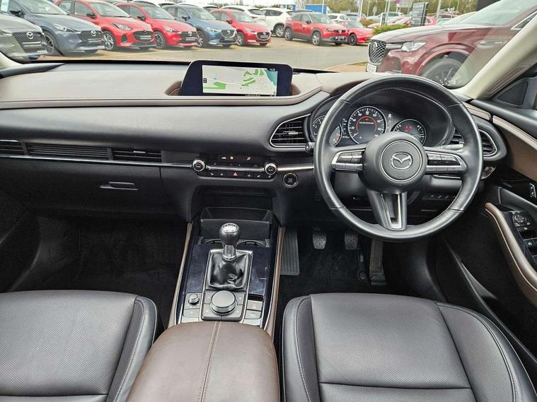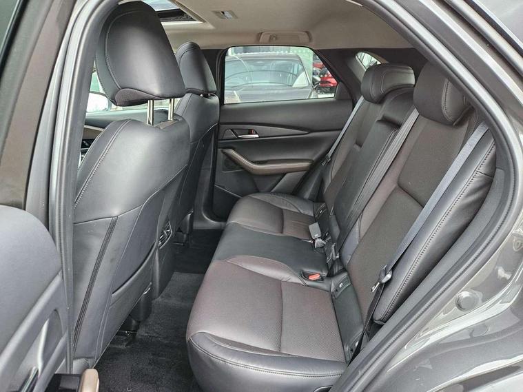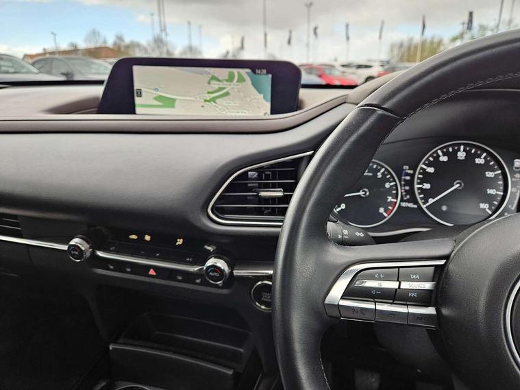7" TFT Colour driver instrument panel display, 8.8" Colour centre touch screen display with Mazda Connect infotainment, Adaptive cruise control (Mazda radar cruise control), Apple car play/Android Auto, Blind spot monitoring with rear cross traffic alert, Driver attention alert system, E-call with GPS, Emergency stop signalling system, Engine start/stop button, Front and rear parking sensors, Integrated bluetooth, Integrated Mazda navigation system, Intelligent speed assist, Lane keep assist system (LAS) with Lane departure warning system (LDWS), Mazda connected services, PAS, Power lift gate, Reversing camera, Service indicator, Tailgate, Traffic sign recognition, Trip computer, Windscreen projected colour active driving display (HUD), i-stop, 2 USB charging ports in front inner central armrest, AM/FM and DAB radio, Bose surround sound system with 12 Speaker, Bose center point, Bass match and audio pilot technology, Multimedia Commander including separate volume dial, Steering wheel mounted audio/bluetooth controls, Adaptive LED Headlights, Auto dimming driver's door mirror, Auto headlight levelling, B-pillar and C-pillar garnishes in piano black finish, Body coloured, electrically adjustable, heated auto power folding door mirrors with integrated indicators, Chrome finish signature wing in front grille, Coming/leaving home lighting function, Door mirrors with adjustable memory and tilt-down function when reversing, Dual chrome exhaust, Dusk sensing headlights, Electric front/rear windows with one touch auto up/down, Frameless auto dimming interior rear view mirror, Front kodo turn signal, Gloss black front grille, Gloss black rear roof spoiler, High beam assist, LED signature daytime running lights, Privacy glass (rear side windows and rear screen), Rain sensing front wipers with adjustable speed and intermittent wipe, Rear fog lights, Rear side wing doors, Rear wiper, Signature LED rear combination lights, Third brake light, 12V power outlet in centre console, 3 seat bench in 2nd row, 60/40 split fold down rear seats, Chrome horn pad ring, Chrome interior trim accents with steering wheel centre bezel, surround of engine start / stop button and glove box handle, Dashboard, door cards and front centre armrest in rich brown leather, Driver and front passenger visors with covered vanity mirror and driver ticket holder, Driver's seat, power tilt, slide, recline, height and lumbar adjustment, Driver, front passenger and two rear door storage, Driver, Front passenger and two rear grab handles with coathooks, Dual zone climate control air conditioning with rear air vents, Folding rear centre armrest with two cup holders, Front and rear (x3) head restraints, Front and rear LED lighting, Front armrest, Front centre storage with two cupholders with lid, Front passenger seatback pockets, Front passengers seat manual slide, recline and height adjustment, Gear shift indicator, Glovebox illumination, Heated front seats with 3 stage setting, Heated steering wheel, ISOFIX child seat anchorage points attached on outer rear seats, Leather upholstery with interior accents, Leather wrapped gear shift knob, Leather wrapped steering wheel with telescopic and tilt adjustment, LED luggage compartment lighting, Light roof headlining and pillars, Rear armrest inner material in cloth, Roof mounted sunglasses holder, Single front passenger seat, 3 point ELR front seat belts x2 with pretensioners, 3 point ELR rear seat belts, Anti-lock braking system (ABS), Drivers knee airbag, DSC - Dynamic Stability Control, Electronic parking brake with auto disengage function and auto hold function, Front and rear curtain airbags, Front dual stage driver and single stage front passenger airbags, Front passenger airbag cut-off switch, Front side airbags, Front smart city brake support, G-Vectoring control plus, Hill launch assist, Manual child lock in rear doors, Mild Hybrid system with regenerative braking, Seatbelt reminder for driver/front passenger and rear seats, Traction control system (TCS), Tyre pressure monitoring system (TPMS), Remote central locking with deadlocking and automatic door lock when driving, Smart keyless entry, Thatcham accredited alarm and immobiliser, Dark vinyl door panel inserts, 18" Bright alloy wheels, Emergency tyre repair kit,