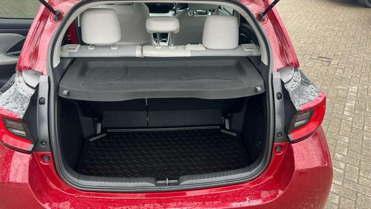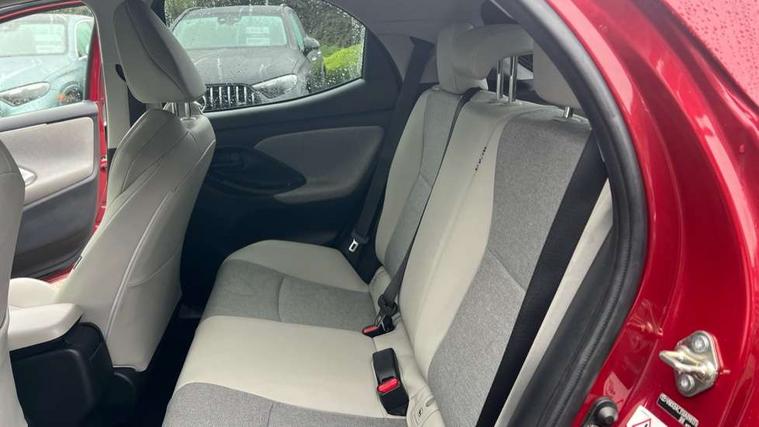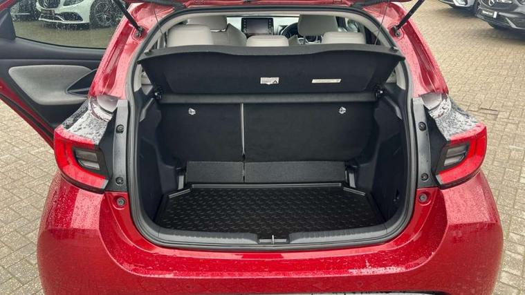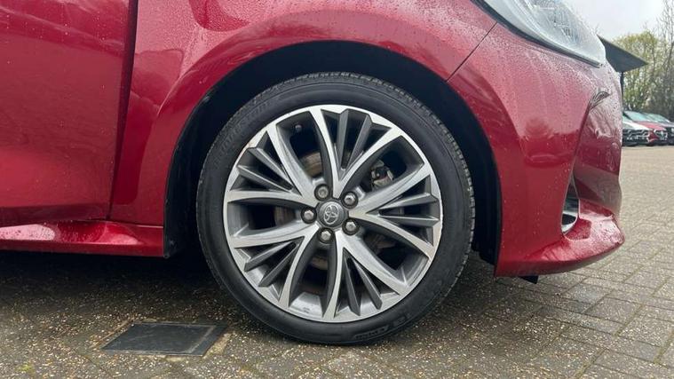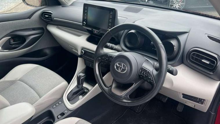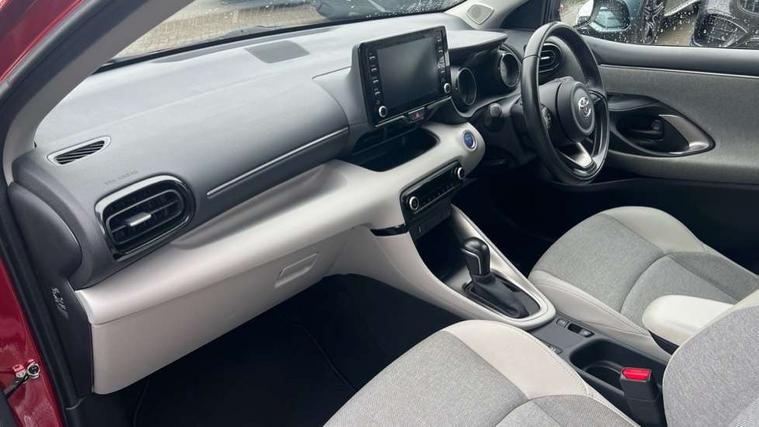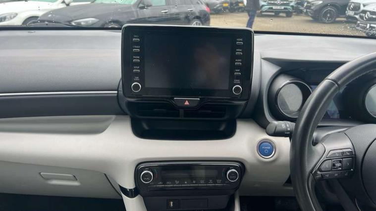 Adaptive cruise control, Adjustable speed limit with speed warning, Blind spot monitoring, Bluetooth connectivity, Colour binocular inspired displays with digital speedometer, E-call, Electric power steering, Front and rear parking sensors and intelligent clearance sonar with automatic braking, Hybrid energy display, Multi information display switches on steering wheel, Reversing camera, Smartphone integration with Apple CarPlay and Android auto, Vehicle Stability Control (VSC), 6 speakers, 8" Multimedia display touch screen, Toyota Touch 2 with DAB, USB connection, Acoustic windscreen glass, Auto windscreen wipers, Automatic headlights, Automatically retractable door mirrors, Body coloured door mirrors, Electric adjustable heated door mirrors, Follow me home headlights, Front auto power windows with anti jam protection, Full LED rear lights, LED daytime running lights, LED front fog lights, LED Headlights, LED High mounted stop lamp, Painted front grille, Rear auto power windows with anti jam protection, Rear privacy glass, Rear spoiler, Satin lower front grille, Shark fin antenna, Turning signal integrated indicators in door mirrors, 3 adjustable rear headrests, 3 spoke leather steering wheel, 60/40 split folding rear seat, Adjustbale boot height, Coat hooks in rear grab handles, Cup holders (2 front & door), Data Communication Module (DCM) connected services, Dual zone automatic air conditioning, Fabric seat with partial synthetic leather upholstery, Front armrest, Front sport seats, Glovebox, Height adjustable driver's seat, Height adjustable passenger seat, Isofix seat fixing, Leather gearshift, Map pockets on the backs of the front seats, Pollen filter, Shopping bag hooks, Tilt/telescopic steering column, 3 point seatbelts on all rear seats, ABS+EBD+Brake assist, Active headrests, Electronic parking brake, Emergency brake light system (EBS), Front passenger airbag on/off switch, Front seatbelt reminder, Hill start assist control (HAC), Rear child proof door locks, Rear seat belt reminder, Supplemental Restraint System (SRS) 8 airbags: Driver & passenger's airbags, dual side curtain airbags, side impact airbags, front centre airbag, Toyota Safety Sense 2, Precollison + Night time Pedestrian & Cyclist Detection, Lane Trace Assist, Auto High Beam, Intelligent ACC & Road Sign Assist, Tyre pressure warning system, Alarm/immobiliser, Keyless smart entry with push button start, Remote powered central double locking doors, Satin chrome interior styling, Soft touch instrument panel, Space saver spare wheel,