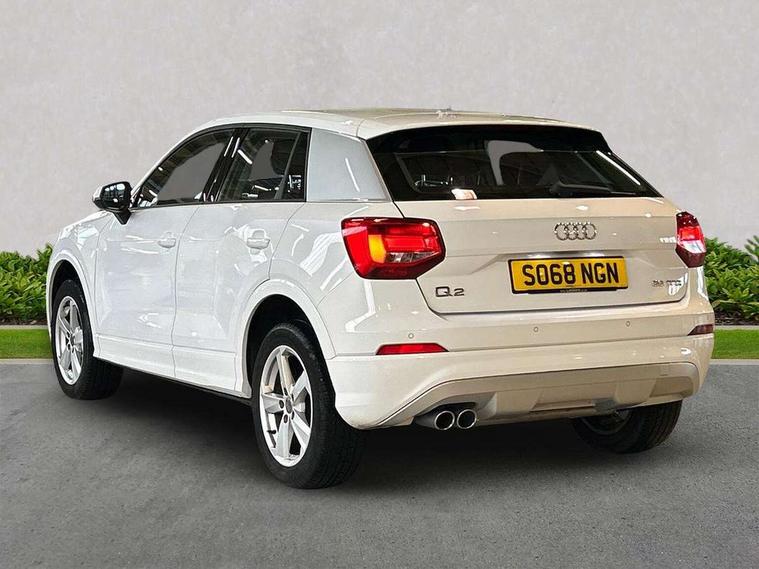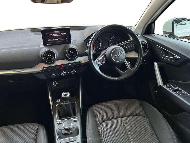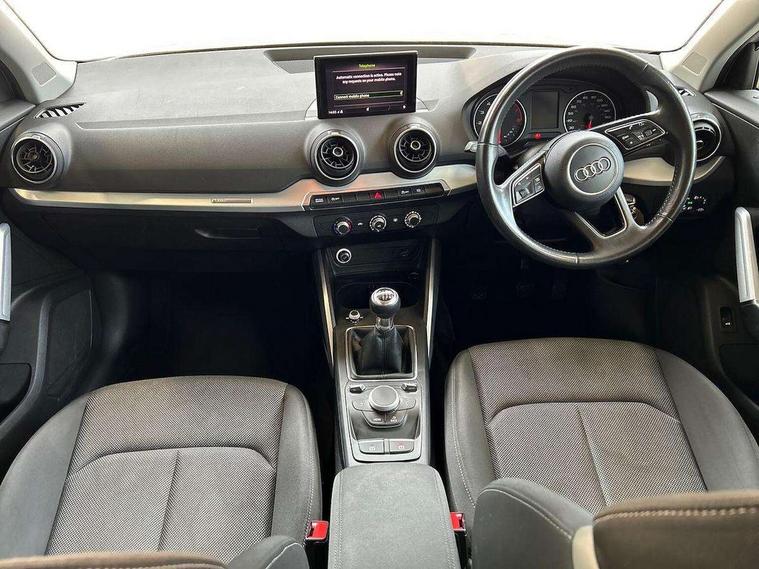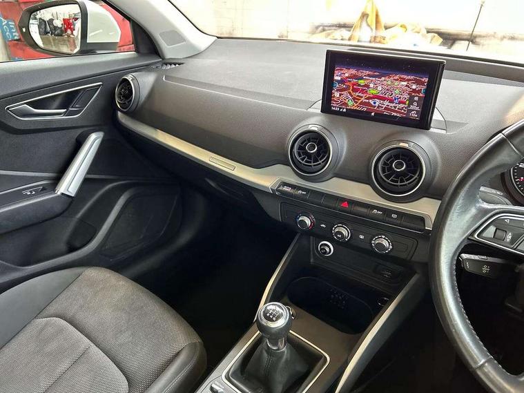 Audi drive select, Audi smartphone interface, Automatic start/stop system with recuperation, Bluetooth interface includes bluetooth audio streaming, Cruise control, MMI - Multi Media Interface control system, MMI SD card integrated nav with 3D map display, dynamic route guidance with TMC, MMI search, natural voice recognition and myAudi special destinations, Power operated tailgate, Progressive steering, Service interval indicator, Dynamic suspension, 2 x SDXC card reader, Audi music interface - apple iPod, apple iPhone, USB storage media, compatible MP3 players, 2 x USB charging points and 1 x Aux-in, CD Drive, DAB digital radio and AM/FM radio, MMI radio plus with 7" colour MMI screen and MMI controller, Air inlet in manhattan grey metallic, Black window trims, Body colour door mirrors, Chrome exhaust tailpipe, Electrically adjustable and heated door mirrors with integrated LED side indicators, Front and rear electric windows, Front underbody guard and rear diffuser trim in selenite silver, Front windscreen with grey tinted sunband, Halogen headlights including headlight range adjustment, High gloss black radiator grille, Interior mirror, LED indicator lights, Manual folding door mirrors, Rain and light sensors, Rear wiper, Side skirts in manhattan grey, Wheel arch trims in manhattan grey, 60/40 split folding rear seat bench, Door sill trims with aluminium inlay, Electronically operated child locks, Front centre armrest, Front headrests, Front sports seats, Front/rear floor mats, Height/reach adjust steering wheel, ISOFIX child seat mounting for front passenger with airbag deactivation and outer rear seat including top tether attachment point for outer rear seats, Manual seat adjustment including seat height adjustment for front seats, Storage compartments - Glovebox, cupholder compartment in centre console, storage compartment in rear centre console, front and rear door pockets, Three rear headrests, Titanium grey cloth headlining, Non smoking pack - Q2, 3x3 point rear seatbelts, 6 airbags - Front, curtain and front side airbags, Electromechanical parking brake, Electronic stabilisation control including ABS, ASR and EDL, Extended and proactive pedestrian protection, Hill hold assist, Multi collision brake assist, Pre-sense front with pedestrian recognition, Seatbelt monitoring, Tyre pressure warning light, Warning triangle and first aid kit, Anti theft alarm, Anti theft wheel bolts, Central locking system with remote control key, Aluminium interior element,