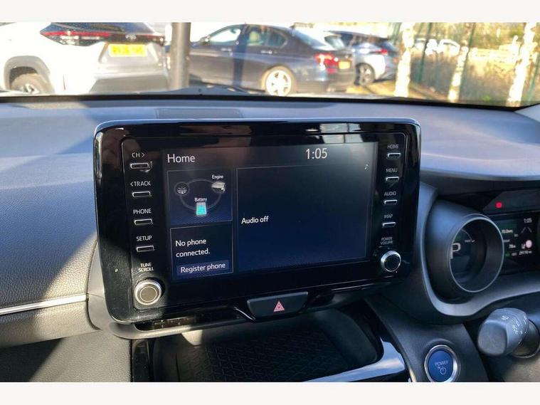 4.2" multi information display, 8" Toyota touch 2 multimedia system with Smartphone integration with Apple CarPlay and Android auto, Adjustable speed limiter, Bluetooth connectivity, Digital speedometer, Driver attention alert system, eCall emergency system, Electric power steering, Full range intelligent adaptive cruise control, Hybrid system indicator, Key reminder warning, Lane trace assist, Multimedia, audio, telephone and voice recognition switches on steering wheel, My T Connected services, Pre-collision system enhanced with emergency steering assist, Reversing camera, Road sign assist - RSA, Steering assisted vehicle stability control, 6 speakers, DAB Digital radio, USB connection, 3rd brake light, Acoustic windscreen glass, Anti-jam protection on power windows, Auto high beam [AHB] with on/off switch, Automatic headlights, Black lower front grille, Black Shark-fin antenna, Black upper front grille, Black wheel arch mouldings, Body colour door handles, Body colour front bumper, Body colour rear bumper, Electric adjustable heated door mirrors, Follow me home headlights, Front and rear electric windows with auto up/down function, Front intermittent wipers, Halogen projector headlights, Headlight cut off reminder, Indicators integrated on door mirrors, Intermittent rear wiper, LED daytime running lights, LED Indicators, Manual headlight levelling, Manually retractable door mirrors, Noise reduction layer on windscreen, Rain sensor, Rear side wing doors, Rear spoiler, Rear window defogger, 12v power outlet - front, 2x Rear coat hooks, 3 seat bench in 2nd row, 3 spoke leather steering wheel, 60/40 split folding rear seat, Adjustable speed limiter switch on steering wheel, Auto air conditioning, Boot light, Central armrest, Driver and front passenger personal lights, Fabric door trim, Fabric upholstery, Front console box, Front cup holders, Front head restraints, Glovebox, Grey roof lining, Height adjustable driver's seat, Height adjustable front passenger seat, ISOFIX child restraint system, Lane departure alert switch on steering control, Leather gearshift, Manual telescopic and tilting steering wheel, Mirror on driver and passenger sun visor, Pollen air filter, Rear head restraints, Single front passenger seat, Soft tonneau cover, 3x3 point rear seat belts, ABS+EBD+Brake assist, Driver and passenger central airbags, Driver and passenger front airbags, Driver and passenger side airbags, Electronic parking brake, Emergency brake light system (EBS), Front seat belt reminder, Hill start assist control (HAC), Passenger airbag on/off switch, Pre-collision system with pedestrian and cyclist detection, Rear door child safety locks, Rear passenger side airbags, Rear seat belt reminder, Traction control, Tyre pressure warning system, Immobiliser, Intrusion alarm, Keyless smart entry with push button start, Power door locks, Power passenger window lock, Remote door lock, 16" 10 spoke alloy wheels, Tyre repair kit,