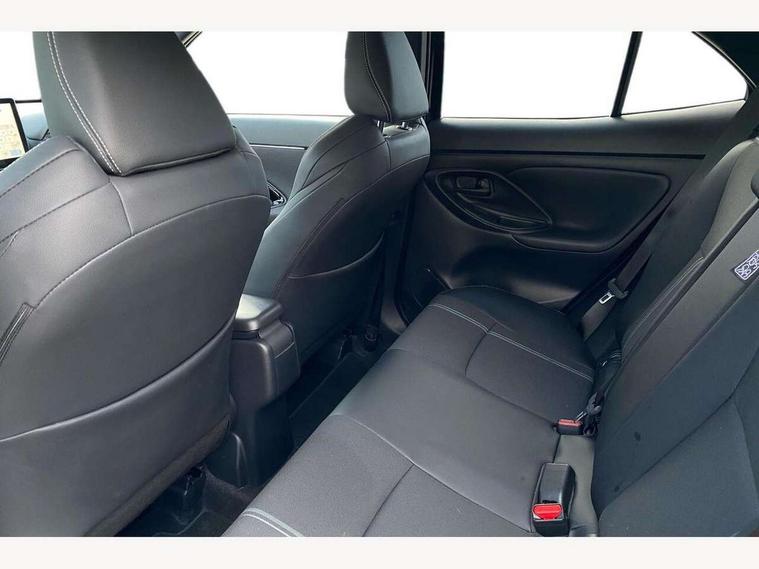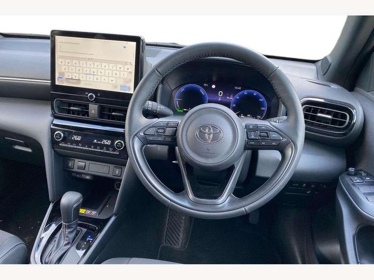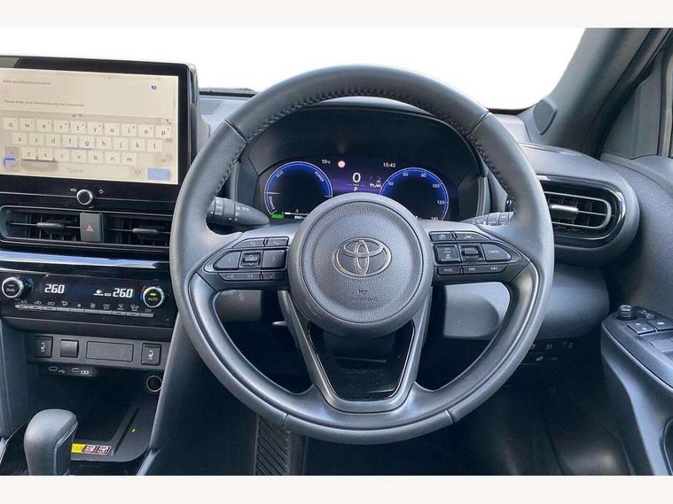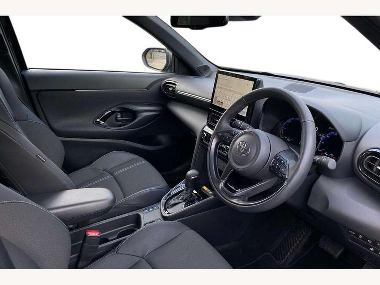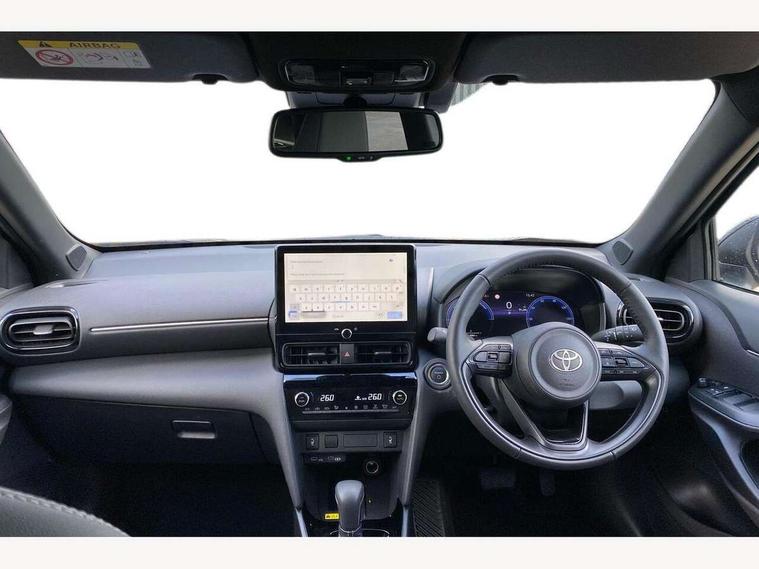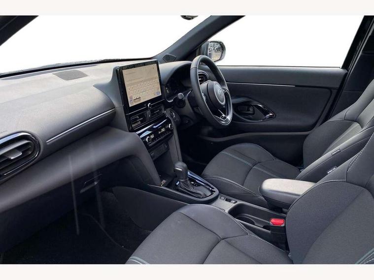10.5" Multimedia display screen, 10.5" Toyota smart connect+ with navi multimedia system with wireless Smartphone integration incl Apple CarPlay, 360 degree panoramic view monitor, 7" Multi information display screen, Adaptive cruise control, multi info switches on steering wheel, Adjustable speed limiter, Advanced parking assist, Blind spot monitoring, Bluetooth connectivity, Color multi-information display, Digital speedometer, Digital tachometer, Drive mode selector, Driver attention alert system, Dynamic guide lines on reversing camera, eCall emergency system, Electric power steering, Emergency driving stop system, Full range intelligent adaptive cruise control, Hybrid system indicator, Intelligent front and rear parking sensors with clearance sonar and automatic braking, Intersection turn assist, Key reminder warning, Lane change assist, Lane trace assist, My T Connected services, Power tailgate, Pre-collision system enhanced with emergency steering assist, Rear cross traffic alert, Remote boot door release in cabin, Road sign assist - RSA, Safe exit assist, Tailgate, Telephone switch on steering wheel, Wireless Mobile Phone Charger, Steering assisted vehicle stability control, 6 speakers, DAB Digital radio, Front USB Type-C connector, Front USB-C device charger, Acoustic windscreen glass, Anti-jam protection on power windows, Auto dimming rear view mirror, Auto high beam [AHB] with on/off switch, Auto intermittent windscreen wipers, Automatic headlights, Automatic headlights cut-off, Automatically retractable door mirrors, Black door moulding, Black lower front grille, Black protection moulding on side doors, Black roof rails, Black wheel arch mouldings, Body colour door handles, Body colour front bumper, Body colour rear bumper, Electric adjustable heated door mirrors, Follow me home headlights, Front and rear electric windows with auto up/down function, Gloss black upper front grille, Headlight cut off reminder, Indicators integrated on door mirrors, Intermittent rear wiper, Kick activated power back door, LED 3rd brake light, LED daytime running lights guide, LED front fog lights, LED front light guide, LED Indicators, LED projector headlights, LED rear lights with sequential indicators, Manual headlight levelling, Meshed shape upper front grille, Noise reduction layer on windscreen, Pre wiring for towing hook, Privacy glass, Rain sensor, Rear roof spoiler, Rear side wing doors, Rear window defogger, Shark fin antenna, 12v power outlet - front, 12V power point in boot, 2x Rear coat hooks, 3 seat bench in 2nd row, 3 spoke leather steering wheel, 40/60 split deckboard, 40:20:40 split folding rear bench seat, Adjustable rear headrests, Adjustable speed limiter switch on steering wheel, Boot light, Central armrest, Driver and front passenger personal lights, Driver and front passenger Whiplash injury Lesseing seats, Driver and passenger seatback pockets, Dual zone automatic air conditioning, Fabric door trim, Front console box, Front cup holders, Front door pockets, Front head restraints, Front sport seats, Front/rear assist grips, Gear shift indicator, Grey roof lining, Heated driver and passenger seats, Heated steering wheel, Height adjustable driver's seat, Height adjustable front passenger seat, Hooks for luggage holding belts, ISOFIX child restraint system, Lane departure alert switch on steering control, Leather gearshift, LED centre room light, Light on driver and passenger sun visor, Manual telescopic and tilting steering wheel, Mirror on driver and passenger sun visor, Nanoe-X air purifier, Partial synthetic leather upholstery, Pollen air filter, Power adjustable lumbar support on driver seat, Rear cup holders, Rear door pockets, Rear head restraints, Remote air-conditioning system, Single compartment glovebox, Single front passenger seat, Soft tonneau cover, Storage box under boot floor, Voice recognition switch on steering wheel, White ambient lighting in centre console, White ambient lighting in footwell, White ambient lighting on front doors, Yaris cross floor mats, Tech pack - Yaris Cross, 3x3 point rear seat belts, ABS+EBD+Brake assist, Downhill Assist Control (DAC), Driver and passenger central airbags, Driver and passenger front airbags, Driver and passenger side airbags, Electronic parking brake, Emergency brake light system (EBS), Front seat belt reminder, Hill start assist control (HAC), Passenger airbag on/off switch, Pre-collision system with pedestrian and cyclist detection, Rear door child safety locks, Rear passenger side airbags, Rear seat belt reminder, Traction control, Tyre pressure warning system, Immobiliser, Intrusion alarm, Keyless smart entry with push button start, Power door locks, Power passenger window lock, Remote door lock, Gloss black side air vent surrounds, Tyre repair kit,