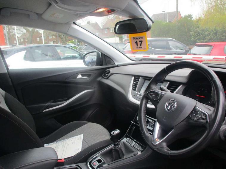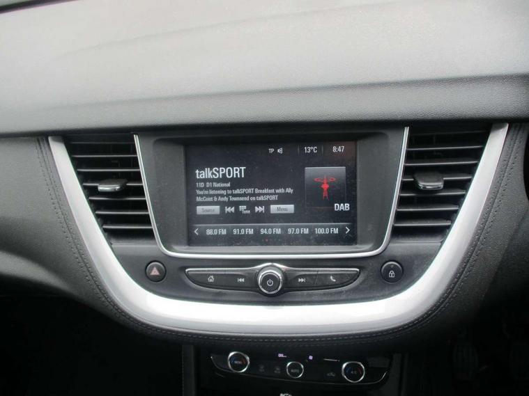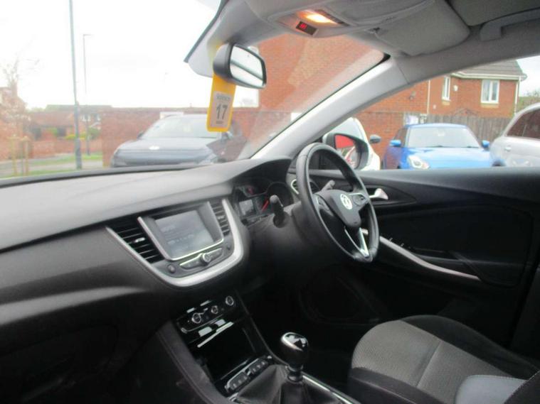 3.5" colour information display, Audible lights on warning, Central facia display with digital clock, outside air temperature and audio information, Cruise control with speed limiter and intelligent speed adaption, Digital water temperature gauge with warning light, Fuel gauge with low fuel level warning light, Gearshift up/down indication light, Lane departure warning system, Multi function trip computer, Rear parking distance sensors, Rev counter, Service interval indicator, Speed sensitive electric power assisted steering, Speed sign recognition, Speedometer, R4 IntelliLink with 7"colour touchscreen, RDS traffic programme, DAB radio, USB with IPod, bluetooth audio streaming, Apple carplay/Android auto, Six speaker - four front + two rear, Steering wheel mounted audio controls, Body colour door handles, Body colour door mirrors, Chrome effect bar on front grille, Collapsible windscreen wipers, Door to door illumination, Electrically operated front and rear windows with safety auto reverse and one touch up/down facility with heated rear window, Front fog lights, Halogen headlights with manual beam levelling and high beam assist, Hazard warning lights, High level centre rear brake light, Intermittent rear window wash/wipe, LED daytime running lights, LED tail lights, Manually foldable door mirrors, Rear fog lights, Rear spoiler, Reversing lights, Side protection mouldings, Side window demist vents, Sound absorbing windscreen, Tinted windows, Twin electrically adjustable and heated door mirrors, Two speed windscreen wipers with variable intermittent wipe, Welcome lighting, Windscreen demist vents, 12V electrical accessory socket in front, 12V electrical accessory socket in luggage compartment, 3 spoke leather covered steering wheel with satin chrome bezel, 60/40 split folding rear seat, 8 way driver, 6 way passenger adjustable seats, Anti submarining front seats, Berson cloth upholstery, Centre rear head restraint, Chrome effect interior door handles, Covered storage compartment in centre console and in driver armrest, Driver's centre armrest, Driver/passenger sunvisors with vanity mirrors, Electronic dual zone climate control with air conditioning + advanced predictive logic control using sensor + Charcoal filter + illuminated controls, Four adjustable facia vents, Front and rear passenger assist handles, Front door pockets with 2.6 litre capacity, Fully carpeted luggage area, Heated rear windscreen with timed cut-off, Height adjustable and removable front/rear head restraints, Interior courtesy light operated by all doors, Isofix attachment on front seat, Isofix system on outer rear seats, Luggage compartment cover, Modene black fabric side bolsters, Reach + rake adjustable steering column, Rear door pockets with 1.8 litre capacity, Rear passenger compartment heating ducts, Two drinks holder in centre console, Ventilated glove box with lid, Sight and light pack - Grandland X, 3x3 point rear seatbelts, Active pedestrian safety system, Anti-lock braking system (ABS), Child proof locks on rear doors, CSC - Cornering stability control, Deactivation switch for front passenger front and side impact airbags, Deflation detection system, Deformation zones front and rear, Driver/Front Passenger airbags, Dual seatbelt pretensioners on front seats, EBD - Electronic brakeforce distribution, Electronic parking brake, Energy absorbing steering column, Engine drag torque control, Front and rear seatbelt reminder, Front seat side impact airbags, Full size curtain airbags for driver, front passenger and outer rear passenger seats, HBA (Hydraulic Brake Assist), Hill start assist, Inertia reel lap and diagonal seatbelts for all seats, Load limiters on outer rear seatbelt retractors, Outer rear seatbelt pretensioners, Reinforced passenger safety cell, Side impact protection beams, Switchable electronic stability programme, Traction control, Tyre pressure monitoring system, 2 remote folding keys, Electronically protected audio equipment, Engine deadlock and immobiliser, Locking wheel nuts, Remote control central locking, Remote security alarm system, Visible vehicle identification number, Black door panels with black Modene cloth inserts, Frosted silver facia and door panel inserts,
