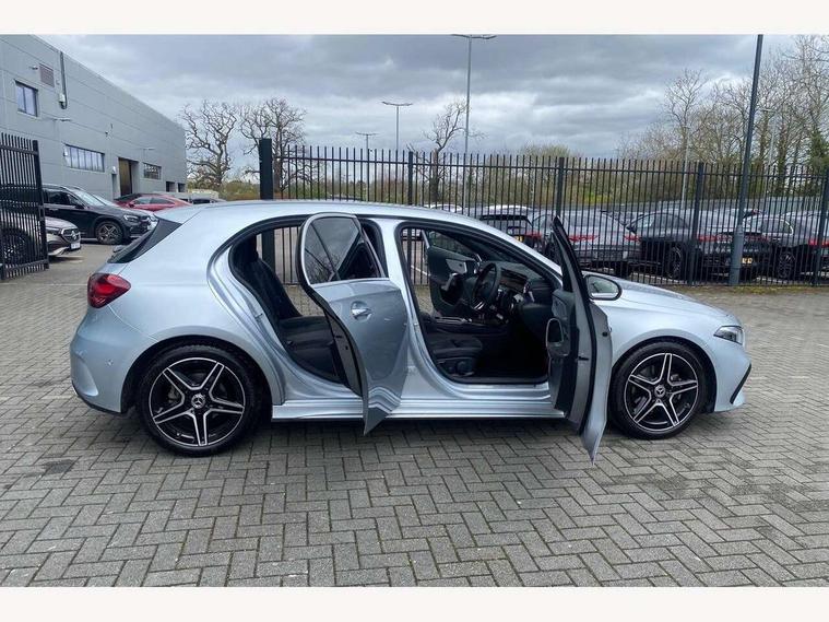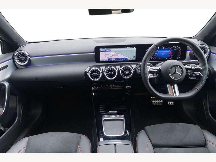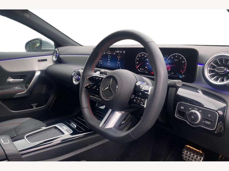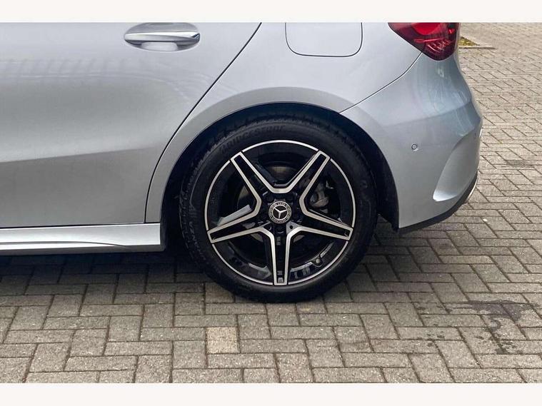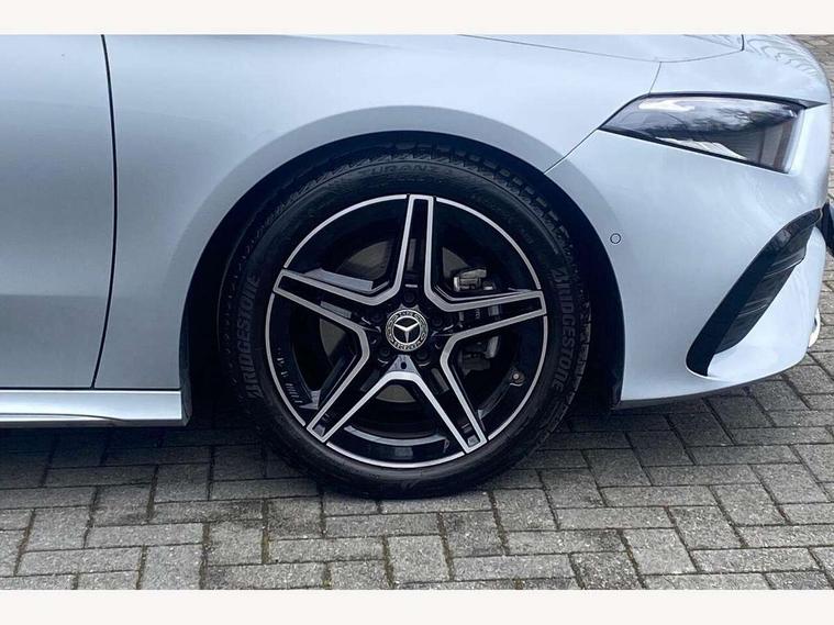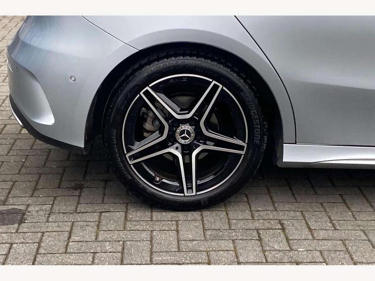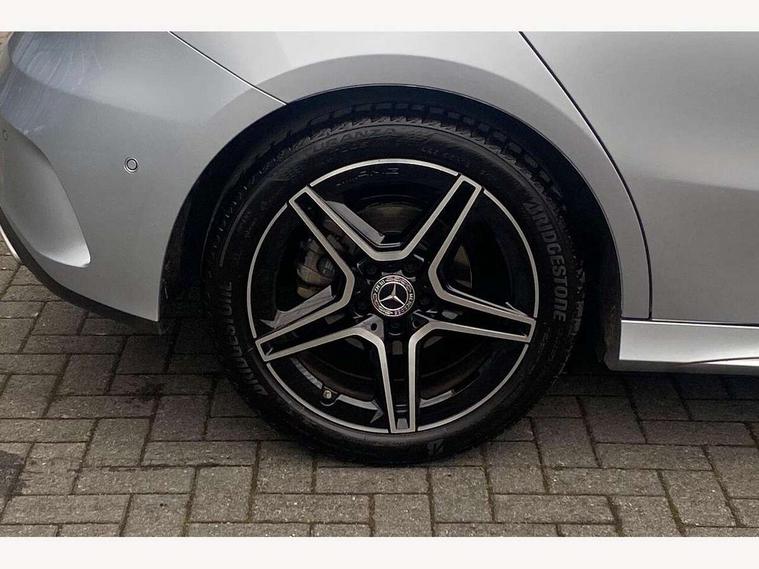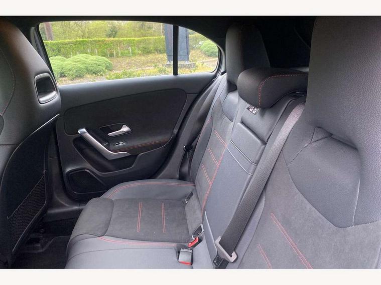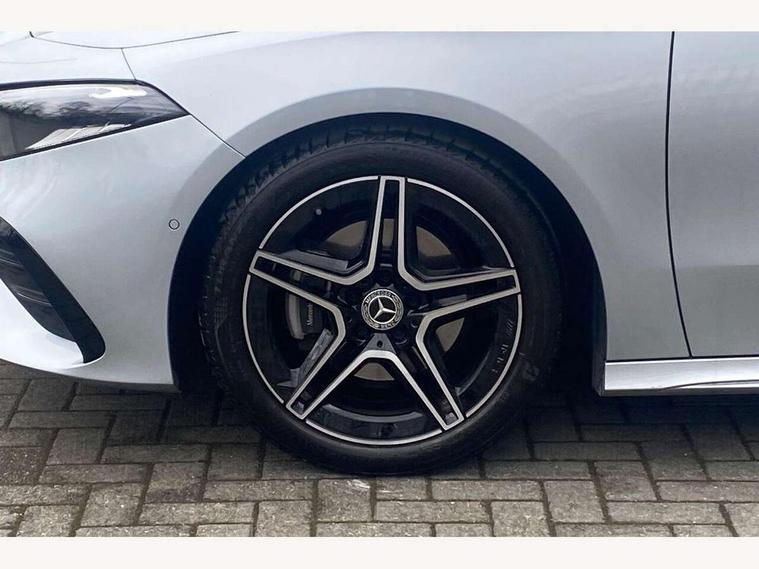 10.25 inch touchscreen central media display, 10.25" Digital instrument cluster display screen, Attention assist, Blind spot assist, Brake pad wear indicator warning light, Car wash mode, Cruise control + speed limiter, Direct steering, Direction indicators with lane change function, Dual bluetooth interfaces, DYNAMIC SELECT with a choice of driving modes (ECO, Comfort, Sport and Individual), ECO start/stop function, Engine start/stop button, Fluid level warning indicator for fuel, oil, coolant and washer fluid, Fluorescent jacket for driver, Hard-disk navigation, Hey Mercedes Voice activation, Lamp failure indicator, Lane keeping system, Mercedes me connect including emergency call system, accident recovery, breakdown and maintenance management, Mercedes me remote services, Outside temperature gauge, Owners manual in English, Pre-installation of private car share, Remote boot closing, Service indicator (ASSYST), Smartphone integration with Apple CarPlay and Android auto, Speed limit assist, Speed sensitive power steering, Tailgate, Trip computer in multifunction display with current consumption indicator, Wireless charging, Lowered comfort suspension, DAB Digital radio, MBUX multimedia system, Mercedes Benz sound system (100 W) with 6 speakers, 4 Electric Front and Rear windows, Adaptive brake lights, AMG body styling - AMG front apron with front splitter and AMG rear apron and visible exhaust tailpipe trim elements, Body colour bumpers, Body colour door handles with chrome inserts, Body colour side skirt, Chrome beltline strips, Diamond radiator grille with pins in fine star pattern, Electric adjustable and heated door mirrors with integrated LED side indicators, Exhaust system with 2 visible tailpipe trim elements and rear apron, Headlamp assist automatic headlamp activation, Heated glass rear windscreen + timer control, LED High level third brake light, LED High Performance headlamps including integral LED daytime running lamps and adaptive highbeam assist, LED tail lamp, Privacy glass, Radio aerial, Rain sensing windscreen wipers with two sensitivity settings, Rear fog lights, Rear side wing doors, Rear windscreen wiper, Window line trim strip in chrome, 3 seat bench in 2nd row, 3 Spoke flat bottom leather multi function steering wheel with perforated leather in grip area, 4 way lumbar support, 40:20:40 split folding rear seats, Air conditioning - One zone THERMATIC automatic climate control with automatically controlled air distribution, AMG floor mats, Artico man-made leather/Microcut microfibre upholstery, Automatic child seat recognition sensor, Black air vents with surround in silver chrome, Black roof lining, Brushed stainless steel sports pedals with rubber studs, Front centre armrest with stowage, Front door sills with Mercedes Benz lettering, Front seat backs luggage nets, Galvanished gear shift paddles on steering wheel, Heated front seats, Height/reach adjustable steering column, Interior lighting - 64 colour Ambient lighting, Interior mirror with reading lamps in black and frameless, Rear armrest with 2 cupholders, Rear head restraints, Seat occupancy sensor for front passenger seat, Single front passenger seat, Sports seats with integrated headrests, Stowage compartment in centre console with retractable cover, Sunvisors with illuminated vanity mirrors, Twin front cupholders, Light and sight package - A Class, Mirror package - A Class, Parking pack with 180 degree view - A Class, Seat comfort pack - A Class, USB pack plus - A Class, 3 rear 3 point seatbelts, ABS with Brake Assist, Active bonnet, Active brake assist includes forward collision warning system with autonomous braking, Adaptive brake assist with hold function and hill start assist, Bonnet with power domes, Childproof locks manually operated for rear doors and electrically operated for rear power windows, Crash responsive emergency lighting, Driver and passenger head and side airbags, Drivers knee airbag, Dual stage driver/passenger airbags, Electronic parking brake, ESP curve dynamic assist, ESP with ASR, Front and rear seatbelt reminder, ISOFIX and top tether child seat fixing points in two outer rear seats, Tyre pressure monitoring system, Warning triangle and first aid kit, Window airbags, Alarm system/interior protection/immobiliser, Guard 360 degree vehicle protection, Keyless entry lock/unlock, Keyless Go, Remote central locking and crash sensor with emergency opening function, Black seatbelts, Light longitudinal grain aluminium trim, 18" AMG 5 twin spoke light alloy wheels, aerodynamically optimised, painted in black with high sheen finish, Summer tyres, Tirefit sealant kit,