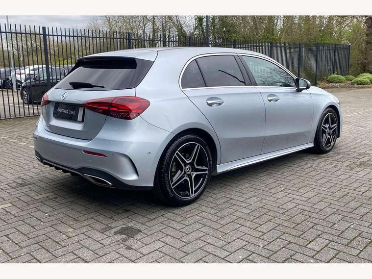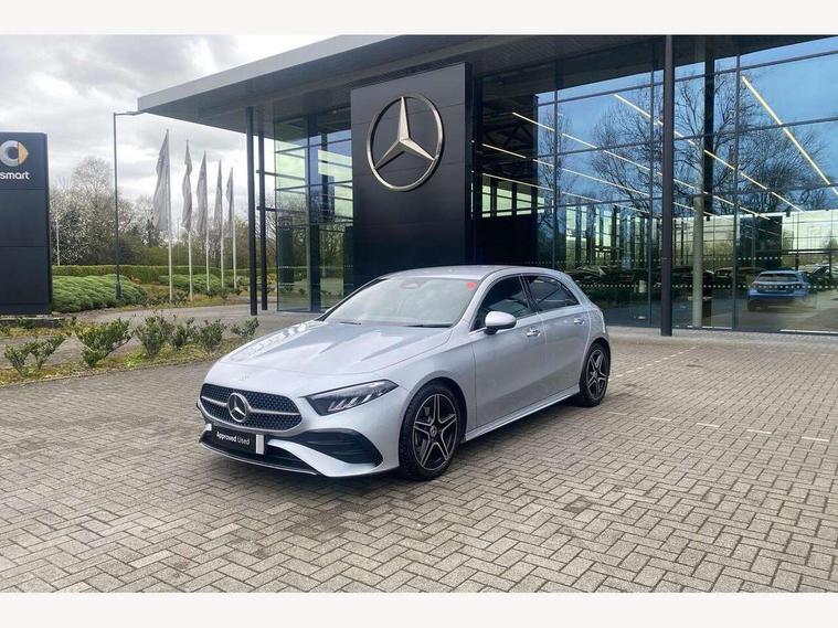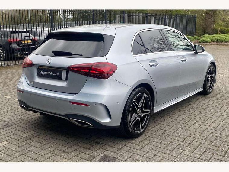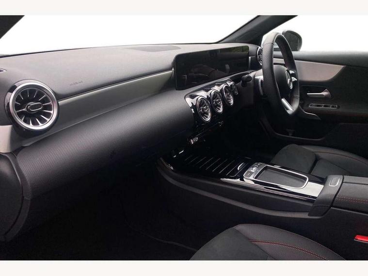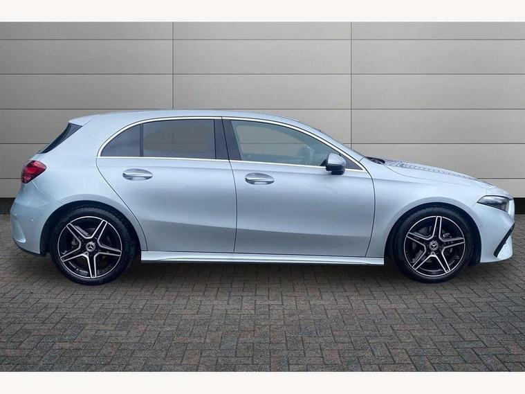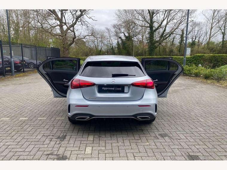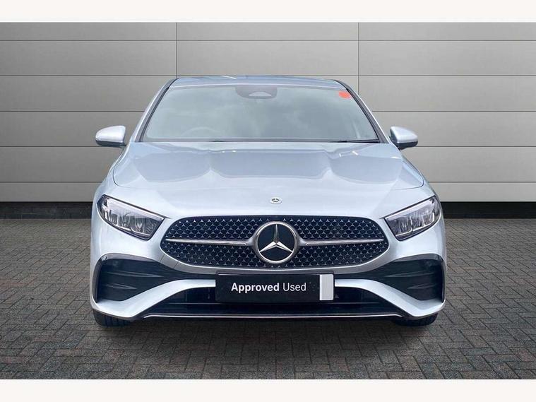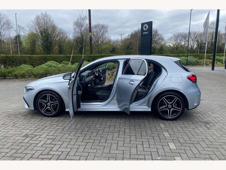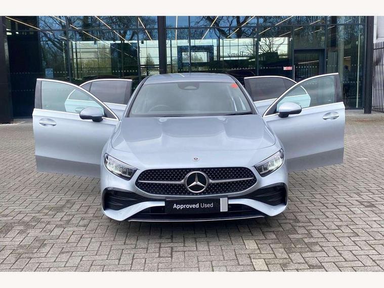 10.25 inch touchscreen central media display, 10.25" Digital instrument cluster display screen, Attention assist, Blind spot assist, Brake pad wear indicator warning light, Car wash mode, Cruise control + speed limiter, Direct steering, Direction indicators with lane change function, Dual bluetooth interfaces, DYNAMIC SELECT with a choice of driving modes (ECO, Comfort, Sport and Individual), ECO start/stop function, Engine start/stop button, Fluid level warning indicator for fuel, oil, coolant and washer fluid, Fluorescent jacket for driver, Hard-disk navigation, Hey Mercedes Voice activation, Lamp failure indicator, Lane keeping system, Mercedes me connect including emergency call system, accident recovery, breakdown and maintenance management, Mercedes me remote services, Outside temperature gauge, Owners manual in English, Pre-installation of private car share, Remote boot closing, Service indicator (ASSYST), Smartphone integration with Apple CarPlay and Android auto, Speed limit assist, Speed sensitive power steering, Tailgate, Trip computer in multifunction display with current consumption indicator, Wireless charging, Lowered comfort suspension, DAB Digital radio, MBUX multimedia system, Mercedes Benz sound system (100 W) with 6 speakers, 4 Electric Front and Rear windows, Adaptive brake lights, AMG body styling - AMG front apron with front splitter and AMG rear apron and visible exhaust tailpipe trim elements, Body colour bumpers, Body colour door handles with chrome inserts, Body colour side skirt, Chrome beltline strips, Diamond radiator grille with pins in fine star pattern, Electric adjustable and heated door mirrors with integrated LED side indicators, Exhaust system with 2 visible tailpipe trim elements and rear apron, Headlamp assist automatic headlamp activation, Heated glass rear windscreen + timer control, LED High level third brake light, LED High Performance headlamps including integral LED daytime running lamps and adaptive highbeam assist, LED tail lamp, Privacy glass, Radio aerial, Rain sensing windscreen wipers with two sensitivity settings, Rear fog lights, Rear side wing doors, Rear windscreen wiper, Window line trim strip in chrome, 3 seat bench in 2nd row, 3 Spoke flat bottom leather multi function steering wheel with perforated leather in grip area, 4 way lumbar support, 40:20:40 split folding rear seats, Air conditioning - One zone THERMATIC automatic climate control with automatically controlled air distribution, AMG floor mats, Artico man-made leather/Microcut microfibre upholstery, Automatic child seat recognition sensor, Black air vents with surround in silver chrome, Black roof lining, Brushed stainless steel sports pedals with rubber studs, Front centre armrest with stowage, Front door sills with Mercedes Benz lettering, Front seat backs luggage nets, Galvanished gear shift paddles on steering wheel, Heated front seats, Height/reach adjustable steering column, Interior lighting - 64 colour Ambient lighting, Interior mirror with reading lamps in black and frameless, Rear armrest with 2 cupholders, Rear head restraints, Seat occupancy sensor for front passenger seat, Single front passenger seat, Sports seats with integrated headrests, Stowage compartment in centre console with retractable cover, Sunvisors with illuminated vanity mirrors, Twin front cupholders, Light and sight package - A Class, Mirror package - A Class, Parking pack with 180 degree view - A Class, Seat comfort pack - A Class, USB pack plus - A Class, 3 rear 3 point seatbelts, ABS with Brake Assist, Active bonnet, Active brake assist includes forward collision warning system with autonomous braking, Adaptive brake assist with hold function and hill start assist, Bonnet with power domes, Childproof locks manually operated for rear doors and electrically operated for rear power windows, Crash responsive emergency lighting, Driver and passenger head and side airbags, Drivers knee airbag, Dual stage driver/passenger airbags, Electronic parking brake, ESP curve dynamic assist, ESP with ASR, Front and rear seatbelt reminder, ISOFIX and top tether child seat fixing points in two outer rear seats, Tyre pressure monitoring system, Warning triangle and first aid kit, Window airbags, Alarm system/interior protection/immobiliser, Guard 360 degree vehicle protection, Keyless entry lock/unlock, Keyless Go, Remote central locking and crash sensor with emergency opening function, Black seatbelts, Light longitudinal grain aluminium trim, 18" AMG 5 twin spoke light alloy wheels, aerodynamically optimised, painted in black with high sheen finish, Summer tyres, Tirefit sealant kit,