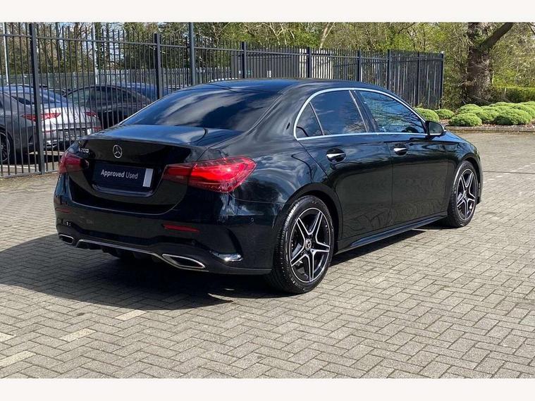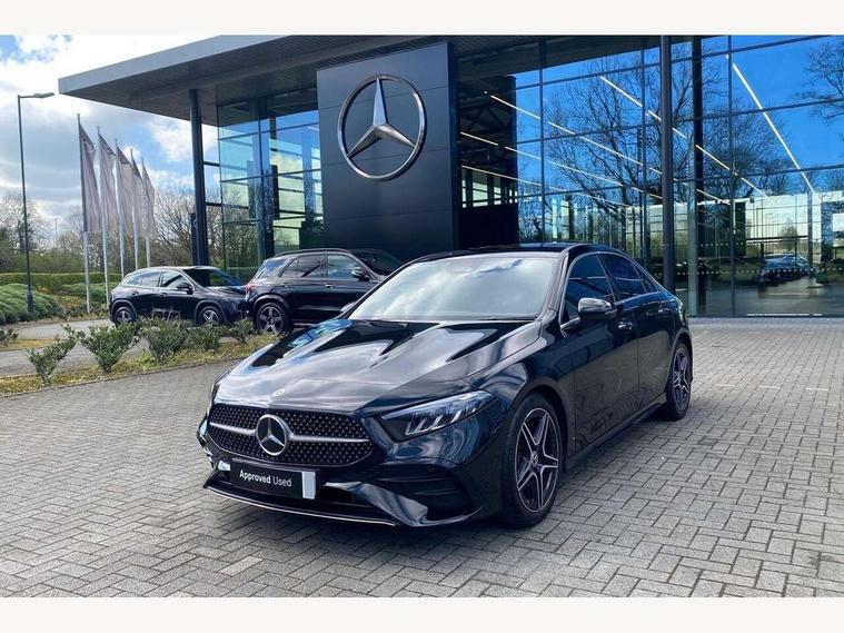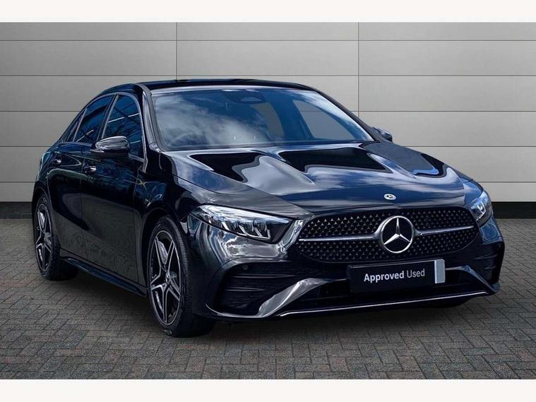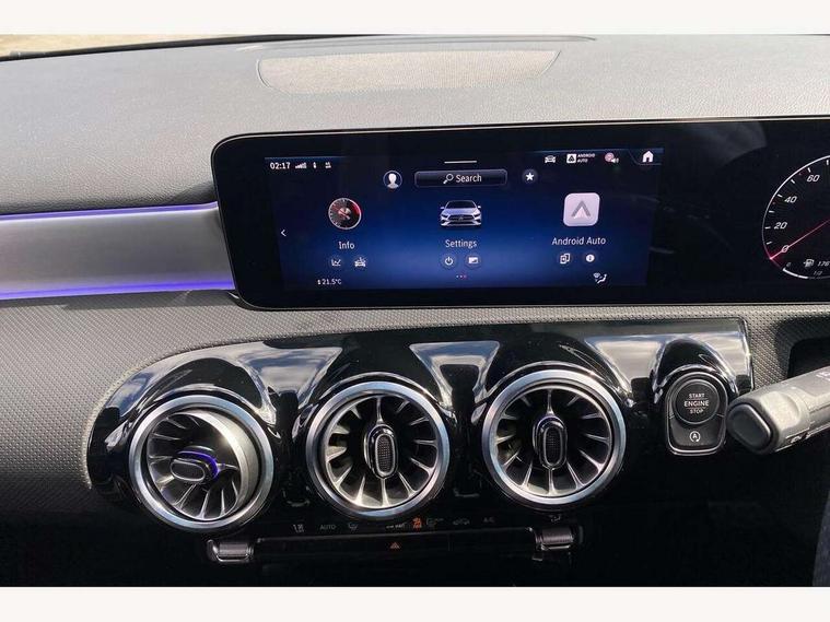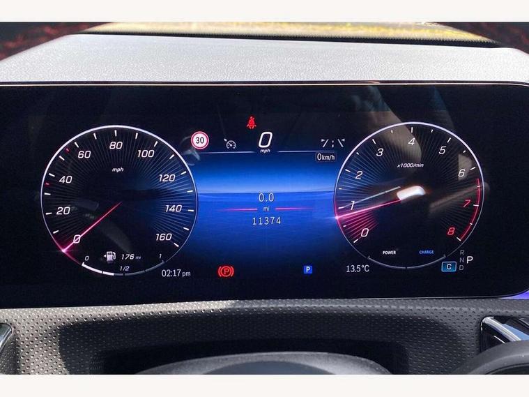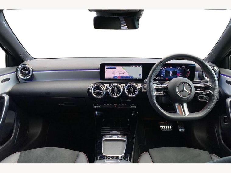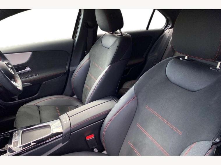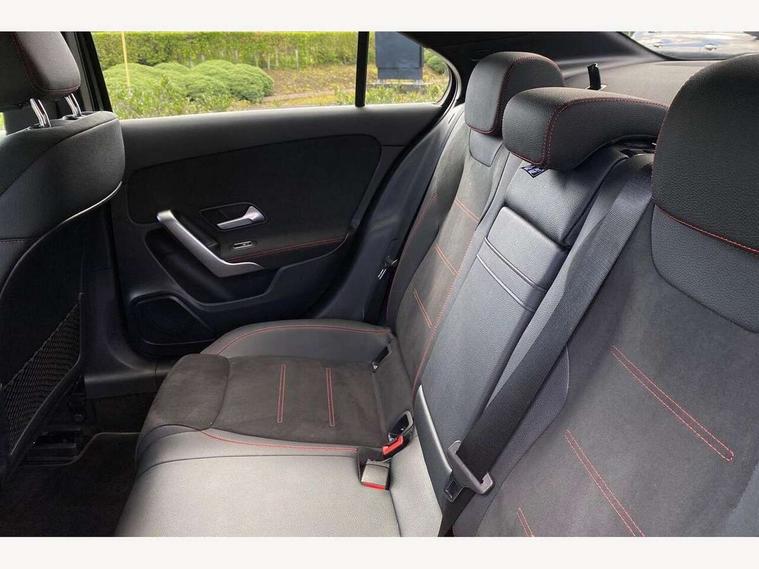 10.25 inch touchscreen central media display, 10.25" Digital instrument cluster display screen, Attention assist, Blind spot assist, Brake pad wear indicator warning light, Car wash mode, Cruise control + speed limiter, Direct steering, Direction indicators with lane change function, Dual bluetooth interfaces, DYNAMIC SELECT with a choice of driving modes (ECO, Comfort, Sport and Individual), ECO start/stop function, Engine start/stop button, Fingerprint scanner, Fluid level warning indicator for fuel, oil, coolant and washer fluid, Fluorescent jacket for driver, Hard-disk navigation, Hey Mercedes Voice activation, Lamp failure indicator, Lane keeping system, Mercedes me connect including emergency call system, accident recovery, breakdown and maintenance management, Mercedes me remote services, Outside temperature gauge, Owners manual in English, Pre-installation of private car share, Remote boot closing, Service indicator (ASSYST), Smartphone integration with Apple CarPlay and Android auto, Speed limit assist, Speed sensitive power steering, Trip computer in multifunction display with current consumption indicator, Wireless charging, Lowered comfort suspension, DAB Digital radio, MBUX multimedia system, Mercedes Benz sound system (100 W) with 6 speakers, 4 Electric Front and Rear windows, Adaptive brake lights, AMG body styling - AMG front apron with front splitter and AMG rear apron and visible exhaust tailpipe trim elements, Body colour bumpers, Body colour door handles with chrome inserts, Body colour side skirt, Chrome beltline strips, Diamond radiator grille with pins in fine star pattern, Electric adjustable and heated door mirrors with integrated LED side indicators, Exhaust system with 2 visible tailpipe trim elements and rear apron, Headlamp assist automatic headlamp activation, Heated glass rear windscreen + timer control, LED High Performance headlamps including integral LED daytime running lamps and adaptive highbeam assist, LED tail lamp, Privacy glass, Radio aerial, Rain sensing windscreen wipers with two sensitivity settings, Rear boot, Rear fog lights, Rear side wing doors, Third brake light featuring LED technology, Window line trim strip in chrome, 3 seat bench in 2nd row, 3 Spoke flat bottom leather multi function steering wheel with perforated leather in grip area, 4 way lumbar support, 40:20:40 split folding rear seats, Air conditioning - One zone THERMATIC automatic climate control with automatically controlled air distribution, AMG floor mats, Artico man-made leather/Microcut microfibre upholstery, Automatic child seat recognition sensor, Black air vents with surround in silver chrome, Black roof lining, Brushed stainless steel sports pedals with rubber studs, Front centre armrest with stowage, Front door sills with Mercedes Benz lettering, Front seat backs luggage nets, Front sports seats with adjustable head restraints, Galvanished gear shift paddles on steering wheel, Heated front seats, Height/reach adjustable steering column, Interior lighting - 64 colour Ambient lighting, Interior mirror with reading lamps in black and frameless, Rear armrest with 2 cupholders, Rear head restraints, Seat occupancy sensor for front passenger seat, Single front passenger seat, Stowage compartment in centre console with retractable cover, Sunvisors with illuminated vanity mirrors, Twin front cupholders, Keyless go comfort pack - A Class, Light and sight package - A Class, Mirror package - A Class, Parking pack with 180 degree view - A Class, Seat comfort pack - A Class, USB pack plus - A Class, 3 rear 3 point seatbelts, ABS with Brake Assist, Active bonnet, Active brake assist includes forward collision warning system with autonomous braking, Adaptive brake assist with hold function and hill start assist, Bonnet with power domes, Childproof locks manually operated for rear doors and electrically operated for rear power windows, Crash responsive emergency lighting, Driver and passenger head and side airbags, Drivers knee airbag, Dual stage driver/passenger airbags, Electronic parking brake, ESP curve dynamic assist, ESP with ASR, Front and rear seatbelt reminder, ISOFIX and top tether child seat fixing points in two outer rear seats, Tyre pressure monitoring system, Warning triangle and first aid kit, Window airbags, Alarm system/interior protection/immobiliser, Guard 360 degree vehicle protection, Remote central locking and crash sensor with emergency opening function, Black seatbelts, Light longitudinal grain aluminium trim, 18" AMG 5 twin spoke light alloy wheels, aerodynamically optimised, painted in black with high sheen finish, Summer tyres, Tirefit sealant kit,