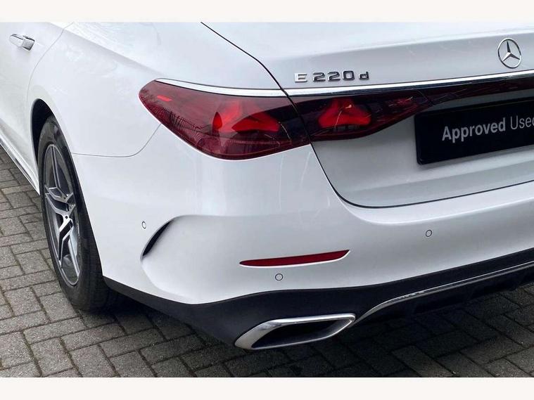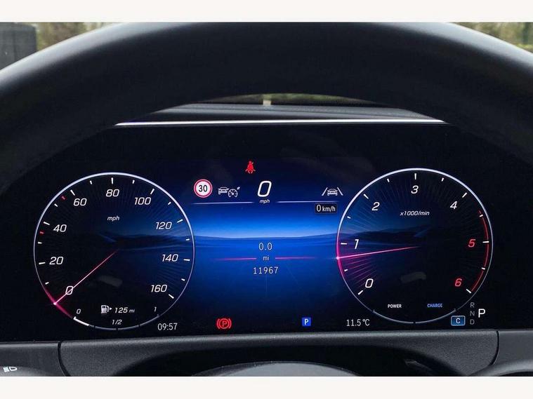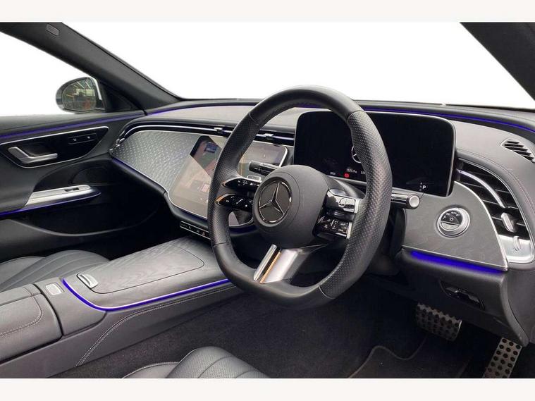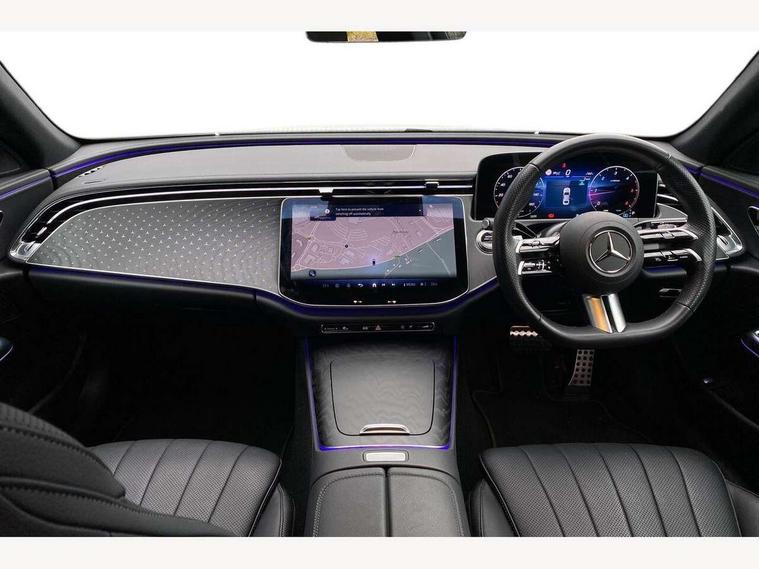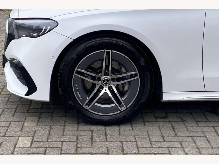 12.3" high resolution cockpit display, 14.4" high resolution central media display with latest MBUX generation, 5G Communications module, Active lane keeping assist, Attention assist, Blind spot assist, Bluetooth, Brake wear warning display, Direct steer speed sensitive steering, ECO start/stop function, Evasive manoeuvre support, Fingerprint scanner, Fluorescent jacket for driver, Hard disc navigation, MBUX augmented reality for navigation, MBUX navigation premium, MBUX voice control, Mercedes me connect including emergency call system, accident recovery, breakdown and maintenance management, Outside temperature display, Preinstallation for live traffic, Remote Services Premium, Service indicator (ASSYST), Status display for rear seat belts in instrument cluster, Traffic sign assist, Trip computer in multifunction display showing current fuel consumption, Wireless charging, Wireless smartphone integration with Apple CarPlay and Android auto, 48V Mild hybrid technology, 66 litre fuel tank, 9G TRONIC automatic transmission, Agility control suspension with selective damping system and lowered by 15mm, Bluetec emission control, Diesel particulate filter, Integrated starter generator Gen 2, Sporty engine sound system, DAB Digital radio, Preinstallation for MBUX Entertainment Plus, 3rd brake light, Adaptive brake lights, Aerial integrated in rear window, AMG Line exterior, Auto dimming driver's door mirror, Auto dimming rear view mirror, Digital air vent control, Electric folding door mirrors, Electric windows with one touch opening/closing and obstruction sensors, Electrically adjustable and heated door mirrors, Heat insulating privacy glass, Illuminated radiator grille, LED daytime running lights, LED high performance headlights with adaptive highbeam assist, Pre-installation for roof rail systems, Rear boot, Rear side wing doors, Surround lighting with logo projection, 3 seat bench in 2nd row, 4 way lumbar support, Ambient lighting, AMG brushed stainless steel sports pedals with rubber studs, AMG floor mats, AMG line interior, Automatic child seat recognition sensor, Central stowage compartment with USB socket for use with Android Auto and Apple CarPlay, Climatised front seats, Comfort seats, Courtesy lights in rear grab handles with reading light functionality, Folding rear seat backrest, Front centre armrest with stowage compartment, Gearshift paddles in galvanised silver, Glove compartment - lockable, air conditioned and illuminated, Head restraints for driver and front passenger (four-way adjustability) and in rear (two-way), Heated front seats, Instrument panel and door beltlines in artico nappa look leather, Leather upholstery, Multifunction sports steering wheel in nappa leather, Roof liner in black fabric, Seat occupancy sensor for front passenger seat, Single front passenger seat, Steering wheel touch control buttons for audio and onboard settings, Sunvisors with illuminated vanity mirrors, THERMATIC 2 zone automatic climate control, Night pack - E class, Parking package with 180 degree camera - E Class, USB plus package - E Class, 3x3 point rear seatbelts, Active bonnet pedestrian safety measure which detects an impact and raises bonnet, Adaptive brake system with HOLD function and brake drying in the wet, Anti-lock braking system (ABS), Automatic front passenger airbag deactivation, Central airbag, Childproof locks manually operated for rear doors and electrically operated for rear power windows, Driver and front passenger airbags, Electronic parking brake, Electronic Stability Programme, Hill start assist, ISOFIX child seat attachment points two outer rear seats, Knee airbags, Pedestrian protection, Pre-Safe anticipatory safety system, Tyre pressure monitoring system, Warning triangle and first aid kit, Window airbags, Alarm system/interior protection/immobiliser, Central locking with interior switch, automatic locking and crash sensor with emergency opening function, Dashcam, Guard 360 degree vehicle protection, Increased anti theft protection, Keyless Go, Urban guard vehicle protection plus, Centre console trim in open pore black ash wood, Dash trim in open pore black ash wood with backlit laser cut Mercedes-Benz star pattern, 19" AMG 5 twin spoke design alloy wheels with black painted inserts and high sheen finish, Summer tyres, TIREFIT with tyre inflation compressor,
