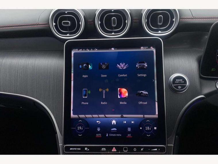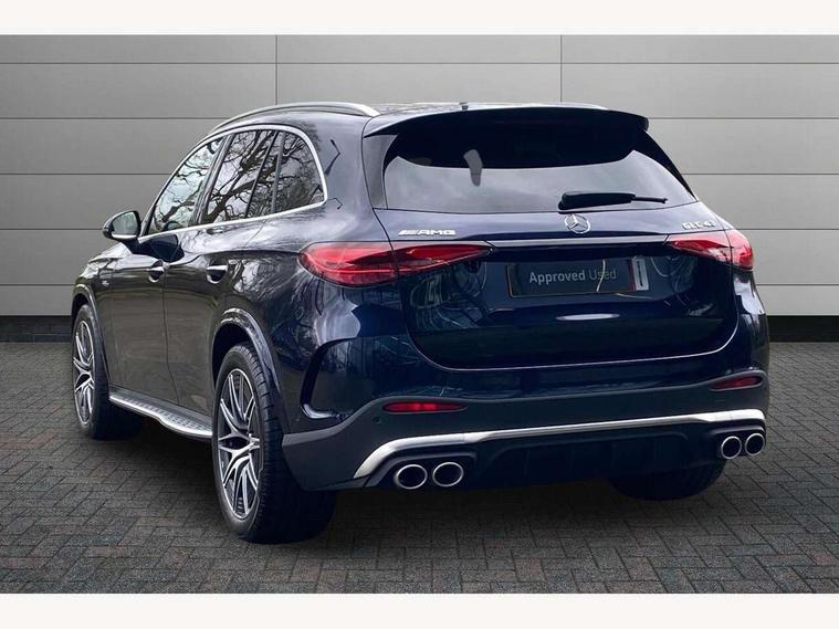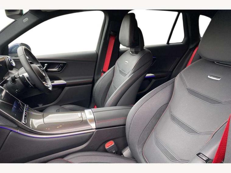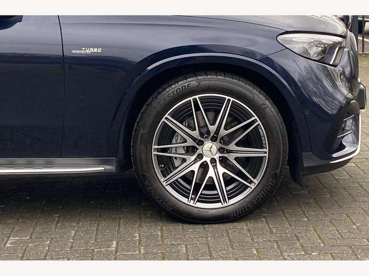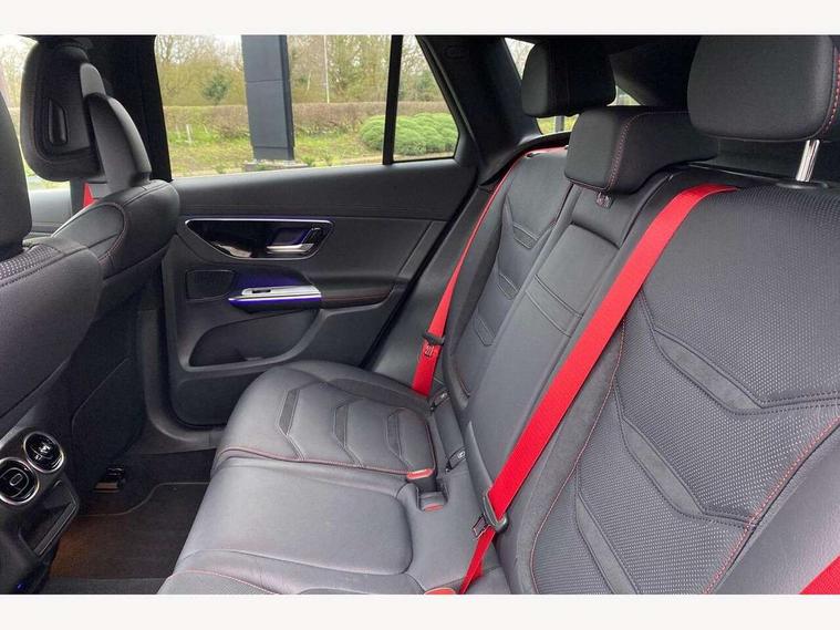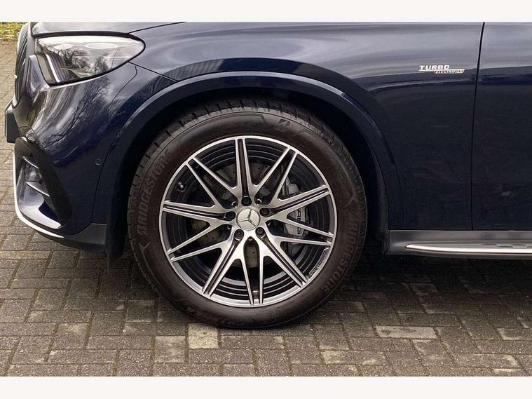 11.9" high resolution multimedia colour display, 12.3" Digital individually configurable instrument display, 360 degree view camera, Active brake assist plus, Active parking assist with parktronic system, AMG DYNAMIC SELECT with a choice of driving modes (Slippery, Comfort, Sport, Sport+, Individual), Attention assist, Blind spot assist, Bluetooth interface for hands free telephone, Dashcam - front camera for video recording, Easy pack automatic powered tailgate, eCall emergency call system, MBUX augmented reality for navigation, MBUX navigation premium, MBUX voice control activated by keywords "Hey Mercedes", Mercedes connect me with remote online services, Outside temperature display, Pre-installation for digital key transfer, Rear axle steering, Remote boot release, Service indicator (ASSYST), Smartphone integration, Speed limit assist, Sports direct steer system with speed sensitive steering, Status display for rear seat belts in instrument cluster, Traffic sign assist, Trip computer, Wireless charging surface integrated into quick stowage tray in front of centre console, 4MATIC permanent four wheel drive, 63 litre fuel tank, 9G TRONIC plus automatic transmission, Agility control comfort suspension, Petrol Particulate Filter (PPF), DAB digital radio tuner, MBUX extended functions, Adaptive brake lights, AMG bodystyling front apron, rear apron and side skirts, AMG exhaust system with sporty engine sound, AMG fuel cap, AMG radiator grille with vertical struts in high gloss chrome and AMG logo, AMG spoiler lip, Auto dimming rear view mirror, Auto headlights, Body colour door mirrors, Chrome roof rails, Digital light LED headlights, Electric windows with one touch opening/closing and obstruction sensors, Electrically adjustable and heated door mirrors, Headlight washers, Heat and noise insulating acoustic glass, Heated rear window, High level LED brake light, Illuminated front door sill panels, Integrated LED daytime running lights, LED indicator lights, LED rear fog lights, LED tail lamp, Mercedes AMG exterior, Rain sensor windscreen wipers, Range adjustable headlights, Rear side wing doors, Rear wiper, Tinted glass all round green, Variable front intermittent wipers, Welcome and follow-me home light functionality, 3 seat bench in 2nd row, 3 Spoke multi function AMG steering wheel in black nappa leather, 40:20:40 split folding rear seats, Ambient lighting, AMG sports seats, AMG steering wheel buttons, Artico leather dashboard with contrast stitching, Audio and onboard settings control on multifunction steering wheel, Automatic child seat recognition sensor, Black floor mats with AMG lettering, Double cup holder in centre console, Electrically height/reach adjustable steering column, Front centre armrest with stowage compartment, Front head restraints, Gearshift paddles on steering wheel, Heated front seats, Illuminated door sill panels with AMG lettering and with exchangable cover, Illuminated glove compartment, Load compartment cover, Mercedes AMG interior, Rear head restraints, Rear top tether child seat ISOFIX attachment, Single front passenger seat, Sports pedals with stainless steel surfaces and rubber studs, Sun visors with illuminated vanity mirrors, THERMATIC 2 zone automatic climate control, Interior lighting pack - GLC AMG, Memory pack - GLC, Mirror pack - GLC AMG, Seat comfort package - GLC AMG, Stowage pack - GLC AMG, USB Plus Pack - GLC, 3 rear 3 point seatbelts, Active bonnet, Adaptive brake system with HOLD function and brake drying in the wet, Anti-lock braking system (ABS), Child proof door locks, Dual-stage airbags - driver and front passenger, sidebags in front seats, driver kneebag, pelvis bag and window bags for driver, Electronic key chrome surround, Electronic parking brake, Electronic Stability Programme (ESP), Front and rear seatbelt reminder, Front passenger seat occupancy sensor, Front seatbelt pretensioners, Hill start assist, Silver brake calipers, Tyre pressure monitoring system, Warning triangle and first aid kit, Central locking with interior switch, automatic locking and crash sensor with emergency opening function, Guard 360 degree vehicle protection, Immobiliser, Keyless Go comfort access, Anthracite linestructure lime wood trim, Black open-pore aluminium lines wood trim, Centre console in metal structure finish, 21" AMG Y spoke light alloy wheels painted in tantalum grey with high sheen rim finish, TIREFIT with tyre inflation compressor,