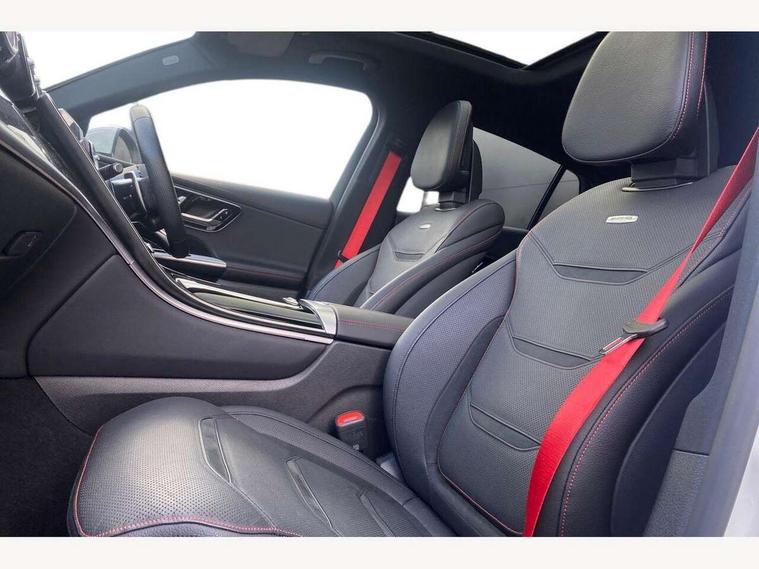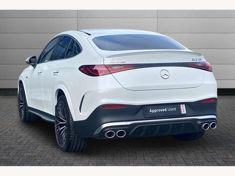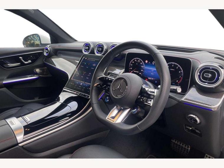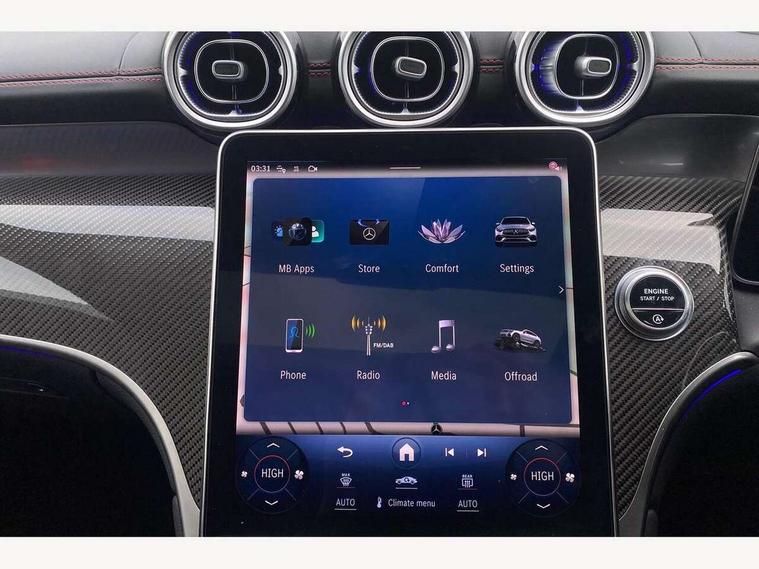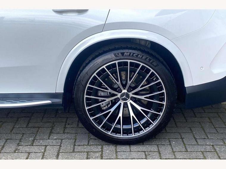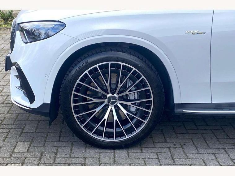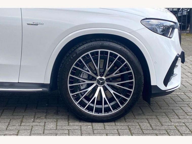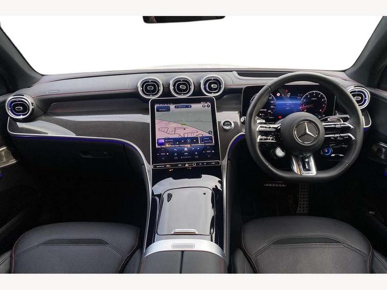 11.9" high resolution multimedia colour display, 12.3" Digital individually configurable instrument display, 360 degree view camera, Active parking assist with parktronic system, AMG DYNAMIC SELECT with a choice of driving modes (Slippery, Comfort, Sport, Sport+, Individual), Attention assist, Bluetooth interface for hands free telephone, Dashcam - front camera for video recording, Easy pack automatic powered tailgate, eCall emergency call system, Head up Display, MBUX augmented reality for navigation, MBUX navigation premium, MBUX voice control activated by keywords "Hey Mercedes", Mercedes connect me with remote online services, Outside temperature display, Pre-installation for digital key transfer, Rear axle steering, Remote boot release, Service indicator (ASSYST), Smartphone integration, Sports direct steer system with speed sensitive steering, Status display for rear seat belts in instrument cluster, Traffic sign assist, Trip computer, Wireless charging surface integrated into quick stowage tray in front of centre console, 4MATIC permanent four wheel drive, 63 litre fuel tank, 9G TRONIC plus automatic transmission, Agility control comfort suspension, Petrol Particulate Filter (PPF), Burmester 3D surround sound system, DAB digital radio tuner, MBUX extended functions, Adaptive brake lights, AMG bodystyling front apron, rear apron and side skirts, AMG exhaust system with sporty engine sound, AMG radiator grille with vertical struts in high gloss chrome and AMG logo, AMG spoiler lip, Auto dimming rear view mirror, Auto headlights, Body colour door mirrors, Chrome roof rails, Digital light LED headlights with projection function, Electric panoramic glass sunroof, Electric windows with one touch opening/closing and obstruction sensors, Electrically adjustable and heated door mirrors, Headlight washers, Heat and noise insulating acoustic glass, Heated rear window, High level LED brake light, Illuminated front door sill panels, Integrated LED daytime running lights, LED indicator lights, LED rear fog lights, LED tail lamp, Mercedes AMG exterior, Rain sensor windscreen wipers, Range adjustable headlights, Rear side wing doors, Rear wiper, Tinted glass all round green, Variable front intermittent wipers, Welcome and follow-me home light functionality, 3 seat bench in 2nd row, 3 Spoke multi function AMG steering wheel in black nappa leather, 40:20:40 split folding rear seats, Ambient lighting, AMG sports seats, AMG steering wheel buttons, Artico leather dashboard with contrast stitching, Audio and onboard settings control on multifunction steering wheel, Automatic child seat recognition sensor, Black floor mats with AMG lettering, Double cup holder in centre console, Electrically height/reach adjustable steering column, Front centre armrest with stowage compartment, Front head restraints, Gearshift paddles on steering wheel, Heated front seats, Illuminated door sill panels with AMG lettering and with exchangable cover, Illuminated glove compartment, Load compartment cover, Mercedes AMG interior, Rear head restraints, Rear top tether child seat ISOFIX attachment, Single front passenger seat, Sports pedals with stainless steel surfaces and rubber studs, Sun visors with illuminated vanity mirrors, THERMOTRONIC 4 zone automatic climate control, Interior lighting pack - GLC AMG, Memory pack - GLC, Mirror pack - GLC AMG, Seat comfort package - GLC AMG, Stowage pack - GLC AMG, USB Plus Pack - GLC, 3 rear 3 point seatbelts, Active bonnet, Adaptive brake system with HOLD function and brake drying in the wet, Anti-lock braking system (ABS), Child proof door locks, Dual-stage airbags - driver and front passenger, sidebags in front seats, driver kneebag, pelvis bag and window bags for driver, Electronic key chrome surround, Electronic parking brake, Electronic Stability Programme (ESP), Front and rear seatbelt reminder, Front passenger seat occupancy sensor, Front seatbelt pretensioners, Hill start assist, Silver brake calipers, Tyre pressure monitoring system, Warning triangle and first aid kit, Central locking with interior switch, automatic locking and crash sensor with emergency opening function, Guard 360 degree vehicle protection, Immobiliser, Keyless Go comfort access, Centre console in high gloss black, High gloss black with carbon fibre trim, 21" AMG Y spoke light alloy wheels painted in tantalum grey with high sheen rim finish, TIREFIT with tyre inflation compressor,