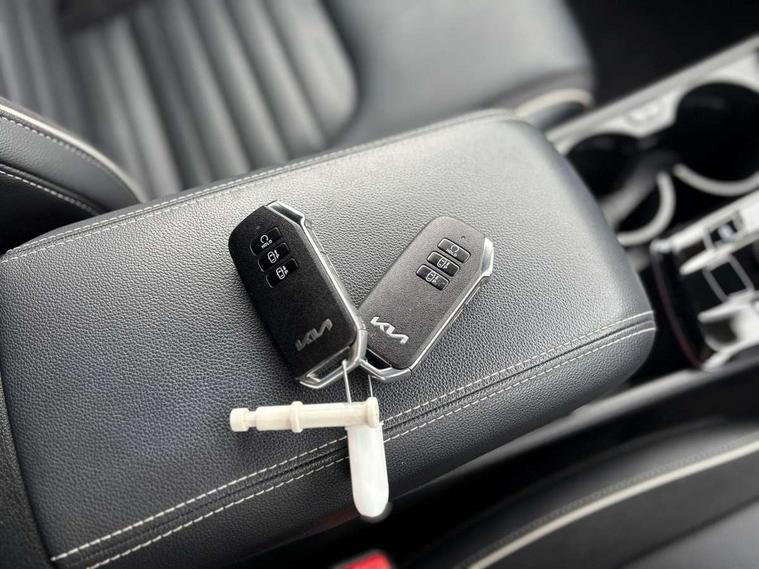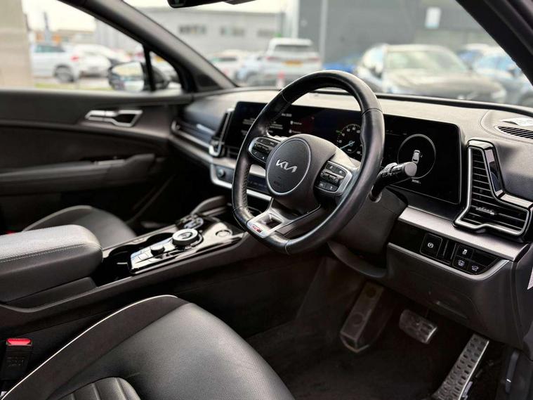 12.3" Display with navigation, 12.3" supervision colour cluster display, 360 degree around view monitor, Apple car play/Android Auto with voice control, Blind spot collision avoidance assist, Blind spot view monitor, Drive mode selector, E-call, Forward collision avoidance assist (FCA) - city/pedestrian/cyclist/junction covering, Front and rear parking sensors, Highway Driving Assist (HDA), Intelligent speed limit assist, Kia Connect (UVO), Lane Following Assist (LFA), Lane keep assist, Low washer fluid warning, Parking collision avoidance assist (PCA), Remote smart parking assist, Reversing camera system integrated into centre fascia screen, Smart cruise control with stop and go functionality, Smart power tailgate, Speed sensitive power steering, Trip computer, Windscreen washer level indicator, Wireless Smartphone charger, Intelligent Stop and Go, Terrain mode select (Mud, Snow, Sand), Bluetooth audio streaming, DAB Radio with MP3, Harman Kardon premium sound system, Rear USB port, Steering wheel mounted audio controls, USB C type charging ports on centre console, USB C type charging ports on side of front seats, USB port for connection of a media device, All round electric windows with drivers and front passenger auto up/down function, Automatic headlight control system, Automatic window defogger, Backlite glass heated with timer, Body colour and black bumper with silver accents, Body colour exterior door handles, Body colour radiator upper garnish and door garnish, Dual LED adaptive headlamps, Electric panoramic glass sunroof (Electric one touch with safety function), Electrically adjustable/heated/folding door mirrors with LED indicators, Front and rear chrome skid plates, Gloss black door mirrors, Gloss black radiator grille, Gloss black side sill and wheel arch body mouldings, Glossy black roof rack, High beam assist, Interior electrochromic mirror, LED daytime running lights, LED front fog lamps, LED High mounted stop light, LED rear combination lamp, Rain sensing wipers with aero blades, Rear fog lamp, Rear privacy glass, Rear side wing doors, Rear spoiler, Rear wiper, Satin finished beltline, Tinted rear glass, Trailer stability assist, 10 way driver/8 way passenger electrically power adjustable seats, 12V power socket in front centre fascia and luggage compartment, 3 seat bench in 2nd row, 3 x passenger assist grips, 40/20/40 split folding rear seat, All-round height adjustable headrests, Ambient lighting, Black headlining, Centre console storage box, Cupholders in rear armrest, D-Shaped sports leather steering wheel and perforated inserts with GT-Line logo, Door courtesy lamps, Drink holder at centre armrest, Driver and front passenger side sunvisors with illuminated vanity mirrors, Driver seat memory function, Drivers seat power lumbar support, Front and rear door storage, Front seat and rear pockets, Front/rear centre armrests, Gear shift indicator, Glovebox illumination, Heated front and outer rear seats, Heated steering wheel, Interior door lock/unlock function, ISOFIX Child seat top tethers and anchor fixings outer rear seats, LED interior personal lamp, LED lighting in overhead console, Luggage area LED light, Luggage area load cover, Luggage net with hooks, Metal paint interior door handles, Paddle shift controls, Rear cabin light, Rear coat hooks, Single front passenger seat, Sports pedals, Suede leather upholstery, Three zone climate control, Tilt/telescopic adjustable steering wheel, Ventilated front seats, Ventilation ducts to rear compartment, Active front headrests, All round 3-point seatbelts, Anti-lock braking system (ABS), Dual front side airbags, Dual horn, Electronic parking brake, Electronic stability control with downhill brake control, Front passenger airbag cut-off switch, Front seatbelt pretensioners + load limiters, Height adjustable front seatbelts, Hill start assist control (HAC), Impact sensing auto door unlocking, Multi collision brake assist, Rear door child safety locks, Rear seat alert system, Traction control, Twin curtain airbags, Twin front airbags, Tyre pressure monitoring system, Advanced anti-theft system including immobiliser and alarm, Door deadlocks, Engine Start/Stop Button with Smart Entry System, Locking wheel nuts, Speed sensitive auto door locking, Visible vehicle identification number, Aluminium pattern finish centre fascia and door garnish, 18" Alloy wheels, Michelin tyres, Tyre mobility kit,