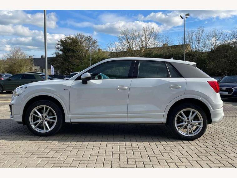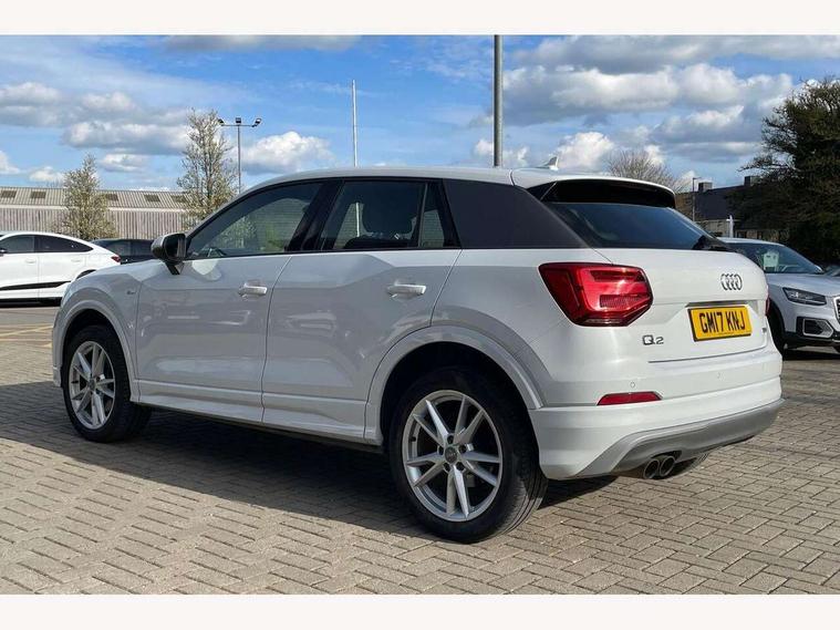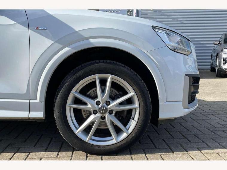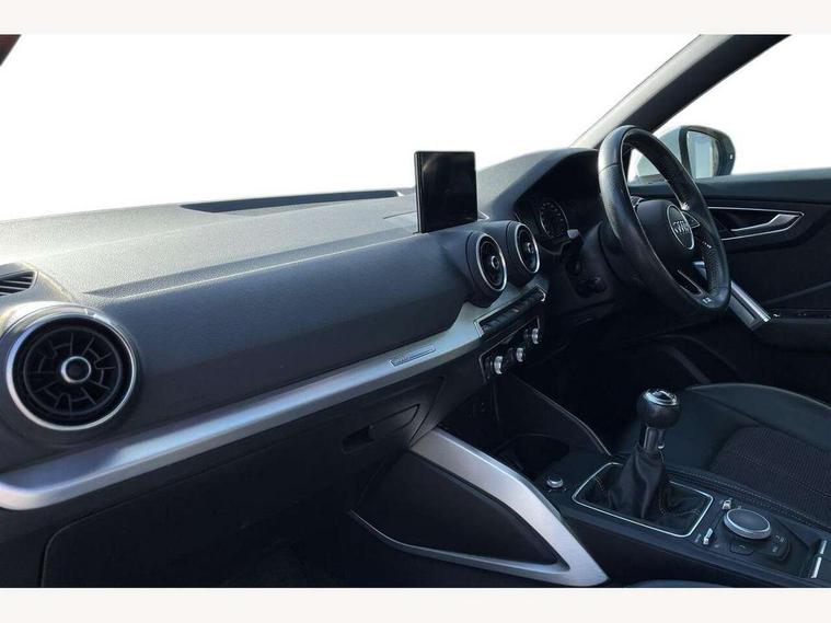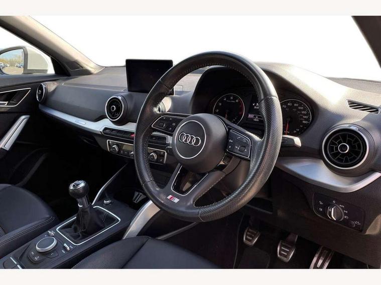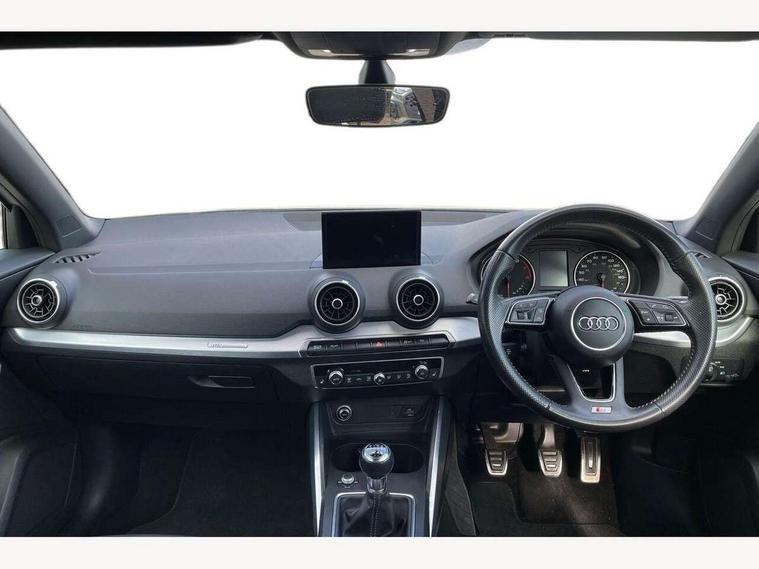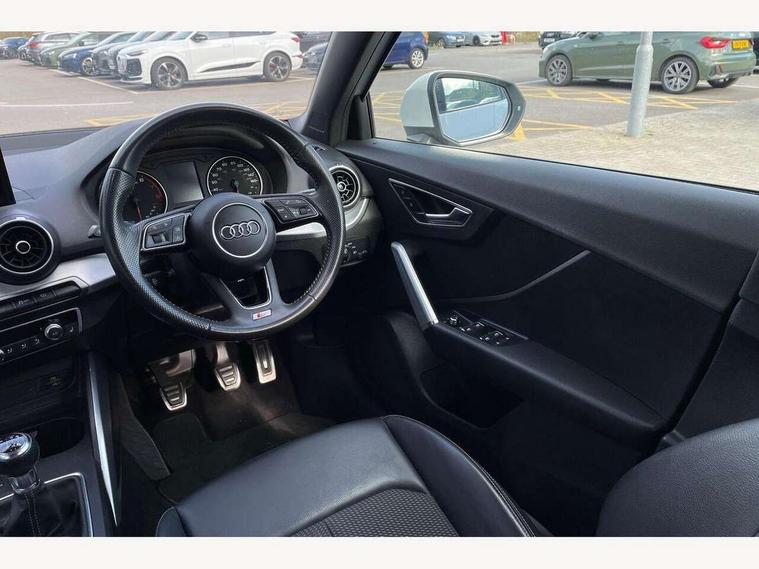 Audi drive select, Audi smartphone interface, Bluetooth hands free telephone connection, MMI - Multi Media Interface control system, MMI SD card Navigation, PAS, Service interval indicator, Voice control system, Audi music interface, Aux input, CD player, DAB digital radio module, MMI radio plus with 7" colour MMI screen and MMI controller, USB port, Body colour door mirrors, Chrome exhaust tailpipe, Door mirror integrated indicators, Electrically adjustable and heated door mirrors, Front and rear electric windows, Headlight washers, LED headlights with LED rear lights + dynamic rear indicators, Rear wiper, S Line body styling, Sunband for windscreen, Black cloth headlining, Centre console with storage/cupholders, Floor mats with contrast stitching, Front and rear door pockets, Front and rear headrests, Front centre armrest, Front sports seats, Glovebox, Height adjustable front seats, Height/reach adjust steering wheel, Illuminated door sills, ISOFIX on front passenger and rear outer seats, Stainless steel pedals, Storage compartment in rear centre console, Full body colour bumper pack - Q2, 3x3 point rear seatbelts, ABS+Electronic Brake force Distribution, Curtain airbags, Driver and passenger airbags, Driver and passenger side airbags, EDL + ASR, Electrically operated child locks on rear doors, Electromechanical parking brake, ESP, Multi-Collision braking, Pre-sense front with pedestrian recognition, Seatbelt warning light, Tyre pressure monitoring system, Warning triangle and first aid kit, Locking wheel bolts, Remote central locking, Thatcham category 1 alarm + immobiliser, Aluminium interior trim, Matt brushed aluminium fascia and door trim inlays,