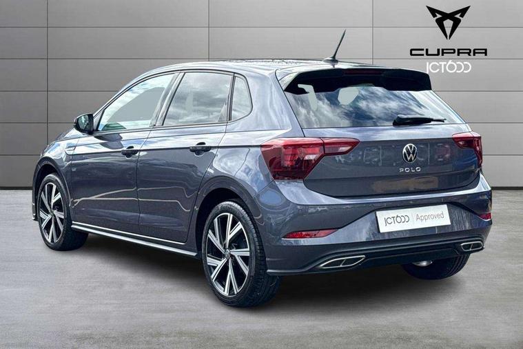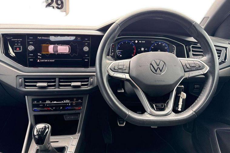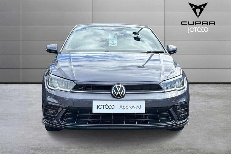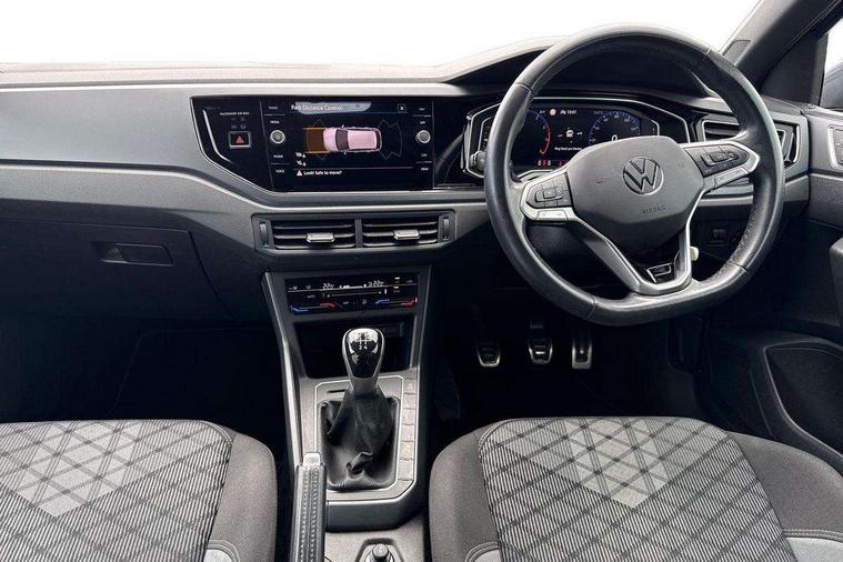 Adaptive cruise control without follow-to-stop and speed limiter, Bluetooth mobile phone interface, Digital Cockpit Pro with 10.25" Display, Driver alert system, Dynamic road sign display, Emergency call service, Power assisted speed sensitive steering, Preparation for We connect and We connect plus, Speedo and rev counter, electronic odometer, trip, service interval display and fuel gauge, Standard rear axle, Travel Assist - Lane keeping system and traffic jam assist, Travel assist including emergency assist, Trip computer, Warning signal and warning light for front and rear seatbelts not fastened, Washer fluid level indicator, Wireless app connect, Front wheel drive, Rear shock absorpion, Start-stop system with battery regeneration (recuperation - energy recovery during braking), DAB Digital radio, Diversity antenna for FM reception, Front and rear 6 speakers, Body colour bumpers, Body colour door handles, Body colour door mirrors, Electric front windows, Front fog lights with static cornering function, Front scuff plates with R-Line logo, Heat insulating darkened glass in side and rear windows, Heat insulating glass windscreen, Power folding adjustable/heated exterior mirrors and front passenger exterior mirror lowering function, Rear electric windows, Rear fog light, Rear side wing doors, Rear tinted glass from B-pillar backwards approx 65% tinted, Rear windscreen washer and wiper with interval delay, Third brake light, 12V power socket in centre console, 2 USB-C ports in the front, 2 USB-C charging sockets on the center console in the rear, 3 rear head restraints, 60/40 split folding rear seat and rear seat bench not split, Air care climatronic air conditoning system with active combination filter and 2-zone temperature control, Black roof lining, Ceramique headliner, Chrome plated radiator grille inserts, air vent surrounds and light switch surrounds, Door and side trim panel, Driver and front passenger seat height adjustment, Driver/passenger sunvisors with illuminated vanity mirrors, Front + rear carpet mats, Front centre armrest, Front footwell illumination, Front seat backrest storage pockets, Front sports comfort seats, Handbrake lever handle in leather, Isofix child seat preparation easy-fit (for two outer rear seats, and front passenger seat) compatible with I-size, Karoso artvelours cloth upholstery, Leather trimmed gear knob, LED interior light with switch off delay and dimmer, 2 reading lights front and rear, Luggage compartment cover, Luggage compartment floor, Luggage compartment lighting, Lumbar adjustment for front seats, Multifunction steering wheel, Single front passenger seat, Stainless steel pedals, Standard pedal cluster, Light and sight pack - Polo R-Line/Black Edition, 3 point height adj front seatbelts + pretensioners, 3x3 point rear seatbelts, ABS, Driver and front passenger airbag with front passenger airbag deactivation, Drivers and front passengers safety optimised head restraints, ESC (Electronic stability control) + EDL (Electronic Differntial lock) and ASR (Traction control), Extended and predictive pedestrian/ cyclist protection, Front curtain and side airbags with center airbag, Hill hold control, Manual child lock in rear doors, Single tone horn, Tyre pressure loss indicator, Alarm with interior protection, Anti-theft alarm system with interior monitoring, backup horn, and towing protection, Anti-theft wheel bolts, Electronic engine immobiliser, Chrome applications on rotary light, mirror adjustment, window regulator switches, outlet with frame in black, Dark grey anodised matt decorative inserts in dash and front door panels, Low rolling resistance tyres,