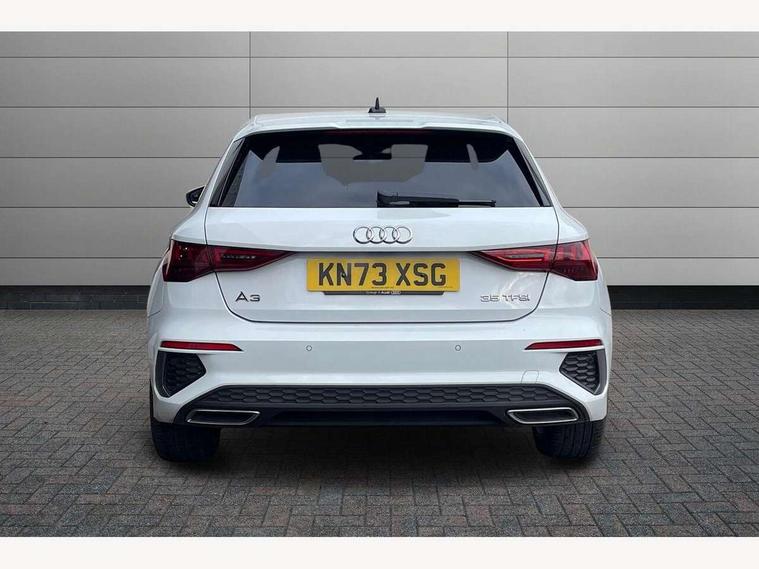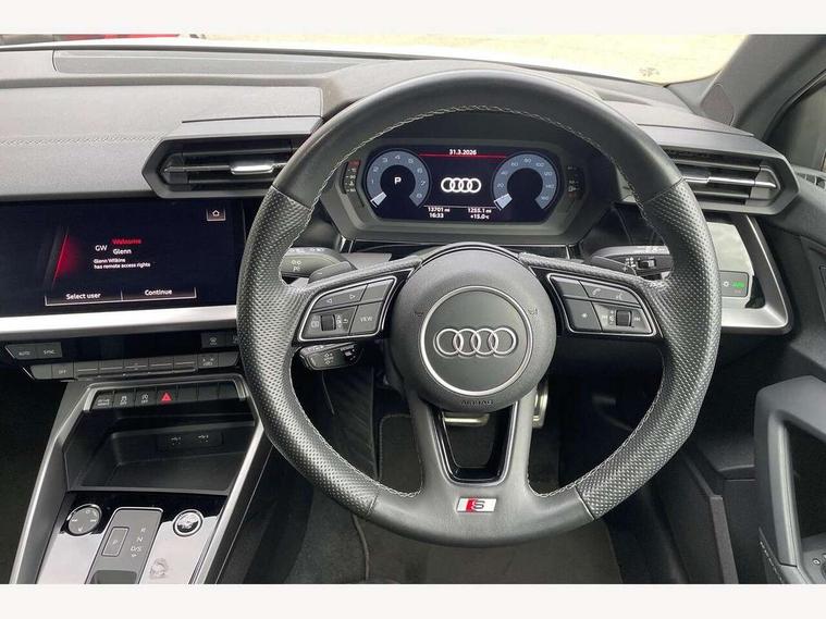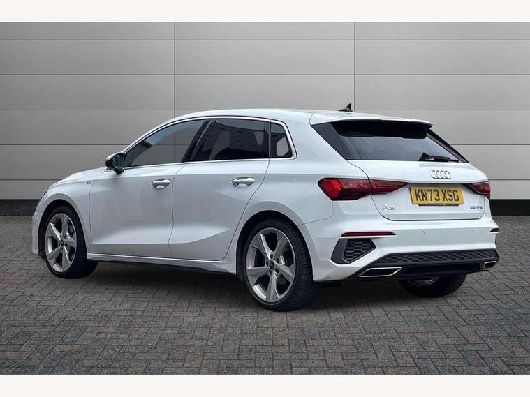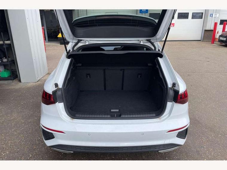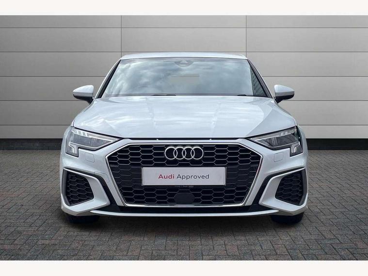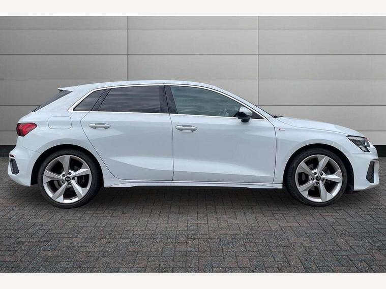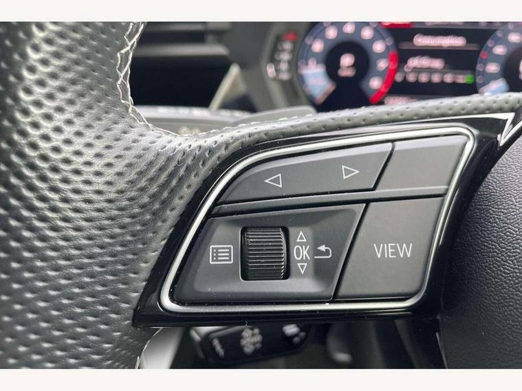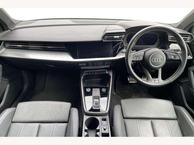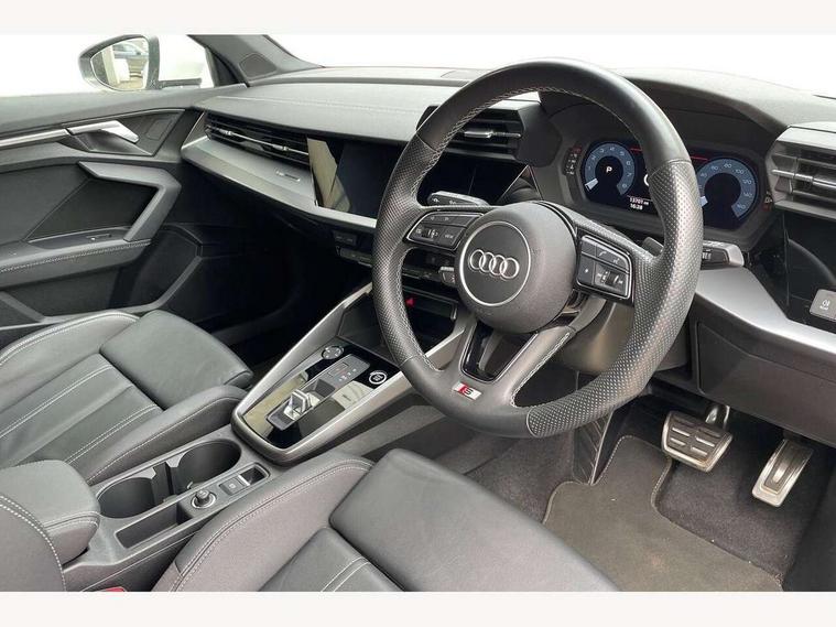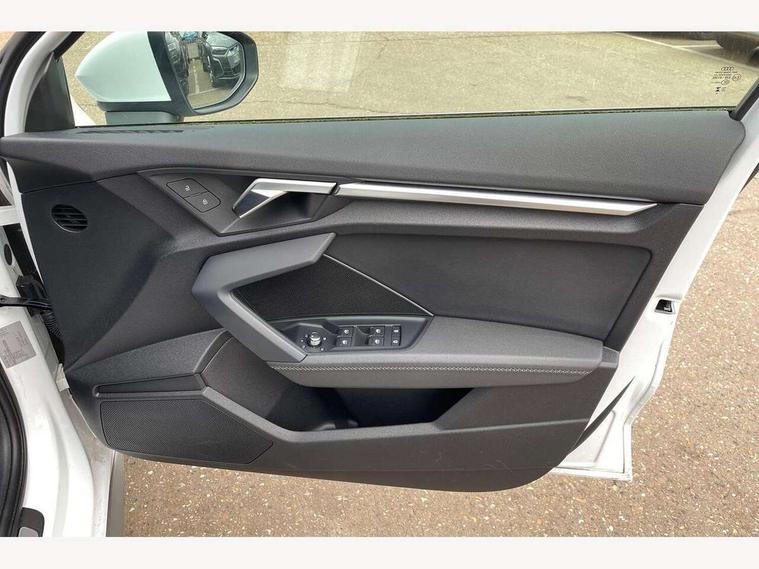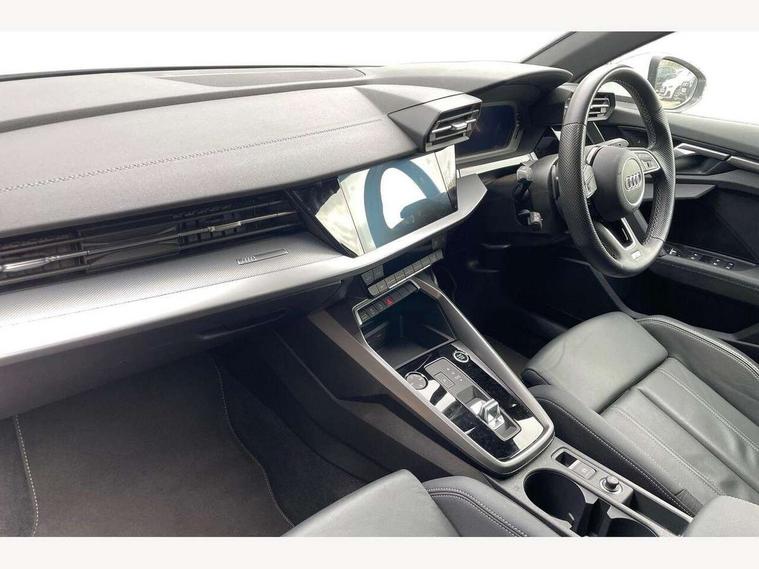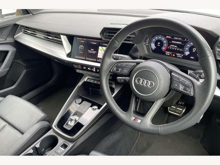 Audi drive select (Auto, Comfort, Dynamic, Efficiency and Individual), Audi smartphone interface, Audi Virtual Cockpit - 10.25" digital and colour instrument cluster, Automatic start/stop system with recuperation, Bluetooth interface, Camera based traffic sign recognition, Collision avoidance assistant, e-Call (emergency call), Electromechanical power speed sensitive steering, Lane departure warning system, MMI Navigation Plus with high resolution 10.1" colour touch screen display, Service indicator, Trip computer, Voice control system with natural language interaction, Sports suspension, 2xUSB-C connection with data and charging functions, 6 passive loudspeakers, DAB Digital radio, 3rd brake light, Acoustic glass windscreen, Aluminium window trim, Auto dimming frameless rear view mirror, Body colour exterior mirrors, Electrically adjustable/heated/folding/dimming door mirrors with kerb view includes integrated LED indications + kerb view function for passenger side, Front electric windows, Illuminated door sills with aluminium inserts at the front with S logo, LED daytime running lights, LED headlights with LED rear lights and dynamic rear indicators, Light and rain sensors, Privacy glass - dark tinted rear window, rear door and side windows, Rear electric windows, Rear side air outlets in grained matt black, Rear side wing doors, Rear wiper, S line bumpers, S roof spoiler, 12V socket and storage compartment in front centre console, 3 seat bench in 2nd row, 3 spoke leather multifunction steering wheel with paddle shift, 4 way electrically adjustable lumbar support for driver and front passenger, 60/40 split folding rear seat bench, Black cloth headlining, Dual zone electronic climate control, Front and rear centre armrest in artificial leather, Front and rear headrests, Front/rear floor mats, Height and reach adjustable steering wheel, Interior lighting - glove compartment light and right hand side, Luggage compartment floor covering, Manual boot compartment lid, Manually adjustable front seats, Seat side bolsters, Single front passenger seat, Stainless steel pedals and front footrest in black, Twin leather upholstery with front sports seats S embossed logo, Aluminium interior elements pack - A3 Sportback, LED interior lighting pack - A3 Sportback, S line styling pack - A3 Sportback, 3x3 point rear seat belts, Driver and front passenger airbag with passenger airbag deactivation, Electronic Stabilisation Control (ESC) including ABS, ASR and EDL, First aid kit with warning triangle and 2 safety vests, Front side airbags with head airbags and interaction airbag, Pre-sense front with pedestrian and cyclist detection, Seatbelt monitoring, Tyre pressure loss indicator, Anti theft alarm, Anti-theft wheel bolts, Electronically operated child locks, Immobiliser, Remote control central locking, Dark spectrum aluminium inlays, accent surfaces in the dashboard and centre console in platinum grey silk effect paint finish,