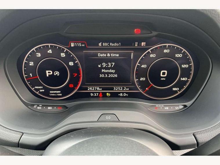 3D map display, Audi connect navigation and infotainment includes innovative services, Audi connect remote and control connects your vehicle to your smartphone, Audi drive select: S tronic - power steering assistance + engine + gearshift (modes: comfort, auto, dynamic, efficiency, individual), Audi smartphone interface - Apple carplay/Android Auto, USB connect, 2xSDXC card readers, voice control for navi, telephone, music and 3rd party apps, Audi virtual cockpit, Automatic start/stop system with recuperation, Bluetooth interface includes bluetooth audio streaming, Cruise control, Distraction and Fatigue warning, E-call, Jukebox hard drive memory for music (10GB), Lane departure warning, MMI navigation plus with 8.8" touchscreen, Natural voice recognition, Power operated tailgate, Progressive steering, Rear parking sensors, 6 passive loudspeakers, DAB Digital radio, USB type C port, Auto dimming rear view mirror, Black window trims, Body colour door mirrors, Contrast bumpers in Manhattan grey, Electrically adjustable, folding, auto dimming and heated door mirrors with integrated LED side indicators, Front windscreen with grey tinted sunband, LED daytime running lights, LED headlights with dipped beam, high beam, position lights, indicators, LED third brake light, Rear side wing doors, Rear wiper, Side skirts in manhattan grey, Variable front intermittent wipers, Wheel arch trims in manhattan grey, 12V socket in front, 3 seat bench in 2nd row, 3 spoke leather trimmed multi-function steering wheel with height and reach adjustable, 4-way electric lumbar support for front seats including manual seat height adjustment for both front seats, 60/40 split folding rear seat bench, Black carpets, Front and rear head restraints, Front centre armrest, Front sport seats, Front/rear floor mats, Grey cloth headlining, Height/reach adjust steering wheel, Index cloth upholstery, ISOFIX child seat mounting in front passenger and rear outer seats, Manual air conditioning, Single front passenger seat, 3x3 point rear seatbelts, 6 airbags - Front, curtain and front side airbags, Electromechanical parking brake, Electronic stabilisation control including ABS, ASR and EDL, Front passenger airbag deactivation, Hill hold assist, Pre-sense front with pedestrian recognition, Seatbelt monitoring, Tyre pressure warning light with visual and acoustic warning, Warning triangle and first aid kit, Anti theft alarm, Anti theft wheel bolts, Electronically operated child locks, Remote central door locking, Aluminium interior element, Black dashboard, Gloss black centre console, Inlays in silver grey diamond paint, Tool kit,