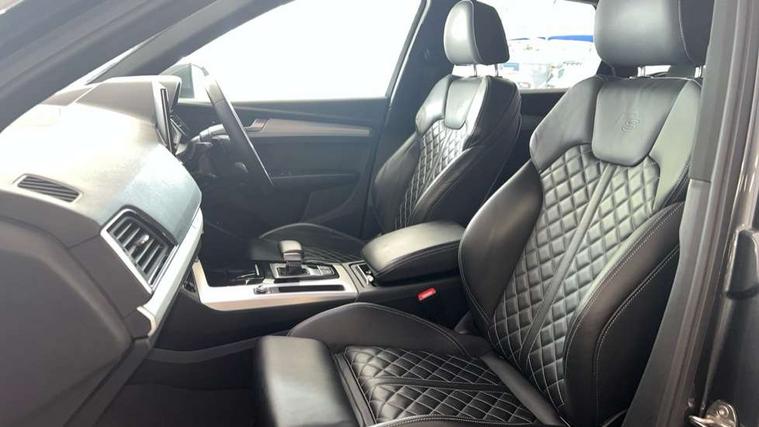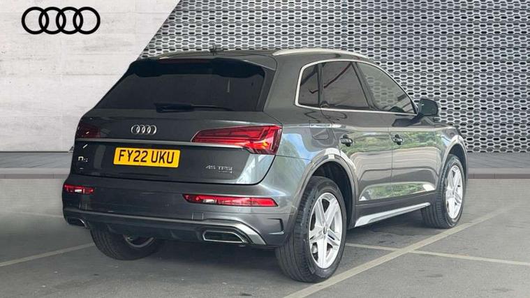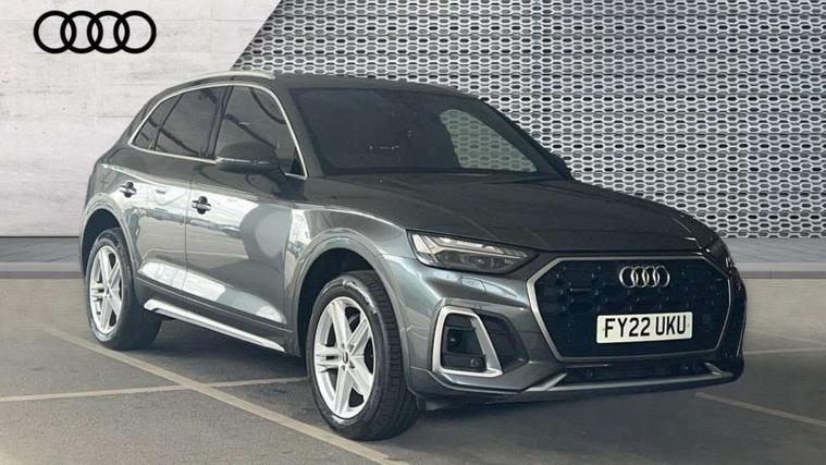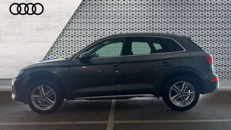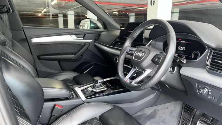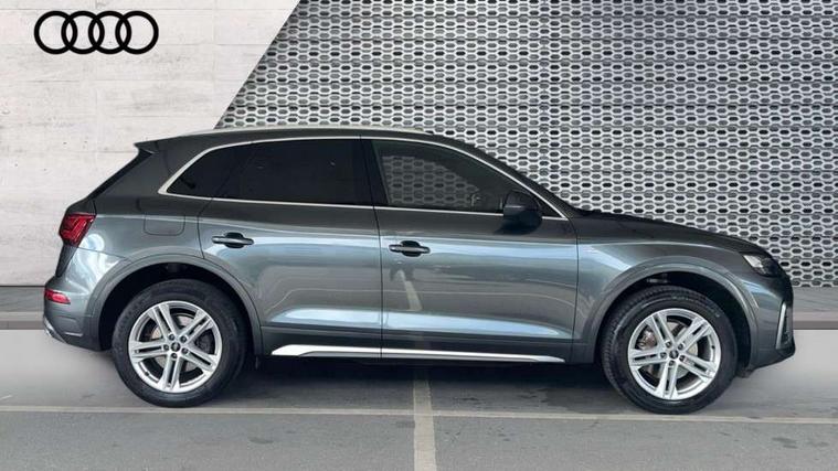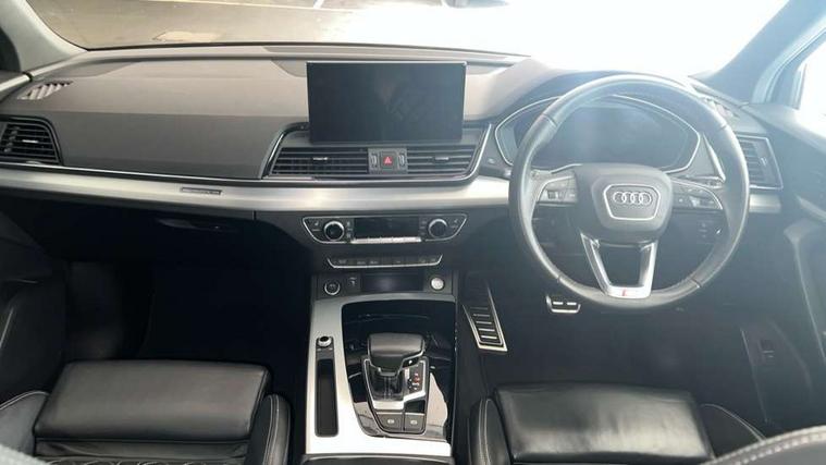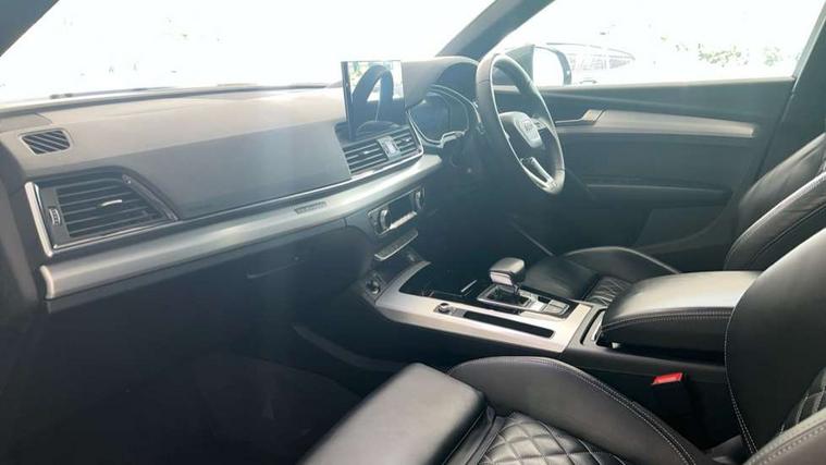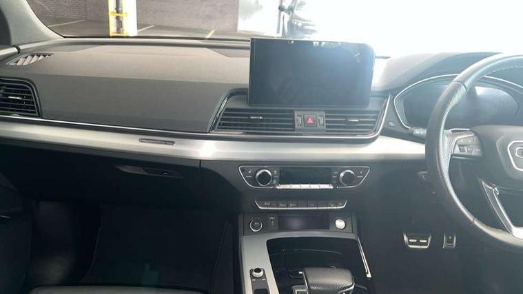 Audi connect safety and service (e-call), Audi connect with Amazon Alexa Integration, Audi drive select, Audi virtual cockpit plus with 12.3" screen and three different layout designs, Audi wireless smartphone interface, Automatic start-stop system with coasting functionality and efficiency programme, Bluetooth interface, Electro - mechanical power assisted steering, MMI navigation plus with 10.1" touch screen, Power tailgate, Reversing camera, Service interval indicator, Voice control system with Audi hotword activation "Hey Audi", Quattro on demand, S line sports suspension, 2 x USB charging port with aux input socket, DAB Digital radio, 3rd brake light, Acoustic windscreen, Aluminium roof rails, Audi matrix LED headlights with dynamic front and rear indicators, Auto dimming rear view mirror, Automatic headlights and windscreen wipers, Body colour bumpers, Body colour door mirrors, Body colour rear diffuser with matt aluminium silver surrounds, Body colour underbody protection, Chrome plated exhaust trims, Daytime running lights, Door sills in Selenite silver, Electric adjustable/heated/folding door mirrors, Front air inlet surrounds in aluminium, Front and rear electric windows, Front radiator grille in honeycomb design, Headlight washers, Lower bumpers painted in contrast Manhattan grey, Rear chrome trim strip below lights, Rear privacy glass and rear side windows, Rear side wing doors, Rear spoiler, Rear wiper, Roof bars, S Line badges on the front wings, S Line front and rear bumpers, S Line side skirts, 3 rear headrests, 40:20:40 split folding 3 rear bench seat in 2nd row with rear centre armrest, Black cloth headlining, Comfort front centre armrest, Contrast stitching on seats, steering wheel and gear lever gaiter, Deluxe 3 zone electronic climate control, Front/rear floor mats, Gear lever in black leather, Heated front seats, Height adjustable front head restraints, Height/reach adjustable steering column, Illuminated door sill trims with S logo, ISOFIX child seat mounting and top tether, Luggage compartment cover, Manual seat adjustment with 4-way electric lumbar support, Removable luggage compartment floor, Single front passenger seat, Stainless steel pedals, Sunvisors with vanity mirrors, High gloss pack - Q5, LED interior light pack - Q5, 3 point seatbelts on all seats, 6 airbags - Driver, front passenger, curtain and side airbags, Electrically operated child locks on rear doors, Electromechanical parking brake, Electronic stabilisation control including ABS, ASR and EDL, Front passenger airbag deactivation, Hill descent control, Hill hold assist, Multi collision brake assist, Pop-up bonnet for pedestrian protection, Pre sense city, Seat belt force limiter, Seatbelt monitoring, Tyre pressure warning, Warning triangle and first aid kit, Anti theft alarm, Anti-theft wheel bolts, Keyless Go access/ignition system, Matt brushed aluminium inlays,