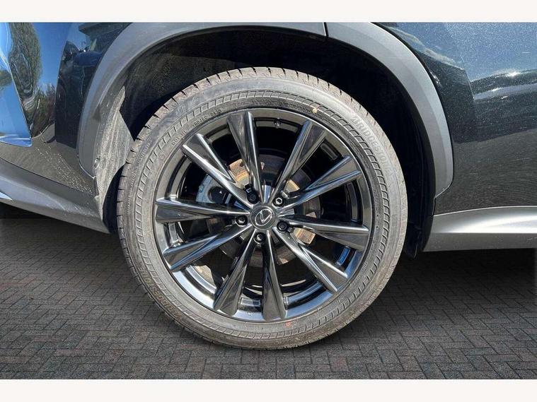 360 degree panoramic view monitor, 7" display in instrument binnacle, Blind spot monitoring with rear cross traffic alert, Bluetooth telephone connectivity, eCall emergency system, Electric speed sensitive power steering, Extended lexus safety+ system includes front cross traffic alert and lane change assist, Head up Display, Intelligent parking sensors - 4 front and 4 rear with object and pedestrain detection, Lane change flasher function, Lexus link connect - Cloud based navigation, cloud based voice assistant, always online, 14" HD touchscreen, embedded nav and faster CPU, Push button starter, Reversing camera with back guidelines, Service interval indicator, Tailgate, Tazuna cockpit with 7" improved meters display, 10" HUD and capacitive touch steering wheel switches, Wireless Apple CarPlay/Android Auto, Wireless Smartphone charger, 6.6 kW onboard charger, All Wheel Drive (AWD), Hybrid automatic transmission, Sport suspension, Vehicle Dynamics Integrated Management (VDIM), Vehicle Stability Control (VSC), 10 speakers, 4 USB ports - 2 front, one USB C, 2 rear USB C, DAB Digital radio, 4 eye LED headlight with adaptive high beam, Auto dimming interior rear view mirror, Automatic headlights, Black roof, Black roof rails, Digital rear view mirror, Double hidden exhaust pipes, F SPORT exterior styling - Black mesh front grille, enhanced side rockers, metallic front bumper, badging, black outside mirror covers, Fixed panoramic roof, Front and rear one touch power windows, with anti-jam protection, Headlight cleaners, Heated, auto-folding, auto-dimming outside mirrors with reverse tilt function and turn indicators, Illuminated door handles with puddle light, LED brake lights and rear lights with emergency brake signal, LED cornering lights, LED daytime running lights, LED front fog lights, LED Indicators, Power back door with kick sensor, Privacy glass, rear doors and tailgate, Rain sensor windscreen wipers, Rear side wing doors, Rear wiper, Roof rails, 12V accessory port centre console and luggage compartment, 2 cupholders in front centre console, 2 x fixed shopping bag hooks in boot, 2 x sun visors with vanity mirror and lamp, 3 seat bench in 2nd row, 4 x tie down hooks in the boot, 60/40 split folding rear seat, 8 way driver/passenger electrically adjustable front seats, Active sound control, Adjustable rear seat backrest, Black interior roof, Card holder installed in driver and passengers sun visors, Centre armrest with storage box, Driver and passenger 2 way electrical lumbar adjustment, Driver seat memory function, Dual zone climate control air conditioning system with humidity sensor, F Sport aluminium sports pedals, F SPORT leather gearlever, F SPORT seats - Leather upholstery, Front and rear head restraints, Front and rear textile carpet mats, Front passenger seat, Heated front seats, Heated rear seats, Heated steering wheel, LED ambient lighting, LED interior illumination, Power adjustable F SPORT leather steering wheel with paddle shifts, Rear centre armrest with 2 cupholders, Whiplash Injury Lessening (WIL) feature (active headrest) for seats, 3 point ELR front seatbelts with pretensioners, 3x3 point rear seat belts, ABS, Adjustable seat belt anchor points, Driver and front passenger 2 stage airbag, Driver/front passenger side airbags, Drivers knee airbag, E-Latch, EBD + Brake Assist, ECB (Electronically Controlled Brake System), Electronic parking brake, Front and rear curtain shield airbags, Front center airbag, Front passenger seat cushion airbag, Hill assist control, Lexus safety system - dynamic radar cruise control, pre collision system day and night, lane tracing assist, road sign, automatic high beam, OTA, Manual rear child locks, Passenger airbag cut-off device, Traction control, Tyre pressure warning, Anti-theft system with alarm, intrusion sensor, glass breakage sensor, tilt sensor and engine immobiliser, Locking wheel nuts, Smart entry ( front/rear/boot), Speed sensitive auto door locking, Ultra Wide Band (UWB) Anti-theft system, VIN Window etching, Aluminium inlays, Organic inlay, Run flat tyres,