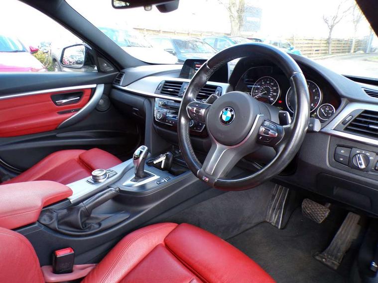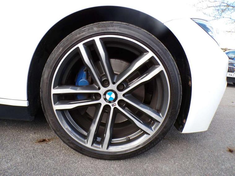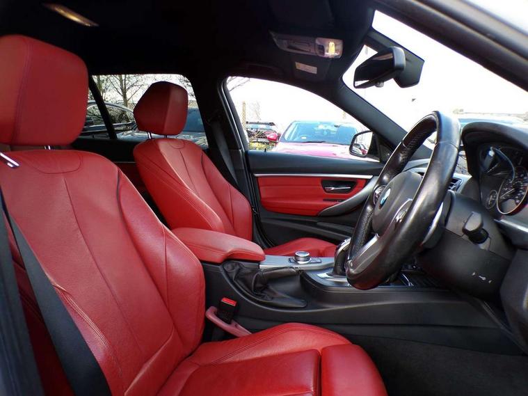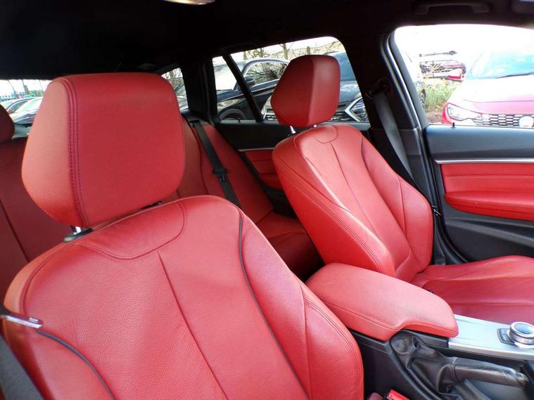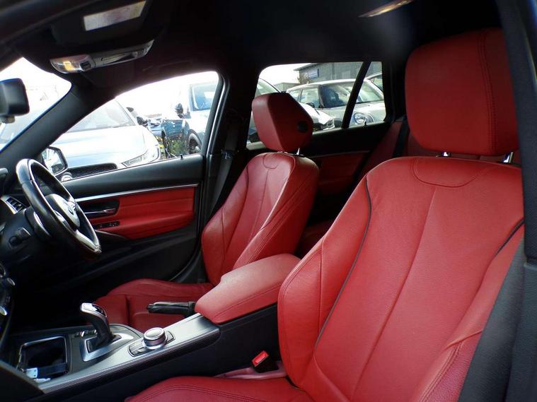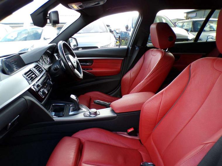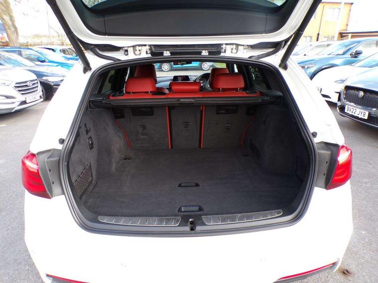Automatic start/stop system, Automatic tailgate operation, Average speed gauge, BMW Online services, BMW remote services, BMW Teleservices, Brake force display, Brake pad wear indicator in front and rear, Check Control warning system for monitoring of lights and door/luggage compartment open warning, Controller and Control Display+6.5" monitor, Digital clock, Door/boot open warning light, iDrive controller on centre console, Instrument cluster with speedometer with mph readout, tachometer, fuel gauge and oil temperature gauge, Lights on warning, M Sport instrument cluster, Odometer, Oil sensor for level and grade, On board computer, On board diagnostics, Operation warning of all exterior lights, Optimum shift indicator, Outside temperature display, Pesonal profile, Real time traffic information, Service interval indicator, Trip computer, Battery cut-out switch, Diesel particulate filter, Drive Performance Control, Electronic differential lock, Incorrect fuelling protection, Multi-link rear suspension, Sport automatic transmission with steering-wheel mounted gearshift paddles and launch control, BMW professional radio/CD/MP3, CD player, DAB Digital radio, Harman/Kardon loud speaker system, 2 speed adjustable intermittent wipers with wash/wipe function, Active air flap radiator grille, Auto dimming rear view mirror, Automatic headlight beam throw control, Body colour bumpers, Body colour door handles, Body colour roof mouldings, Clear indicator lenses, Dark chrome exhaust tailpipe, Dark headlamp surround, Darkened rear light clusters, Direction indicator, side repeaters, integrated in exterior mirrors, Door sill finisher with M designation, Dynamic brake lights, Electric front and rear windows with one touch/convenient open/close function, Front and rear bumper system with replaceable deformation elements, Green tinted heat insulating glass, Heated rear window with automatic switch off, Heated windscreen washer jets, High beam assistant, High gloss black air inlets, High gloss black finish B pillar, High gloss black rear bumper insert, High gloss shadow line, High level third brake light, Independent opening for tailgate window, LED fog lights, LED rear lights, LED welcome home lights, M aerodynamic body styling, Matt black exterior trim, Rain sensor + automatic driving lights control, Rear wash/wipe, Shark fin roof aerial, Sun protection glass, Visible VIN plate, 12V sockets in front centre console and passenger footwell, 3 rear seat head restraints, 4 foldable grab handles - rear with clothes hook, 4 lashing points on luggage floor, 40:20:40 split folding rear seat, Anthracite headlining, Automatic interior light soft on/soft off system, Dual zone automatic air conditioning, Folding front centre armrest + storage, Front and rear door armrests, Front and rear velour floor mats, Front door storage bins with bottle holder, Front sports seats with electric side bolster adjustment, Glovebox light, Glovebox opener with chrome spider, Height adjustable front headrests, Indirect front interior illumination - soft-light function, Leather gear knob, Leather gear selector lever handle, Leather handbrake lever, Luggage compartment lighting, Reach + rake adjustable steering column, Rear centre armrest with 2 cupholders, Rear child seat isofix attachment with passenger airbag deactivation, Retractable luggage cover, Separation net, Storage compartment in rear centre console, front and rear door trims and under luggage compartment, Sunvisors with illuminated vanity mirrors and ticket pocket, Through load system, Toolkit located in luggage compartment, Two front cup holders with a sliding lid, Extended lighting package - 3 Series, Extended storage pack - 3 Series Touring/Saloon, High gloss shadow line pack - 3 Series, Interior lights pack - 3 Series Touring, Luggage compartment storage pack - 3 Series Touring, 3 point seatbelts on all seats (2 front, 3 rear), front pyrotechnic belt tensioners and belt force limiters, rear coded belt buckles, ABS, Automatic Stability Control (ASC), BMW emergency call, Brake drying, Brake energy regeneration, Braking pre-tensioning, CBC - (Cornering brake control), Crash sensor, Driver and front passenger front and side airbags with passenger deactivation and ITS front and rear head airbags, DSC+, Dynamic brake control, Dynamic Traction Control - DTC, Hill start assist, M Sport braking system, Rear child proof door locks, Seatbelt security check for driver seat, Side impact protection, Twin horns, Tyre pressure monitor, Ventilated front and rear disc brakes, Warning triangle and first aid kit, Alarm system (Thatcham 1) with remote control and electronic engine immobiliser, Automatic drive away locking facility, Central locking switch for all doors, fuel filler cap and luggage compartment, Remote control including integrated key with blue insert, Start/stop button with Comfort Go keyless engine start and auto Start/stop deactivation button, Air-conditioning and radio control panel with Chrome highlight, 19" M double spoke alloy wheels style in bicolour orbit grey - style 704M, Low rolling resistance tyres, Run-flat tyres,